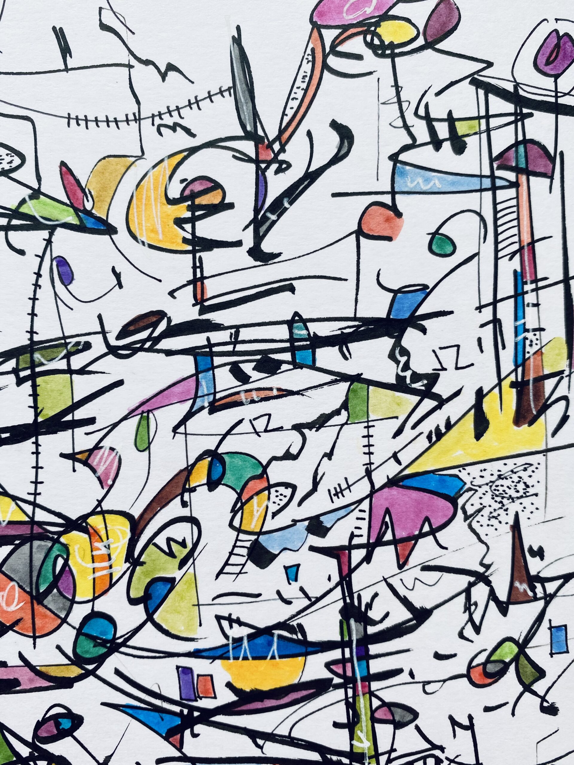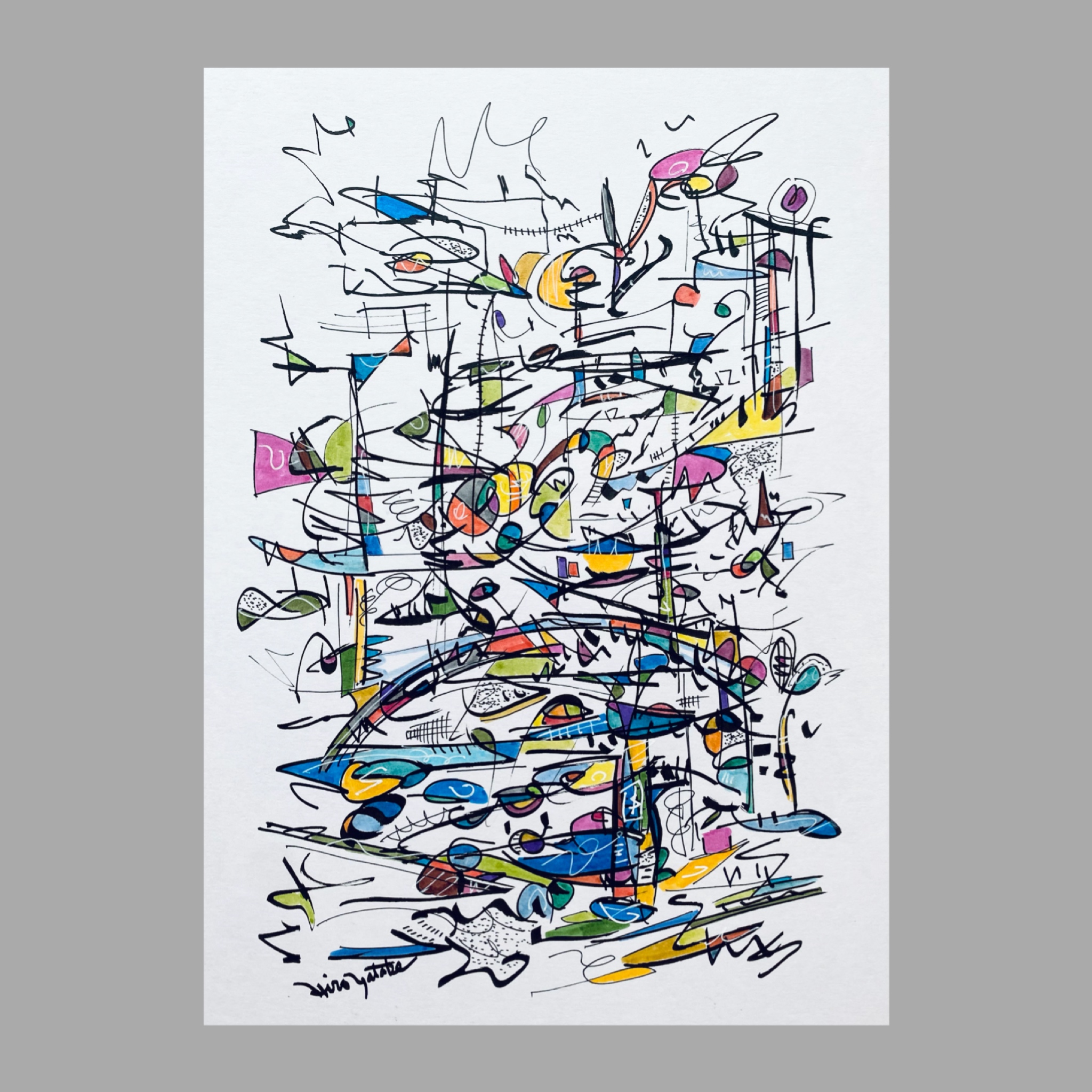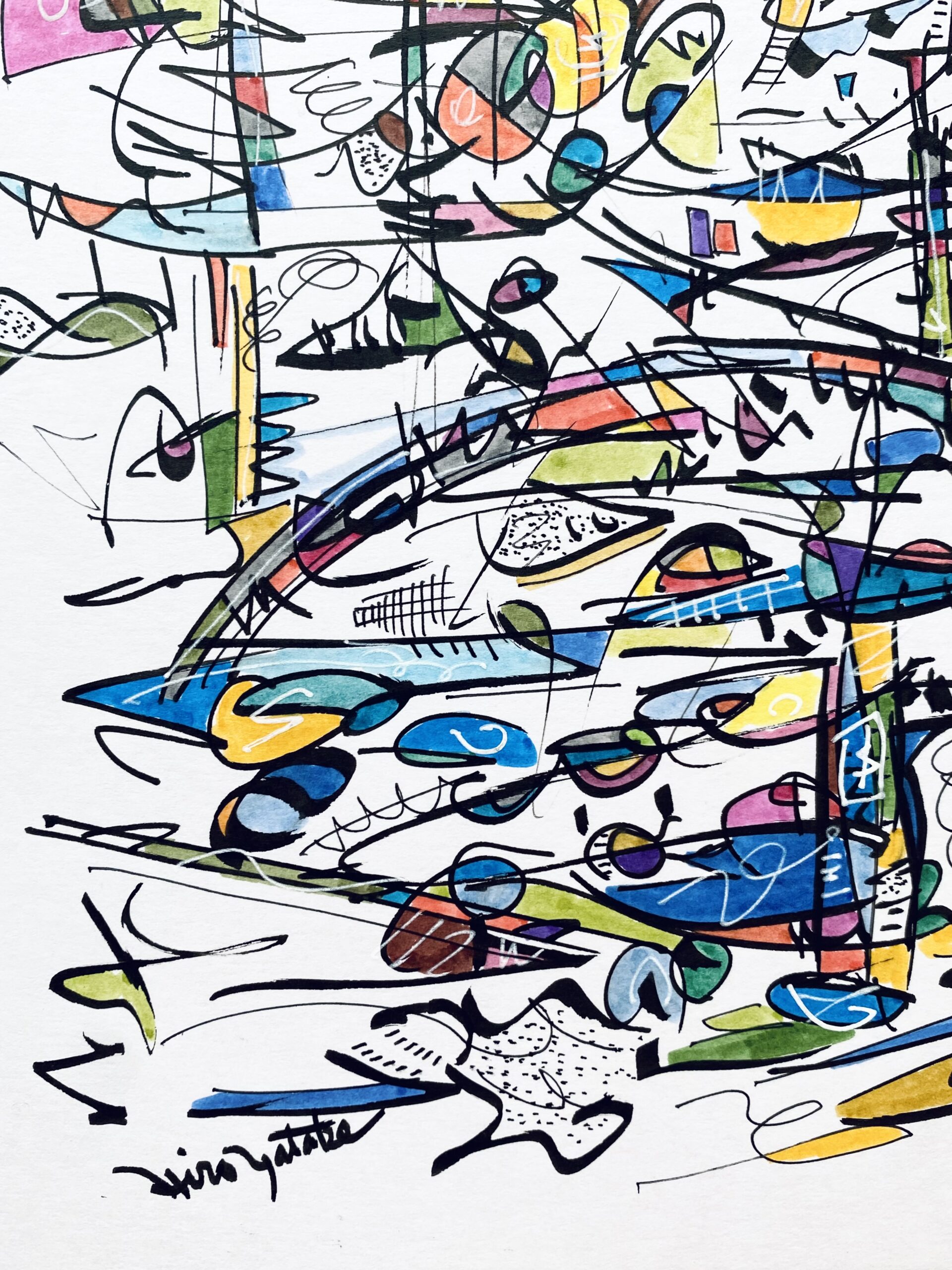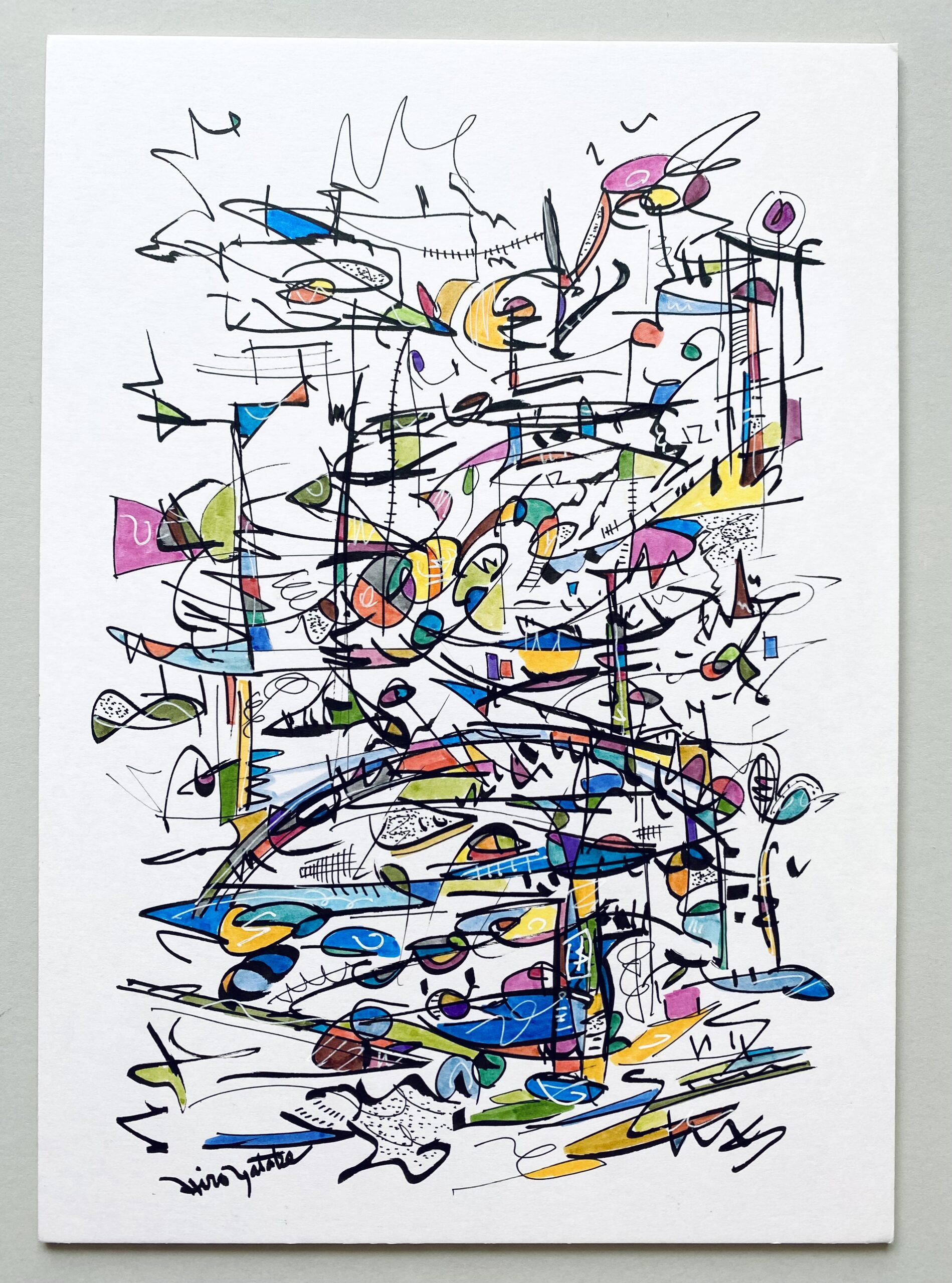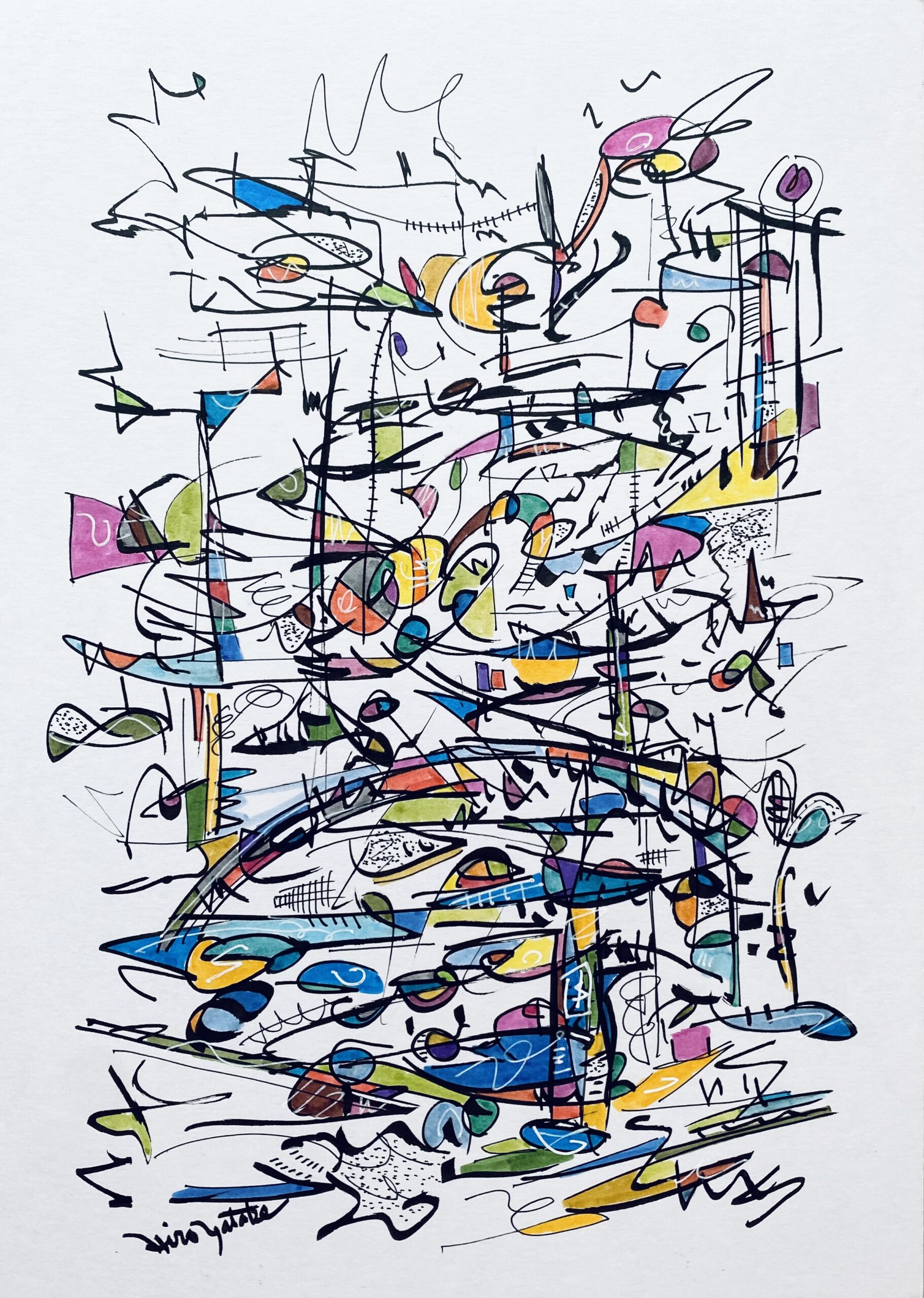 シリーズ作品を除き、タイトルは創作のはじめにあったものではなく、描き終えた時点で観る側となった私が名付けた「仮のタイトル」です。参考にするのも、答え合わせのように楽しむのも、あるいはまったく無視するのも自由です。抽象表現の色や形に意味を見出す手がかりは、あなたの記憶や経験のなかにしかありません。最終的な作品は観るかたの中で完成すべきものだと考えています。思い思いに想像の翼を羽ばたかせ、作品に新しい解釈を加えていただくことを望みます。