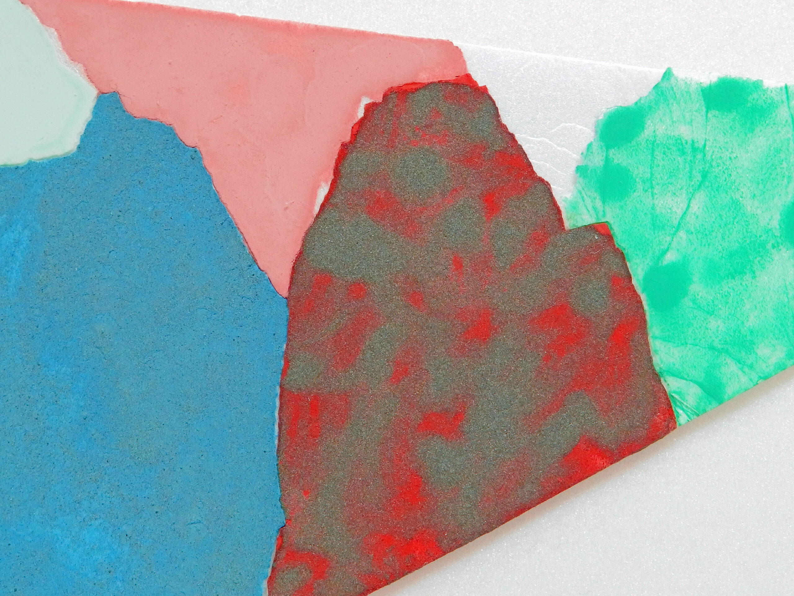 スチレンペーパーという光沢のある真っ白な素材に、岩絵の具自体の美しさが際立ちます。この組み合わせを発見し、気に入って使い続けています。