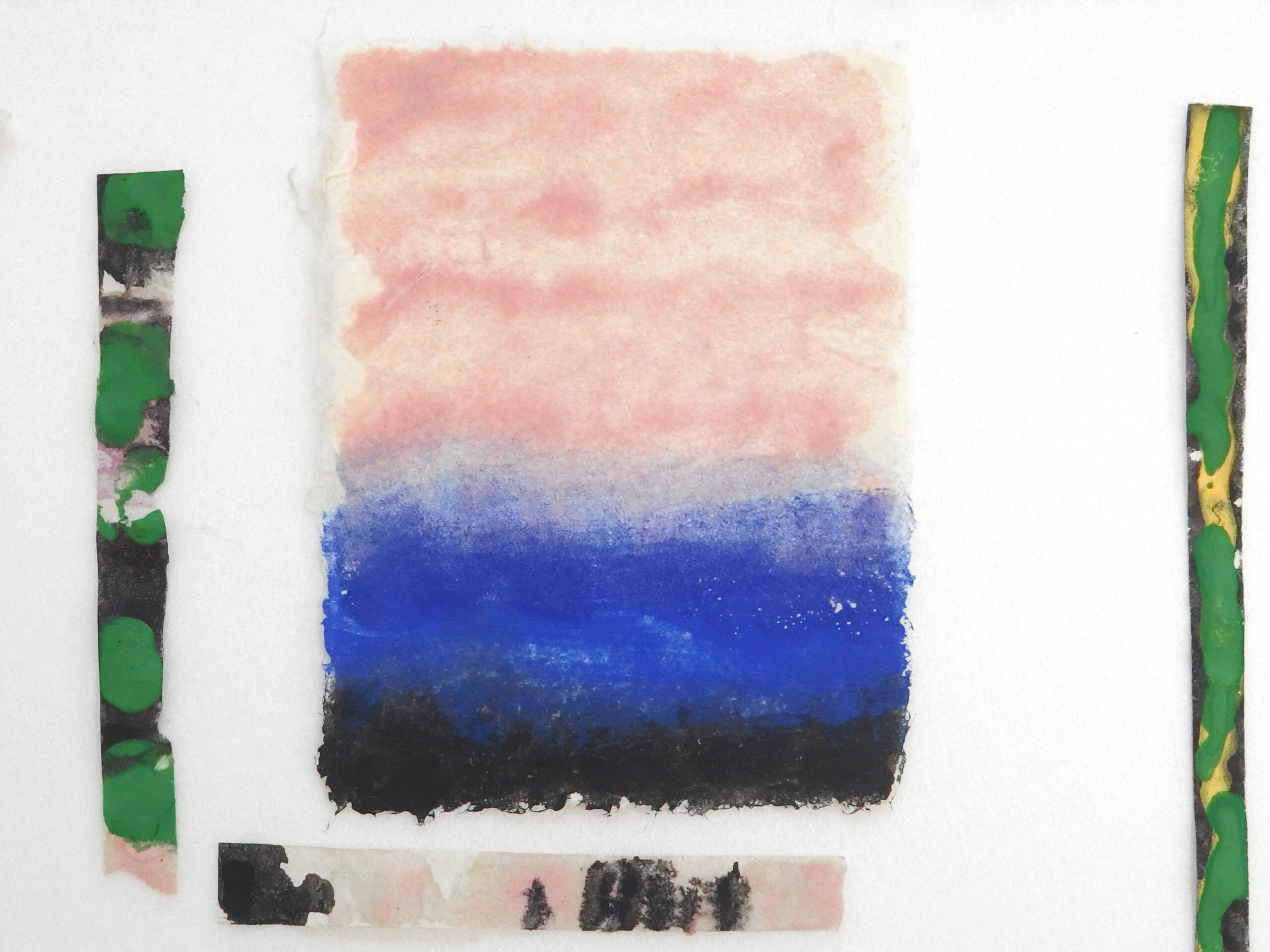 スチレンペーパーという光沢のある真っ白な素材に、岩絵の具自体の美しさが際立ちます。この組み合わせを発見し、気に入って使い続けています。