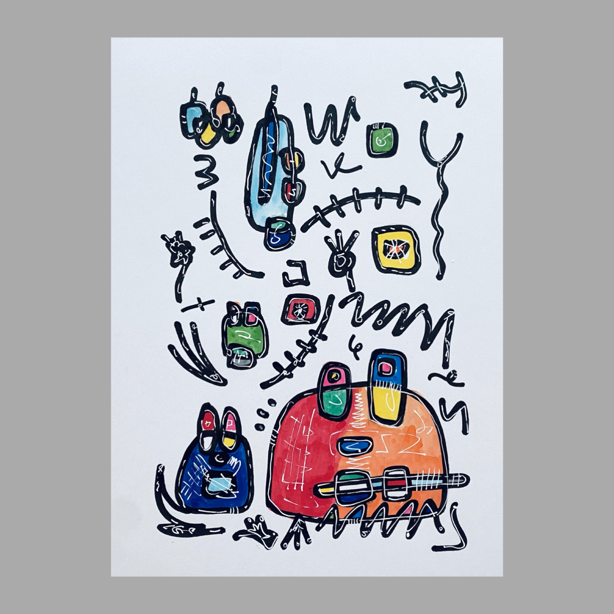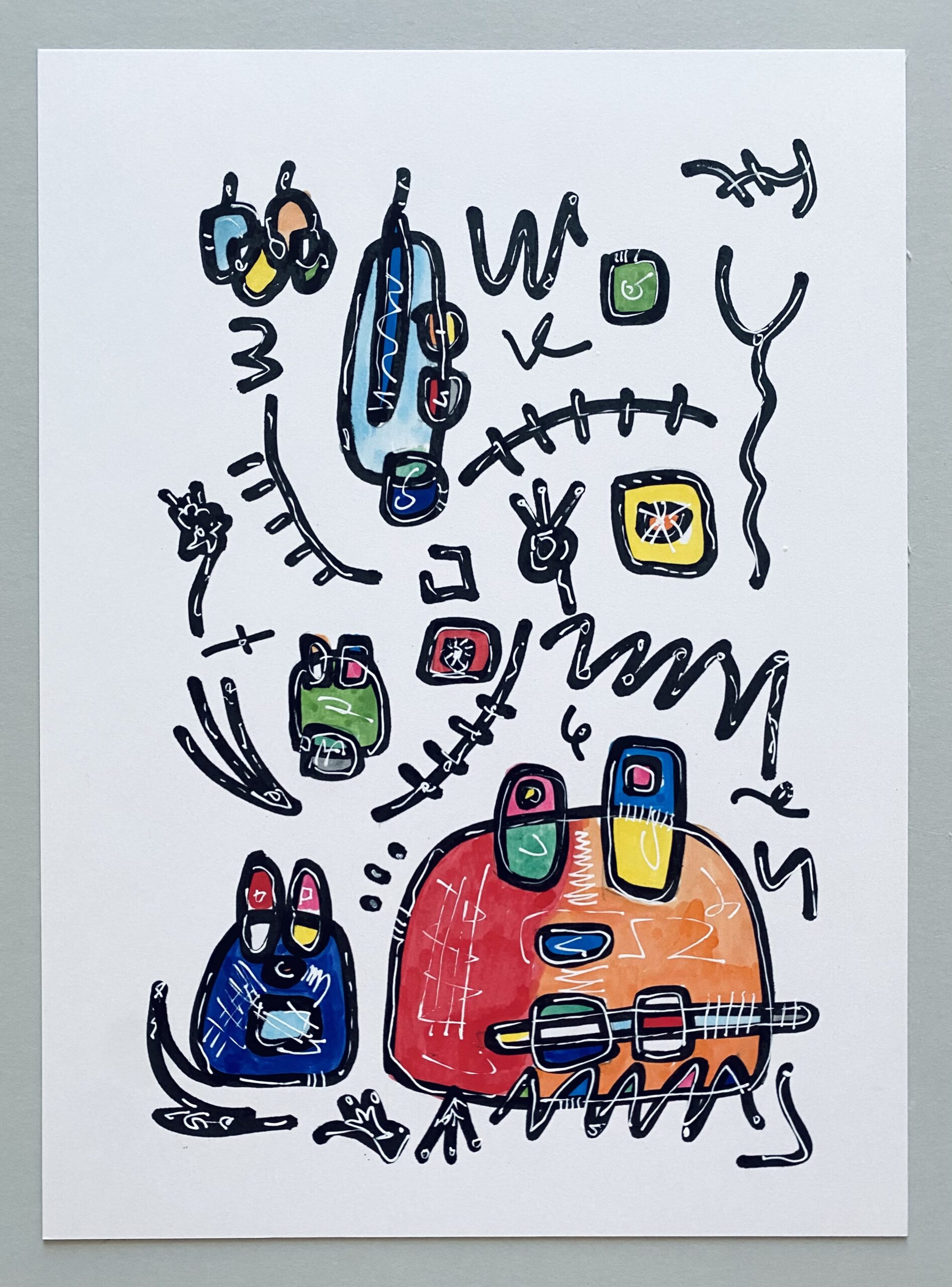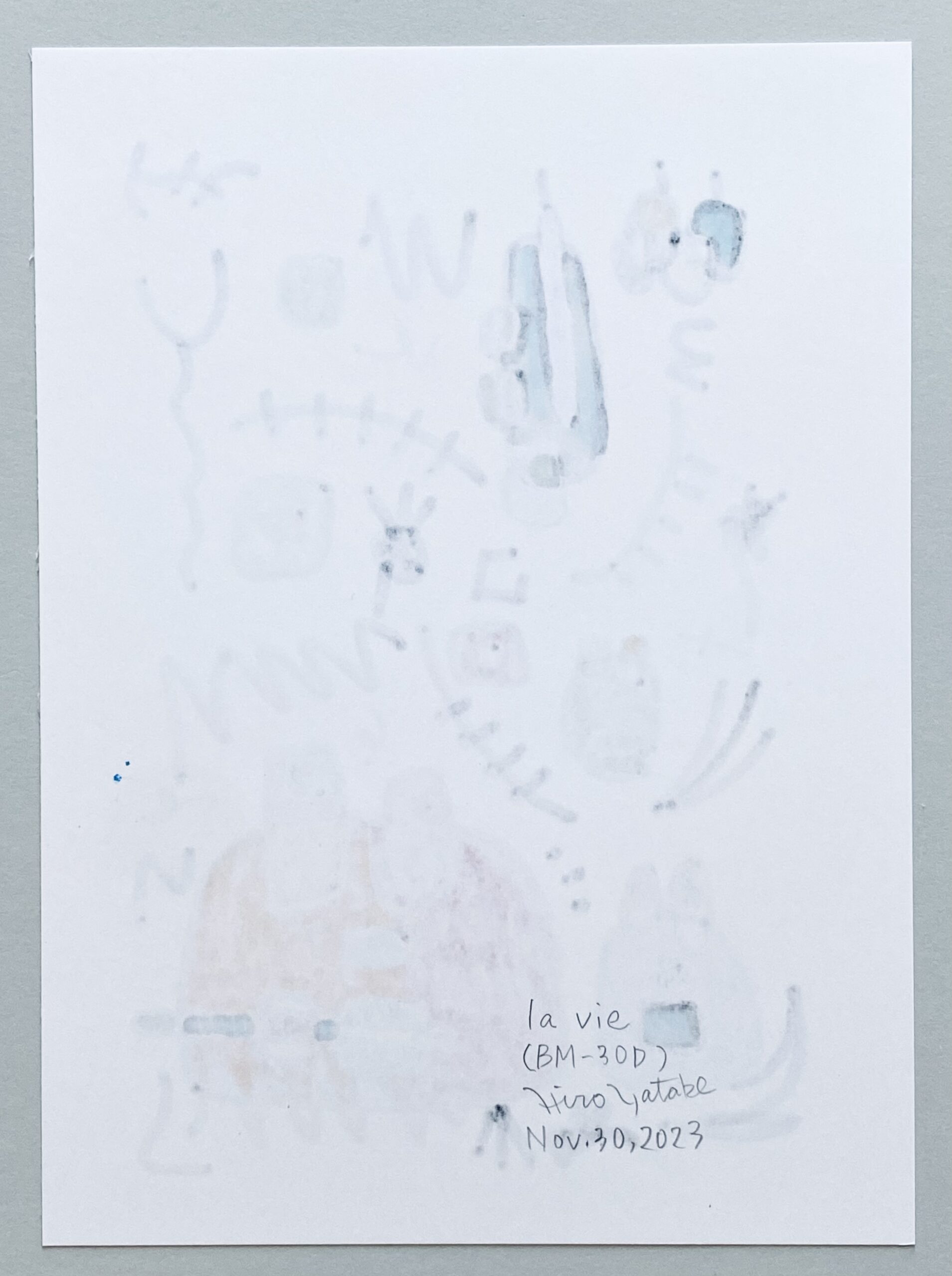 2008年 浮かんだイメージを付箋にボールペンでスケッチ。2012年になりそれをまとめたものを知人に見せたところサイズや画材をかえて絵画として発表することを勧められ、2013年、公募展にA4サイズのカードボードにペン・パステルで描いた作品を出品。その後アクリル絵具での創作をスタート。