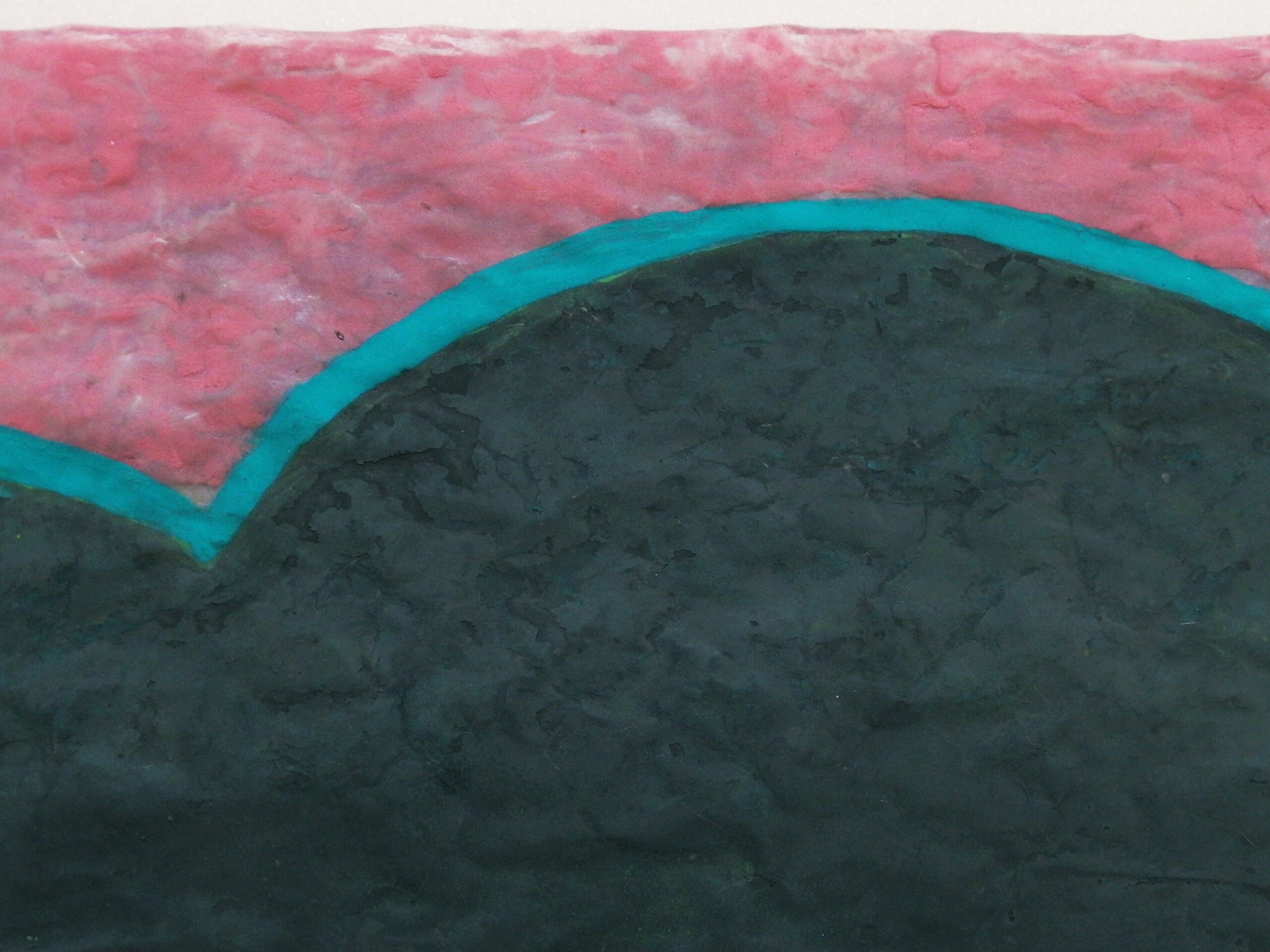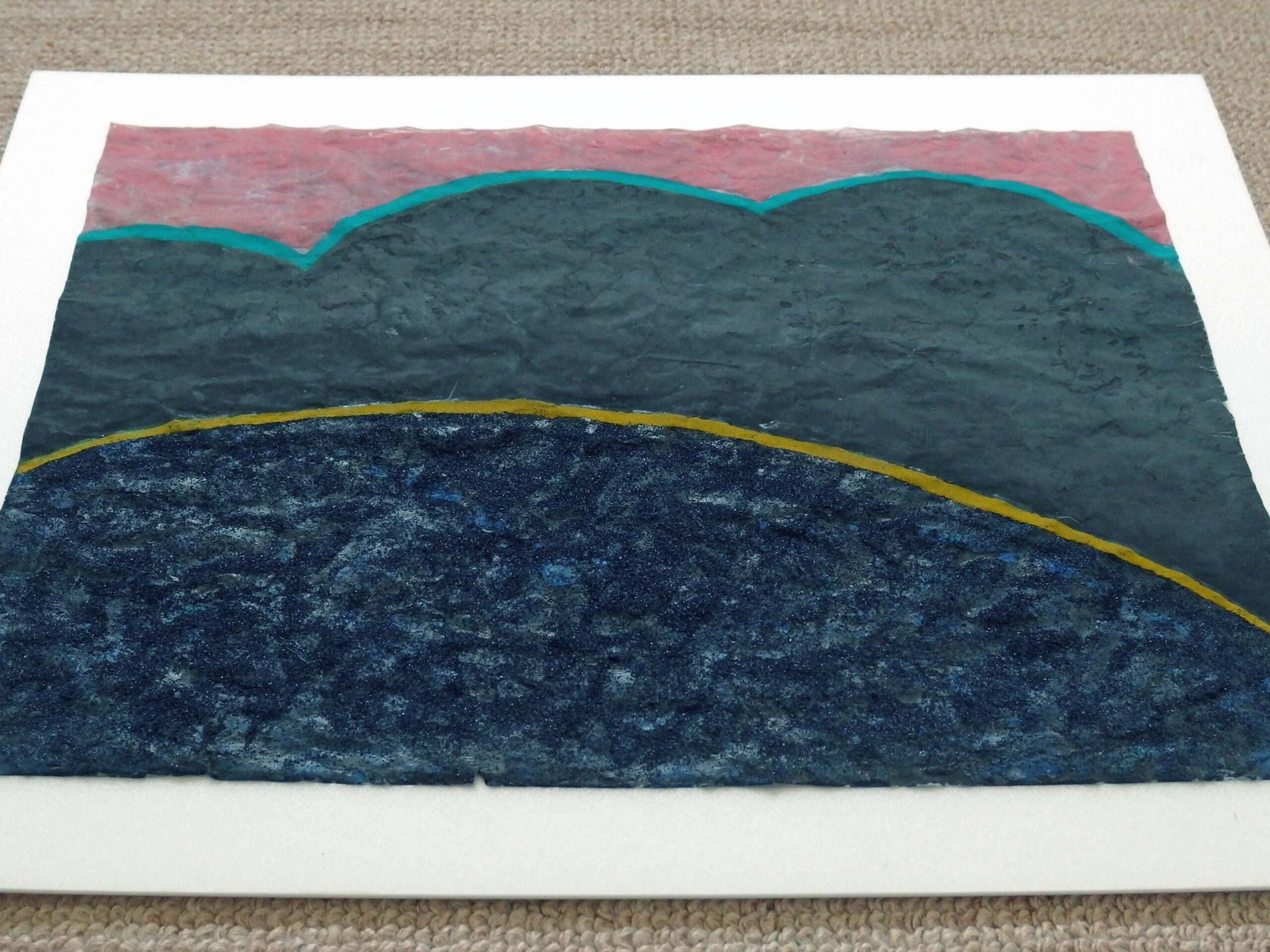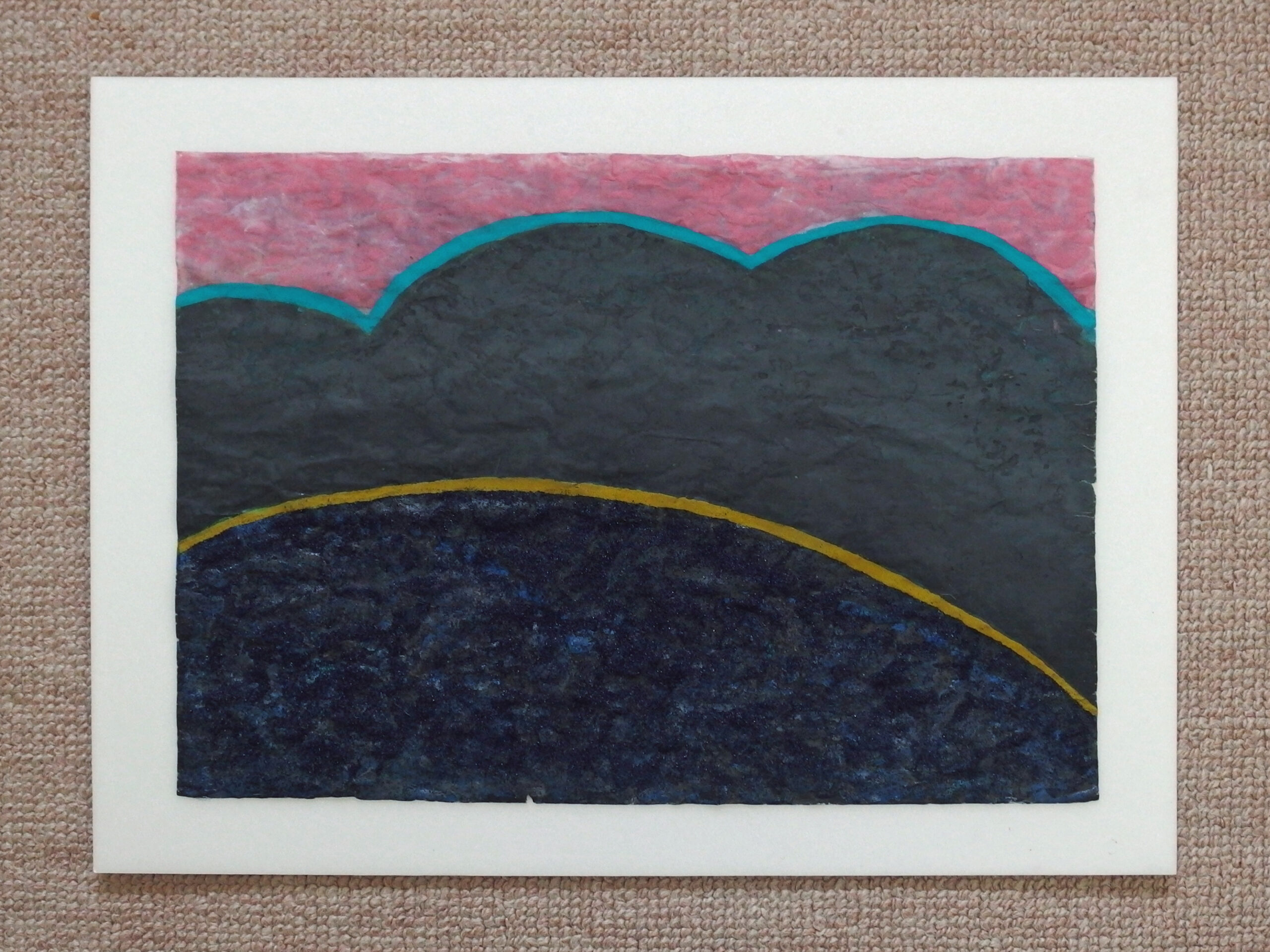 スチレンペーパーという光沢のある真っ白な素材に、岩絵の具自体の美しさが際立ちます。この組み合わせを発見し、気に入って使い続けています。