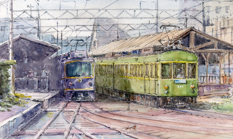 水彩画原画 江ノ電・江ノ島駅上下線 #668