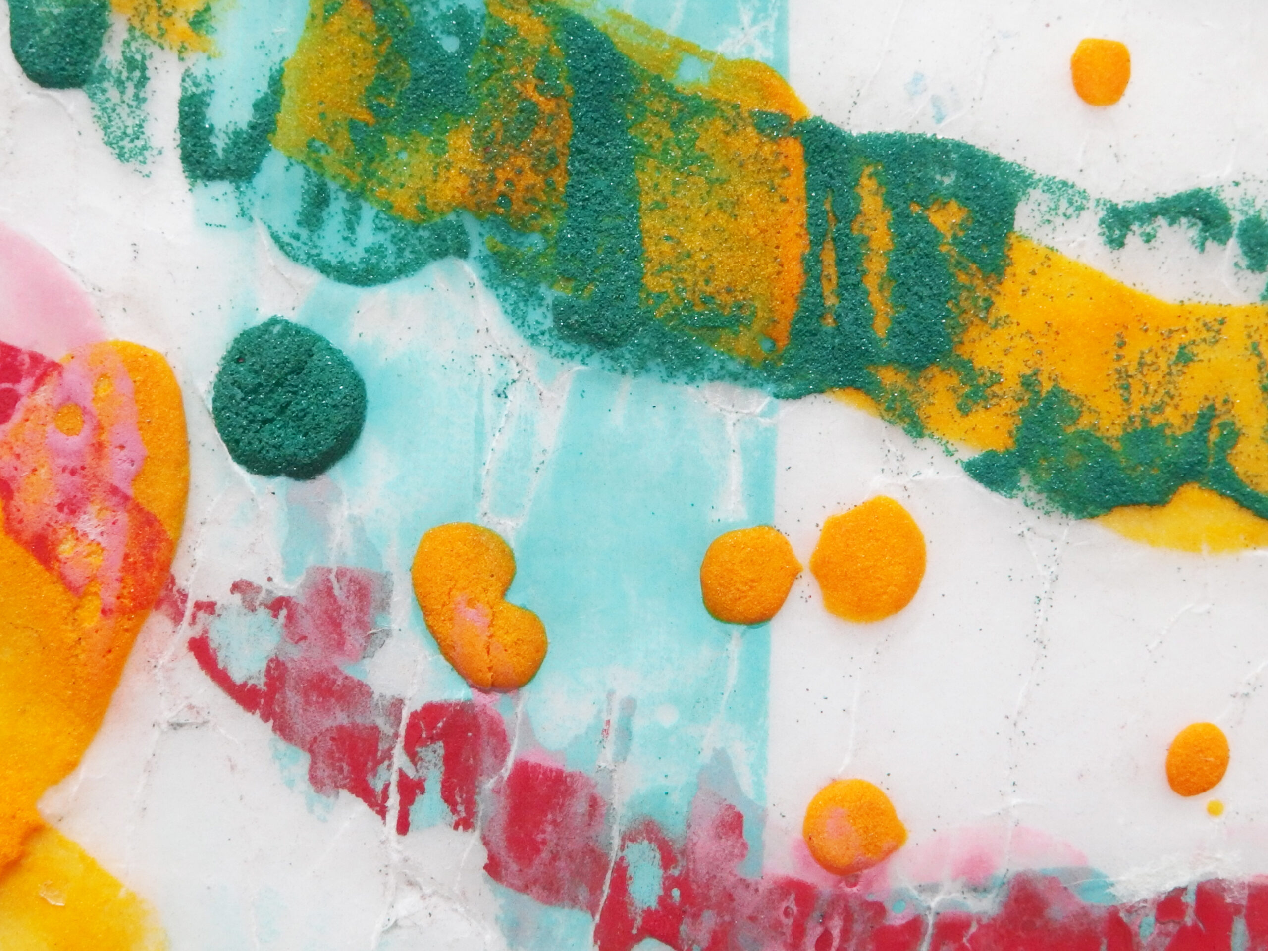 スチレンペーパーという光沢のある真っ白な素材に、岩絵の具自体の美しさが際立ちます。この組み合わせを発見し、気に入って使い続けています。