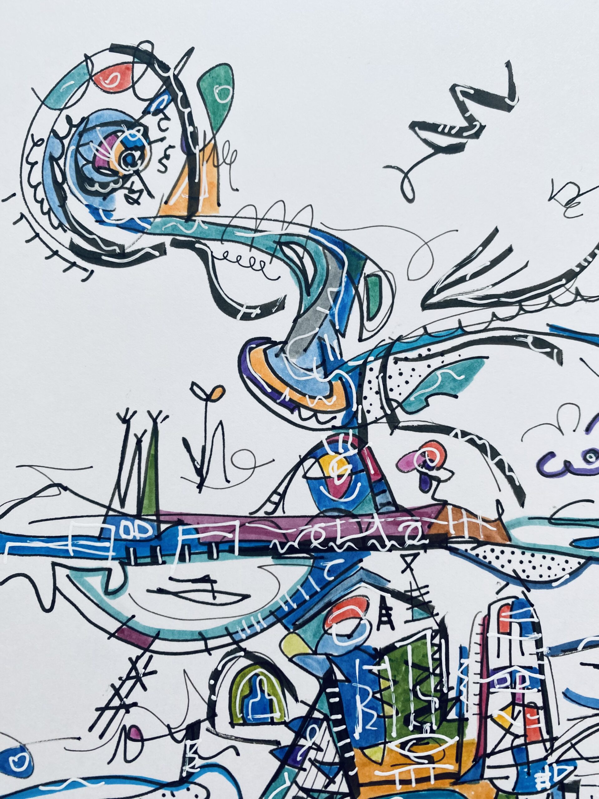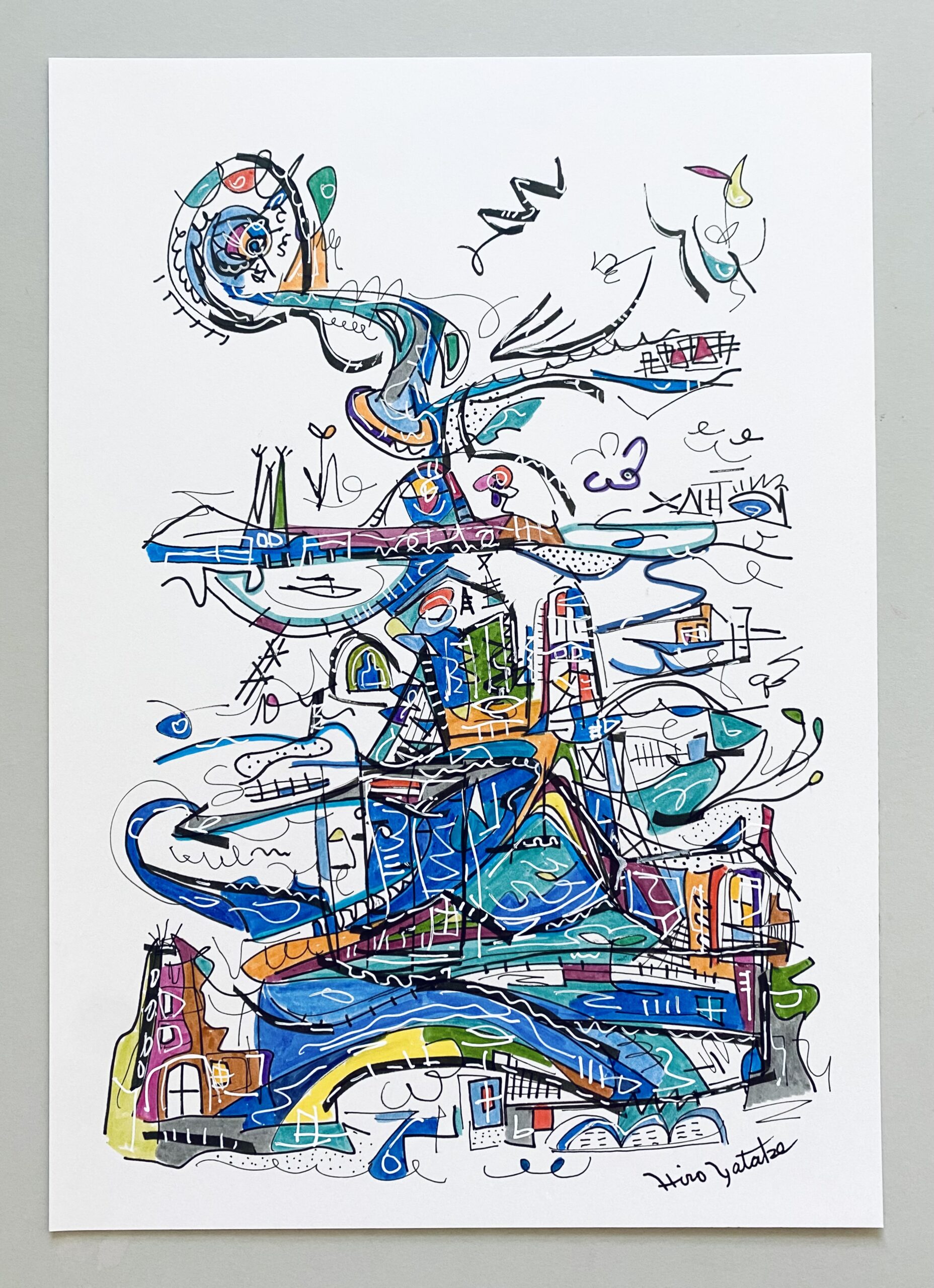 2008年 浮かんだイメージを付箋にボールペンでスケッチ。2012年になりそれをまとめたものを知人に見せたところサイズや画材をかえて絵画として発表することを勧められ、2013年、公募展にA4サイズのカードボードにペン・パステルで描いた作品を出品。その後アクリル絵具での創作をスタート。