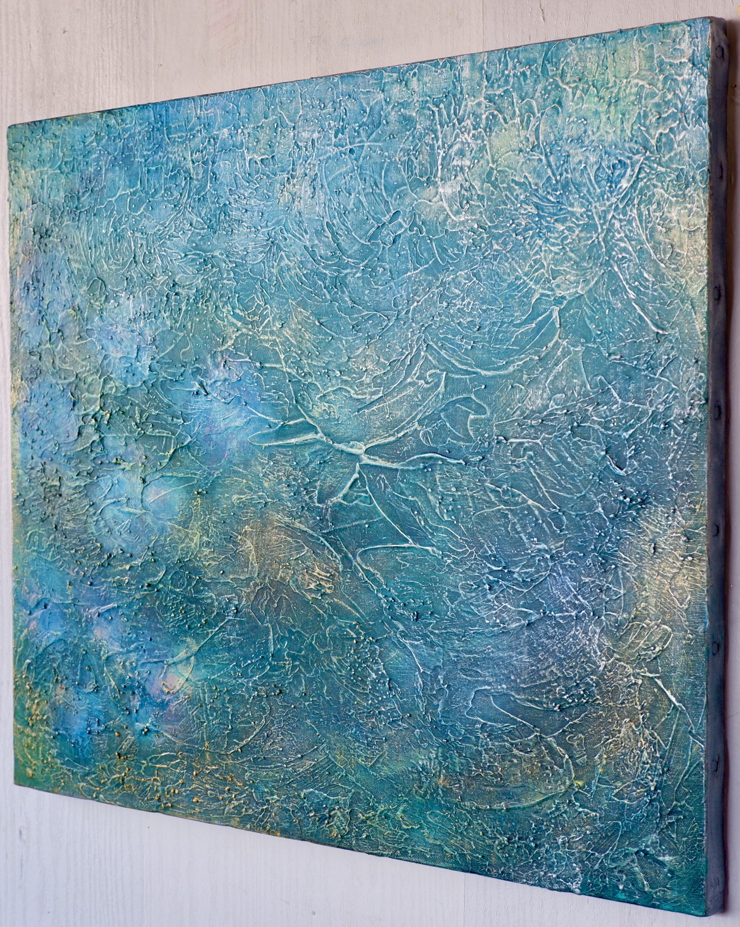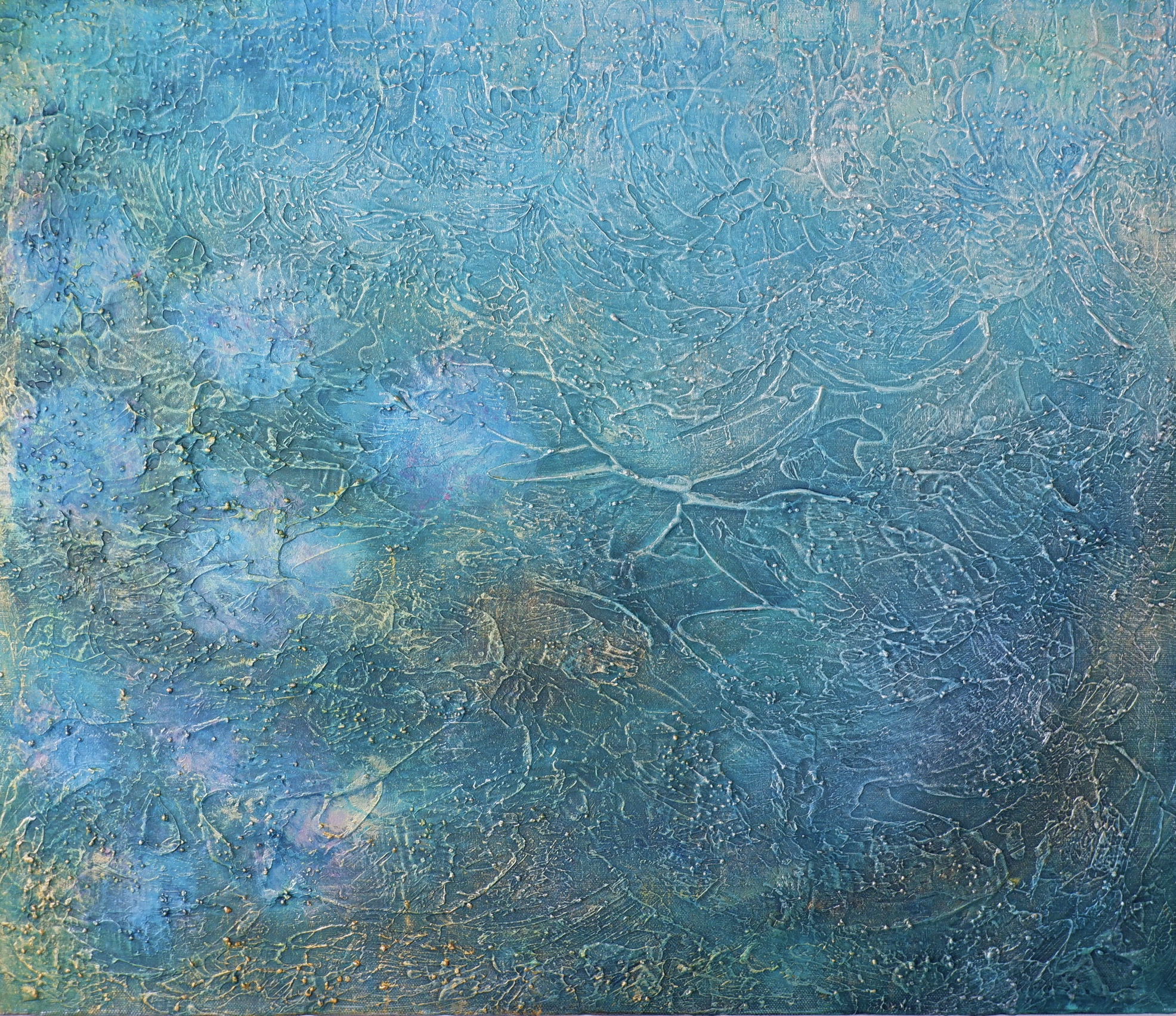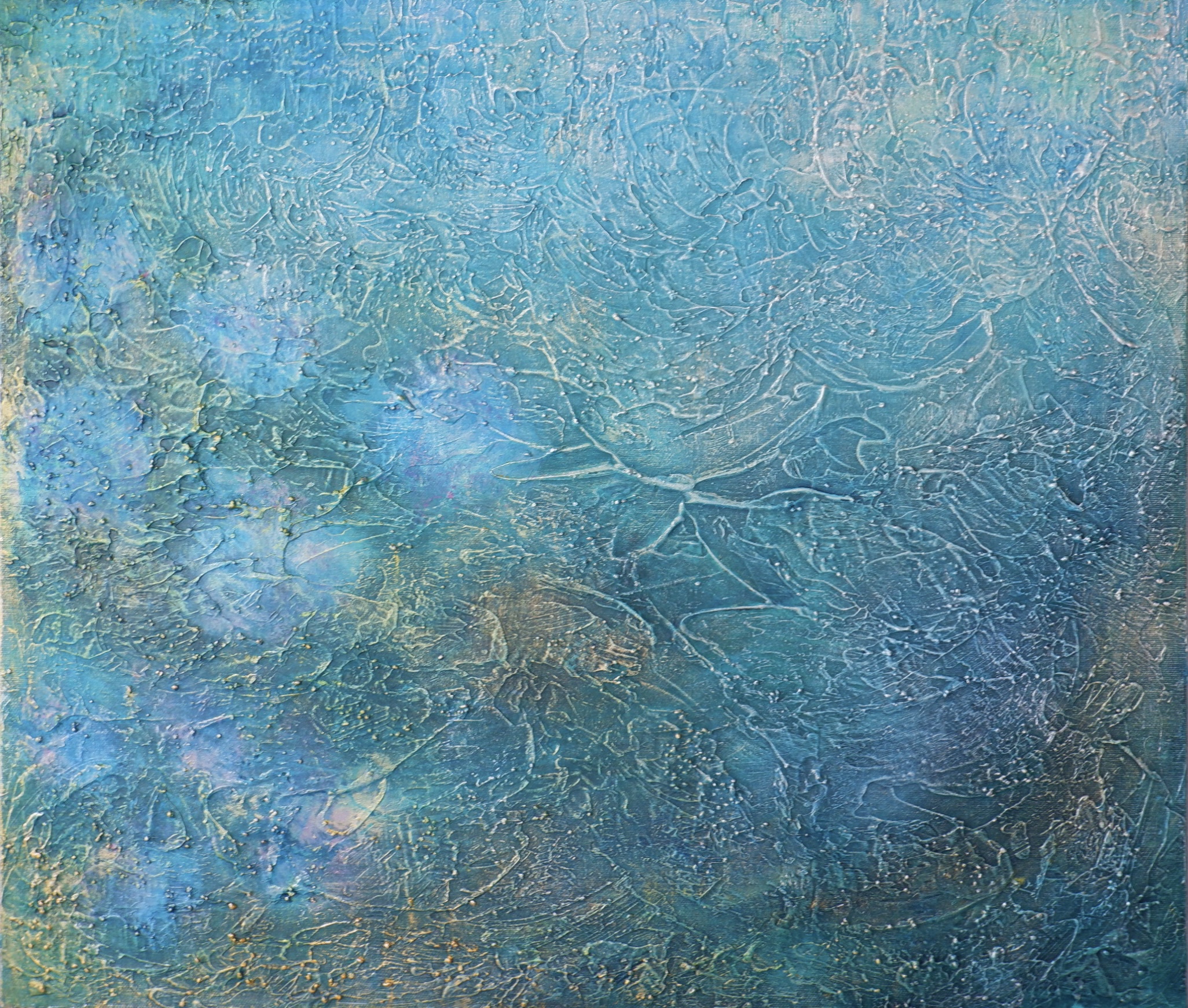 表面に浮かぶ繊細な光は、自然からの祝福や、静かに流れる癒しのエネルギーを表しています。