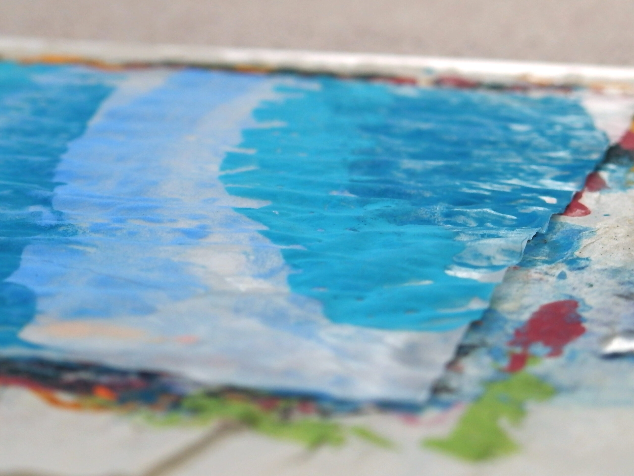 スチレンペーパーという光沢のある真っ白な素材に、岩絵の具自体の美しさが際立ちます。この組み合わせを発見し、気に入って使い続けています。