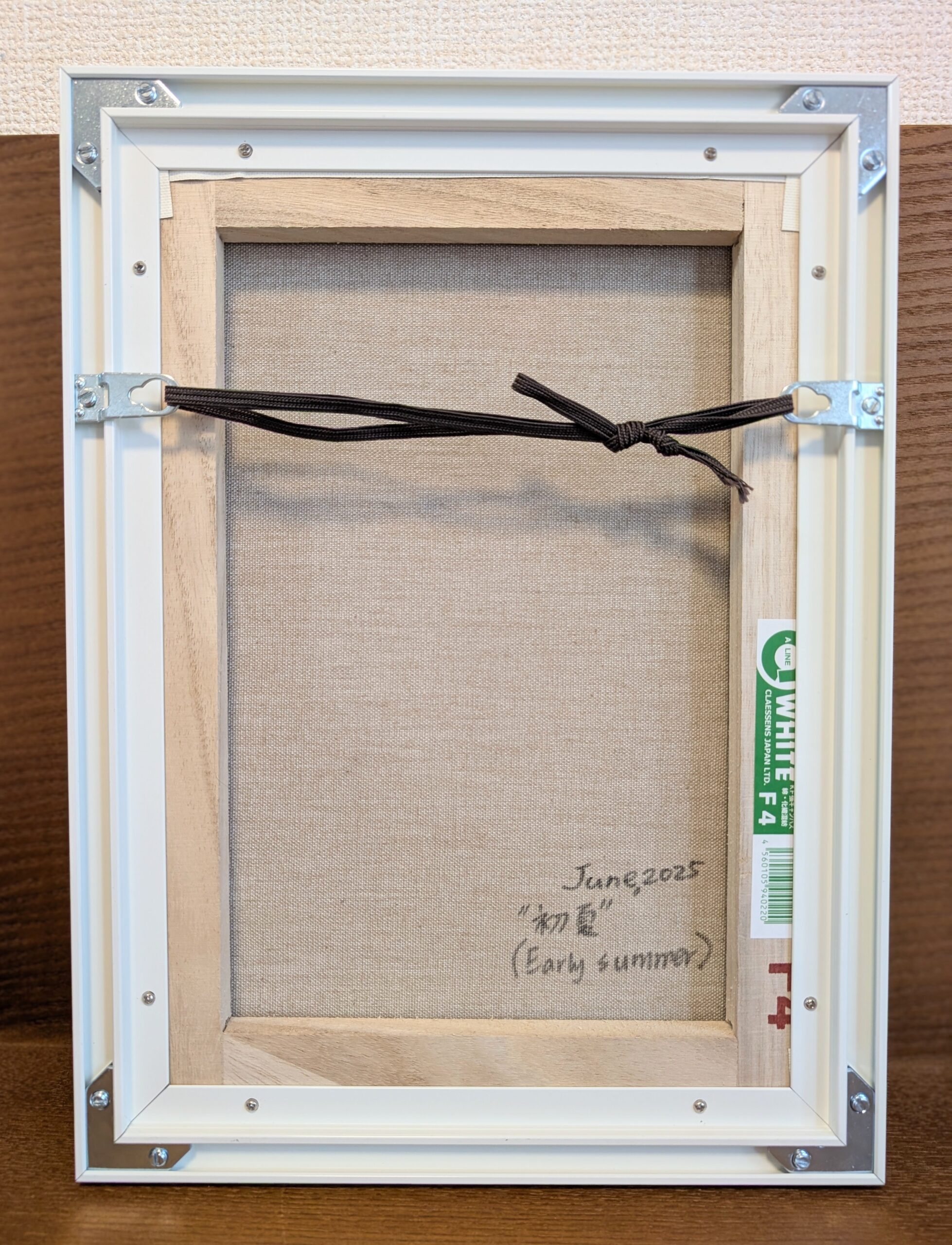 額縁は、マルニ額縁画材店さんの仮額縁(MRN-A4106 ホワイト)になります。表面カバーは付いていません。