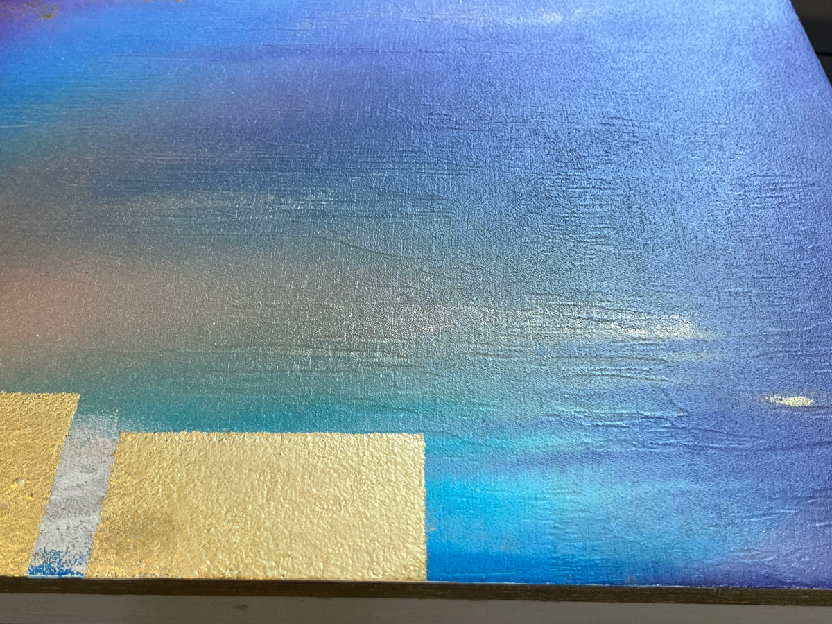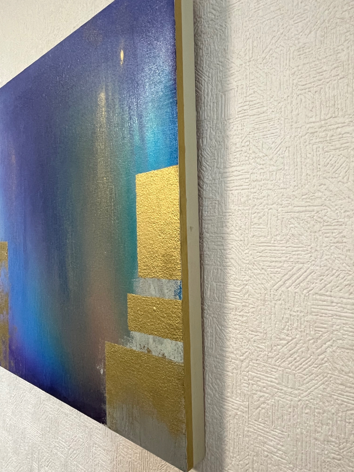 錦ゆえ ※アルコールインクアートをベースにして、マットゴールドを感じよく塗布しました。 ※アルコールインクアート部分は光の加減により画像と多少異なる場合があります、ご了承くださいませ。 ※作品証明書は裏のサインとは別にお付けいたします。