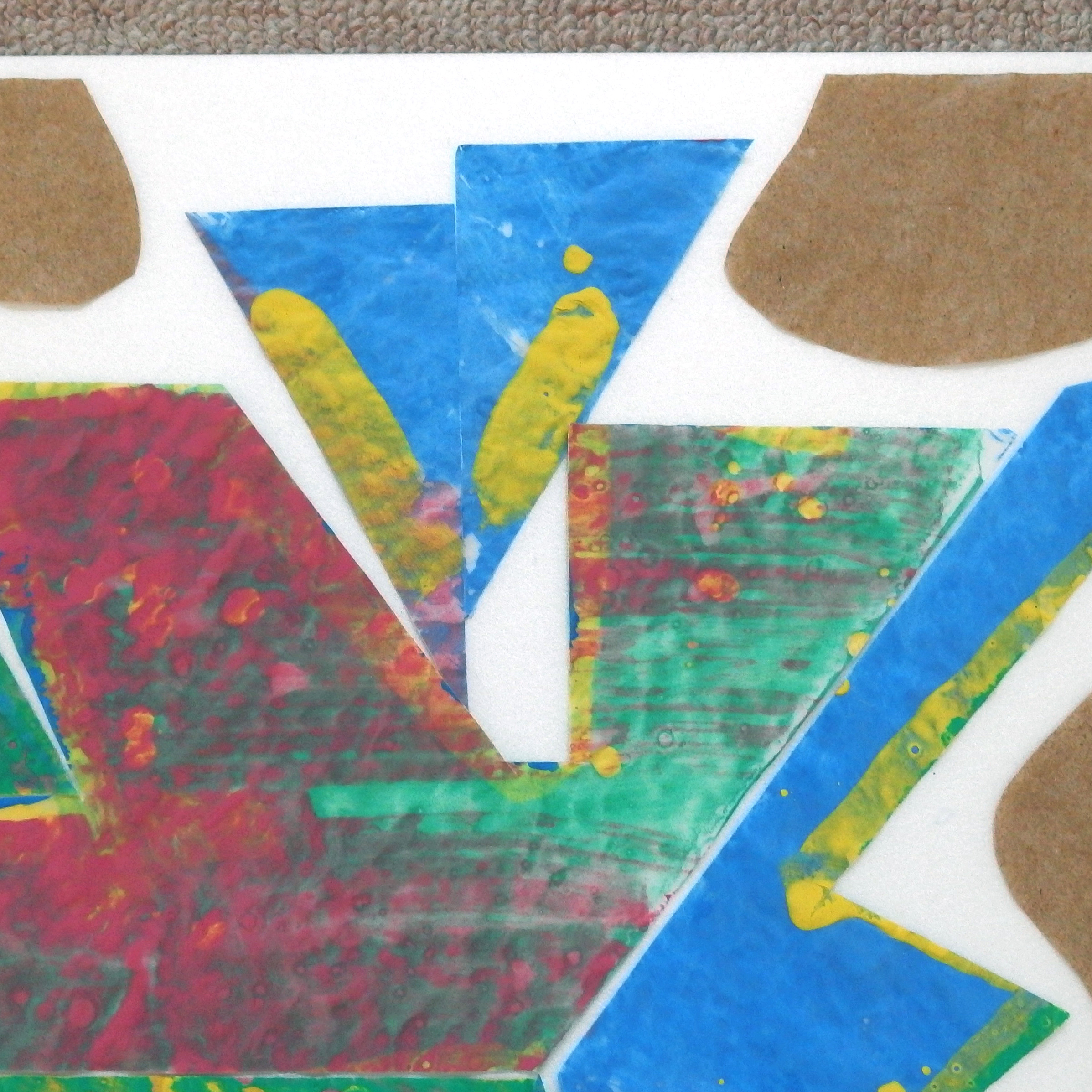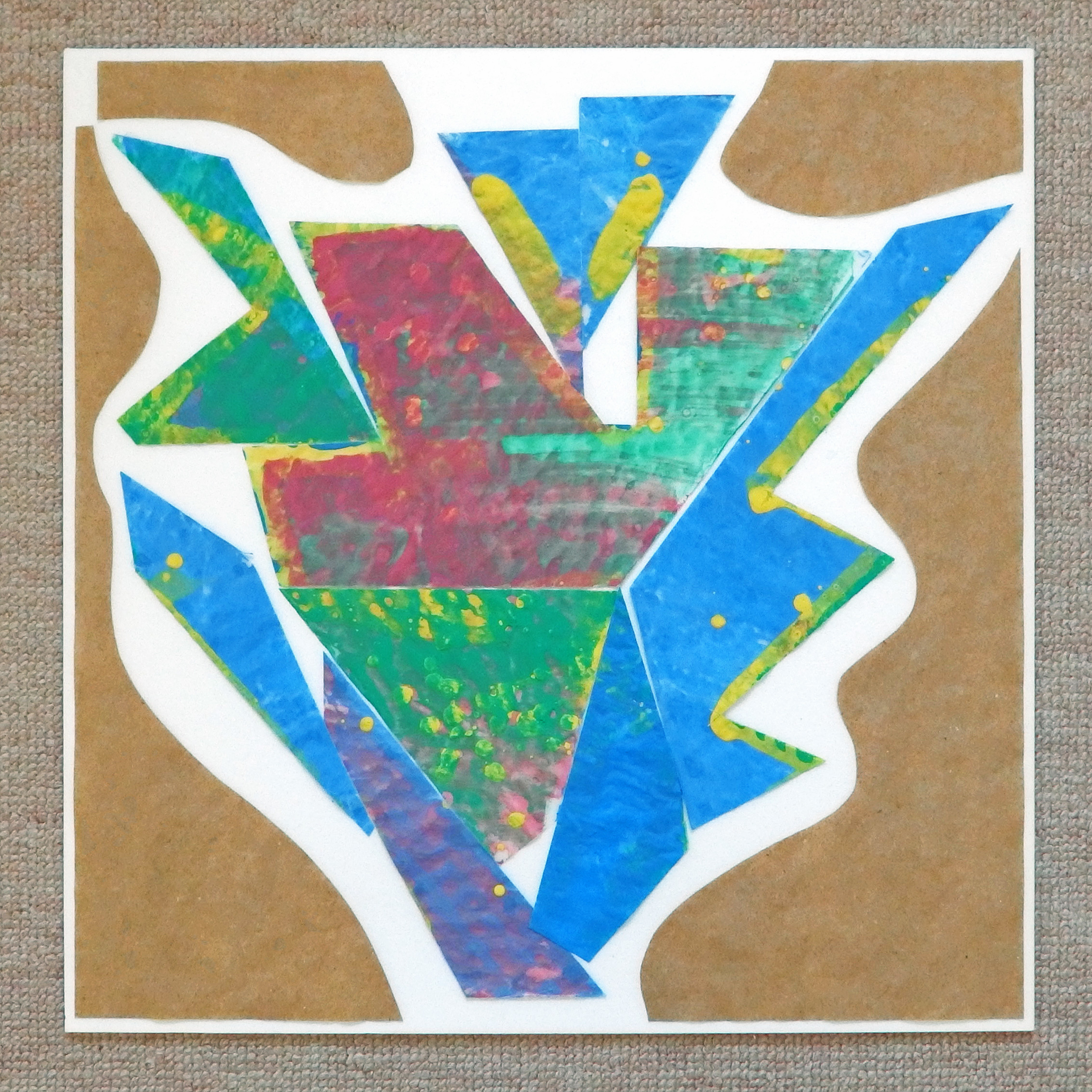 天然素材の和紙に膠を使うのが「日本画」の常識ですが、あえて人工素材を使っています。