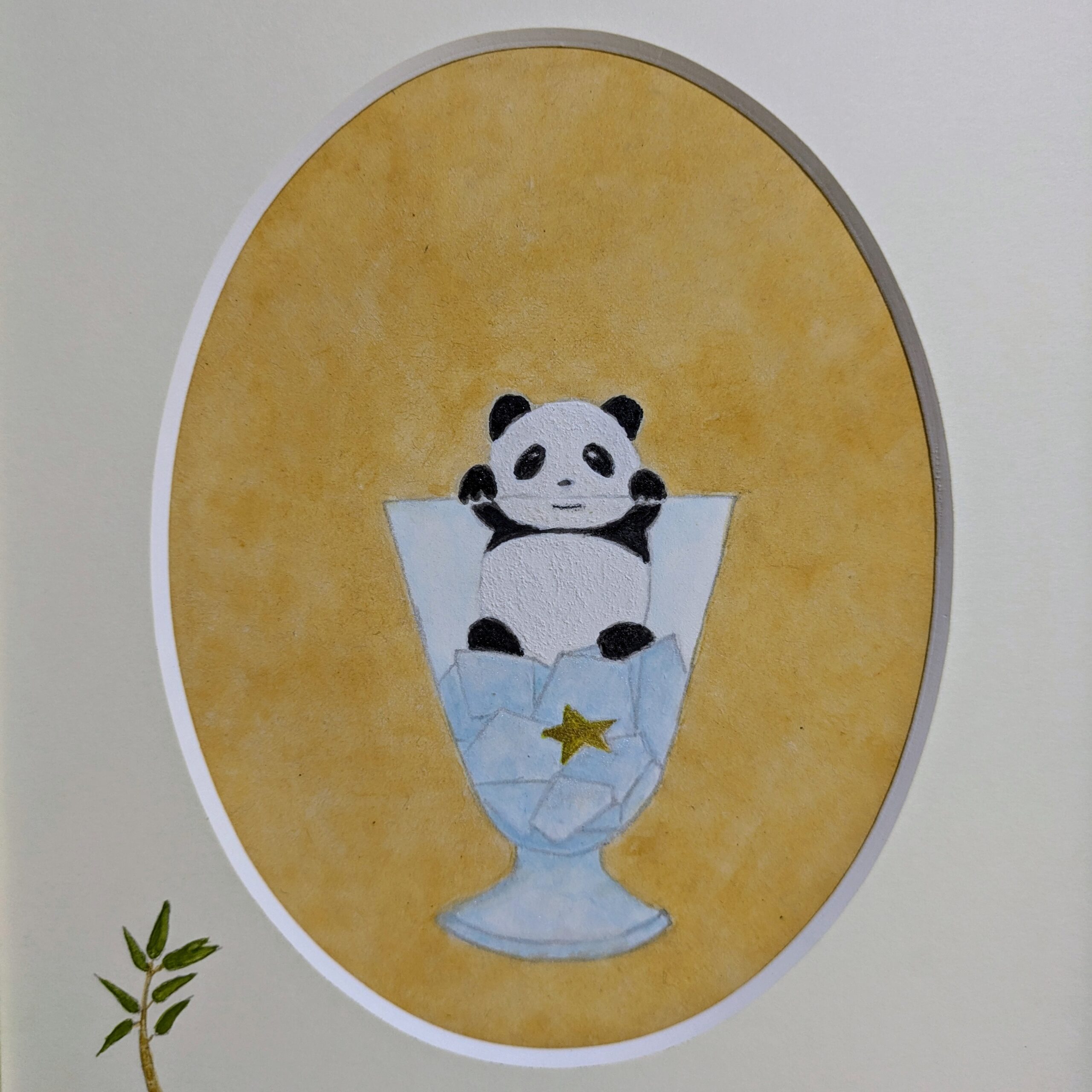 パンダの白い部分には水晶の粒子を 黒い部分にはブラックトルマリンの粒子を練り込み少し盛り上げて仕上げています。