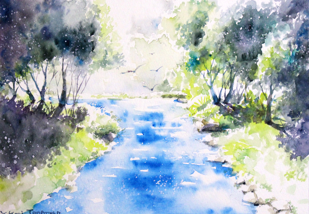 ふと視線が向くような、ダイナミックな雰囲気の作品を水彩(たまにアクリル)で描くのが好みです。