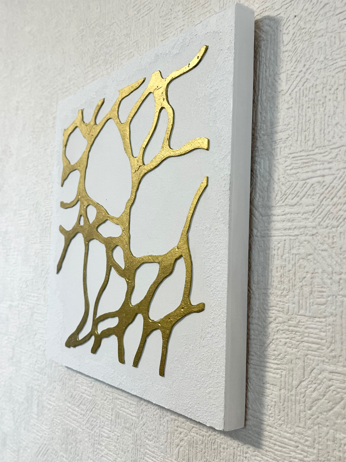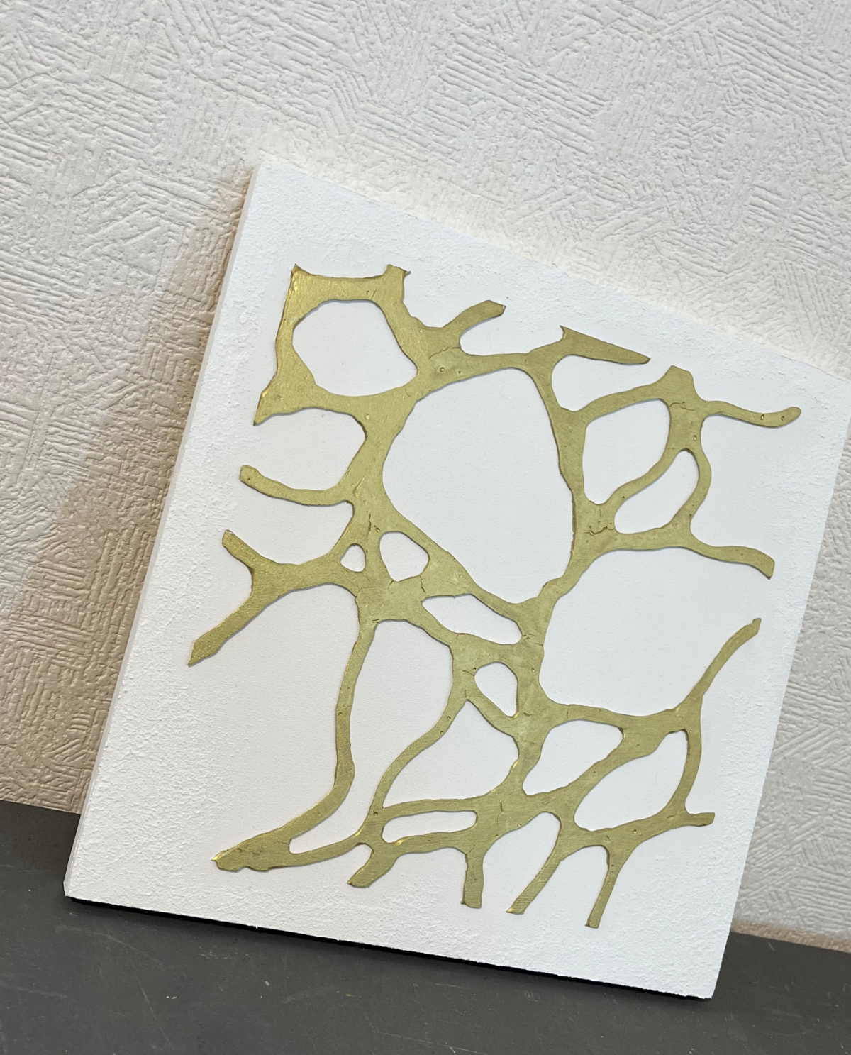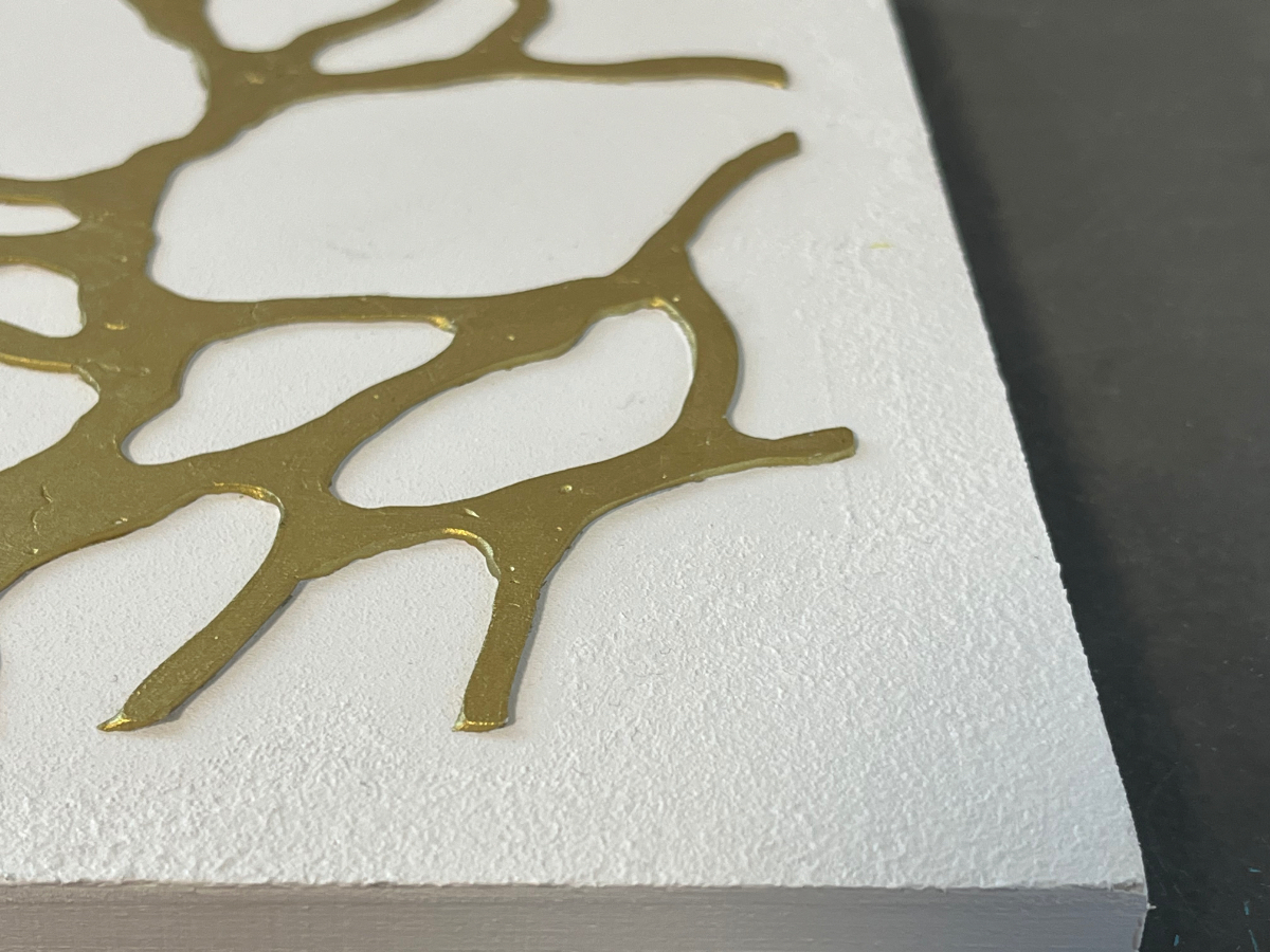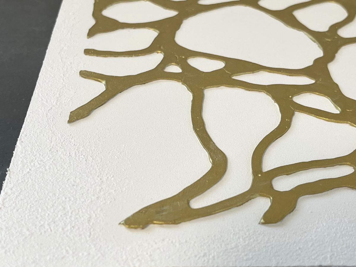 厚みとゴールドの落ち着いたカラーリングがポイントです。触っても楽しめるボコボコした表面も。すべてに重厚感を意識しております。