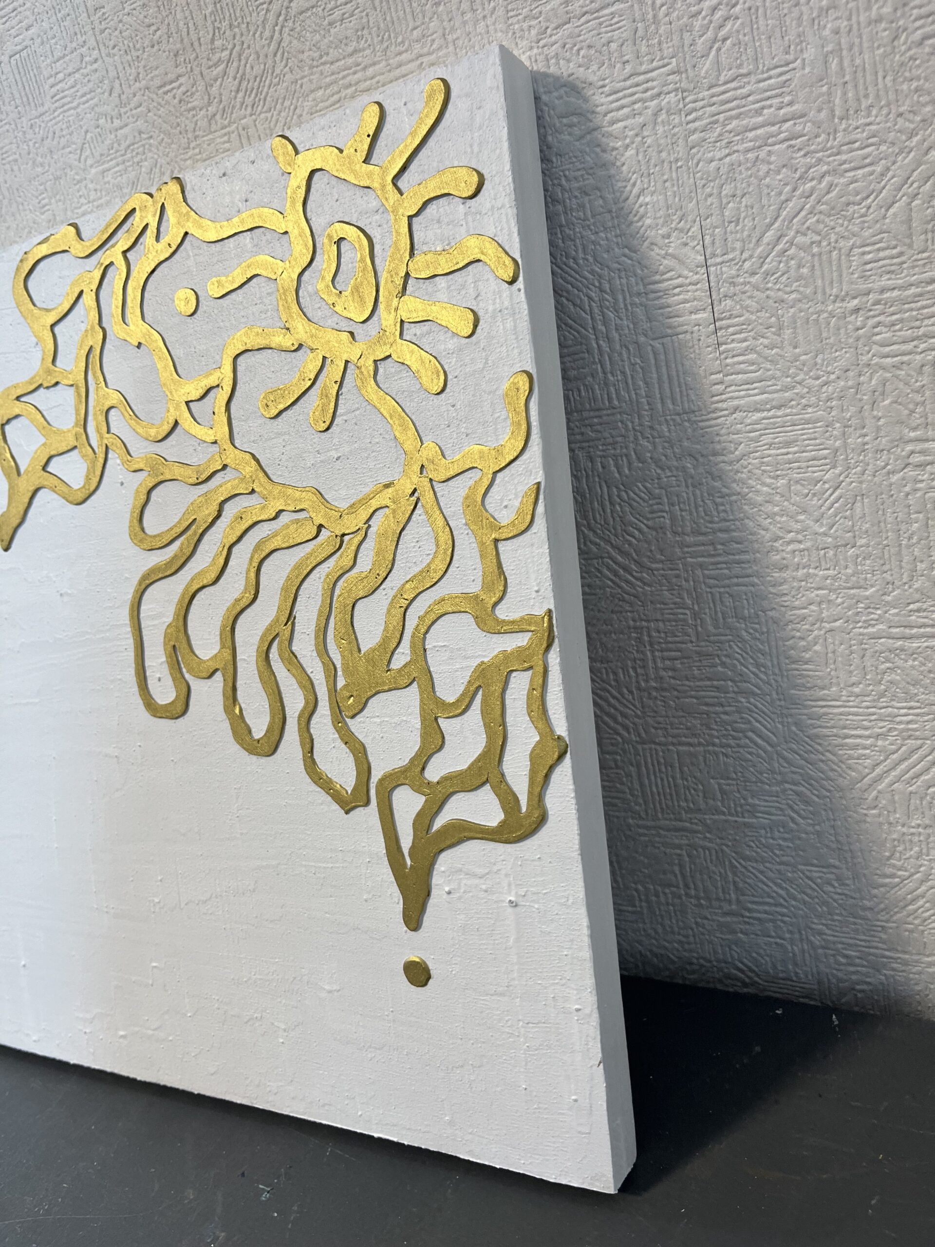 厚みとゴールドの落ち着いたカラーリングがポイントです。触っても楽しめるボコボコした表面も。すべてに重厚感を意識しております。