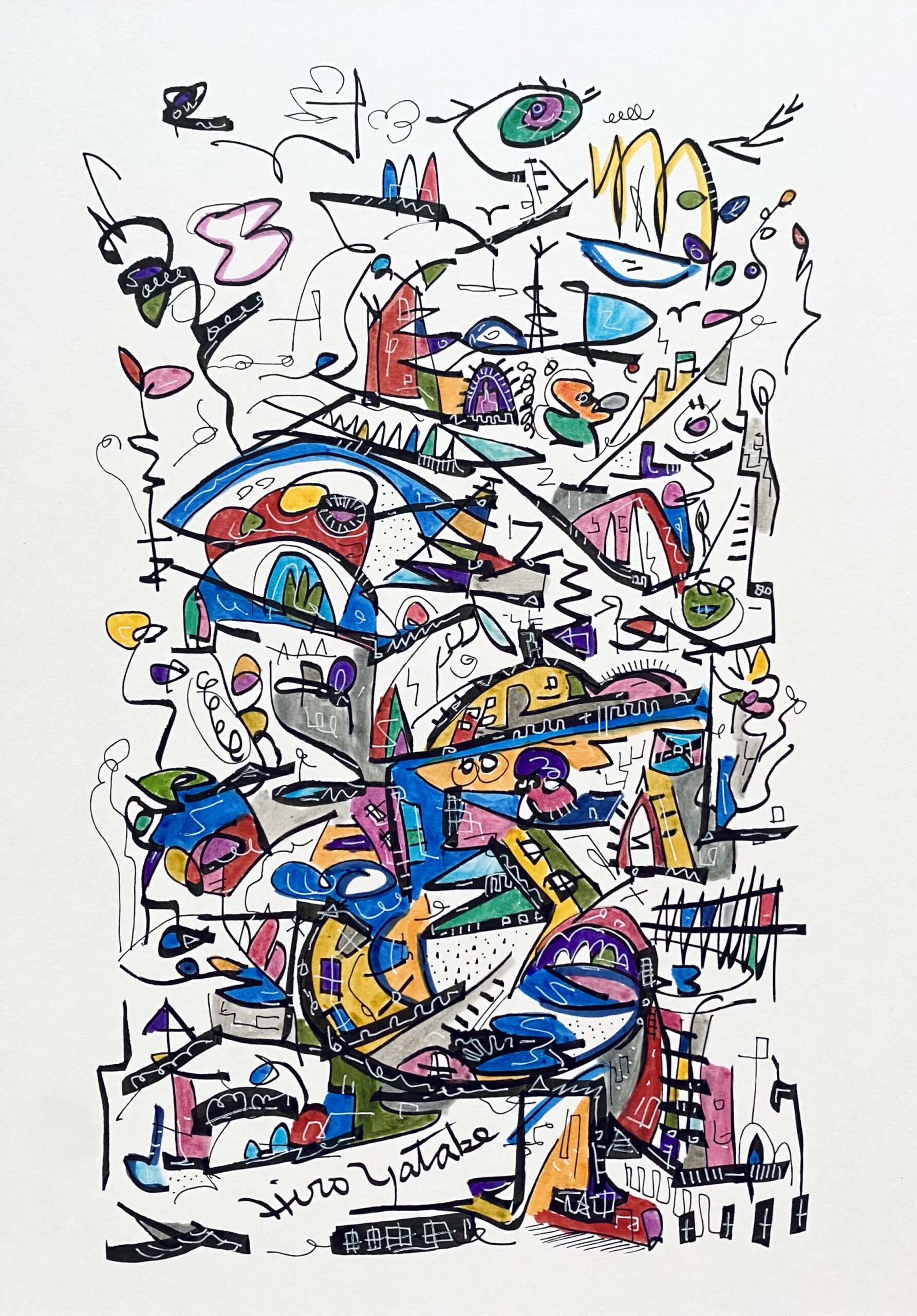 シリーズ作品を除き、タイトルは創作のはじめにあったものではなく、描き終えた時点で観る側となった私が名付けた「仮のタイトル」です。参考にするのも、答え合わせのように楽しむのも、あるいはまったく無視するのも自由です。抽象表現の色や形に意味を見出す手がかりは、あなたの記憶や経験のなかにしかありません。最終的な作品は観るかたの中で完成すべきものだと考えています。思い思いに想像の翼を羽ばたかせ、作品に新しい解釈を加えていただくことを望みます。