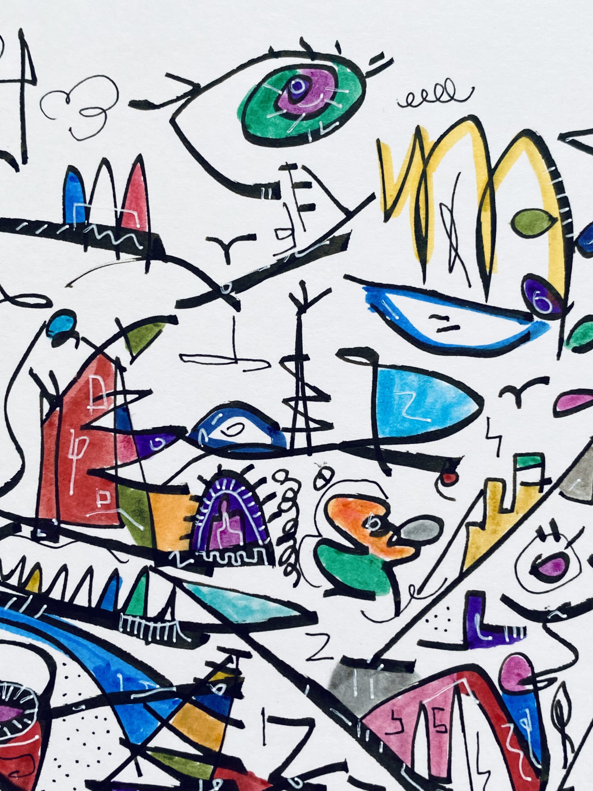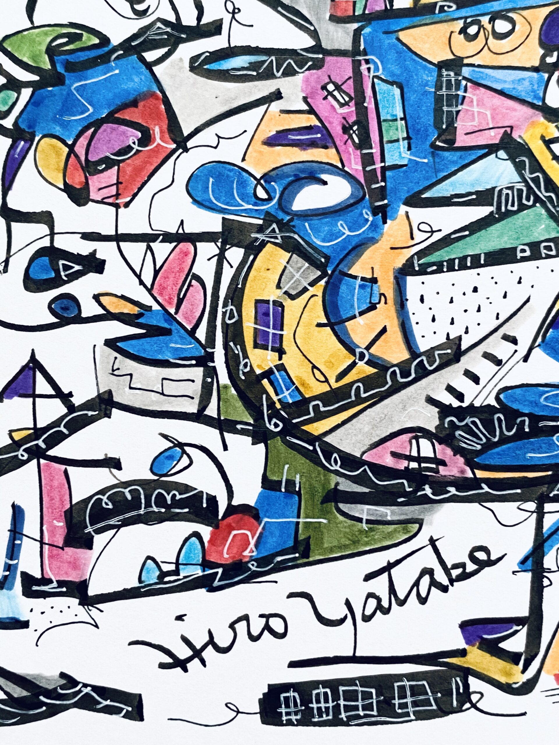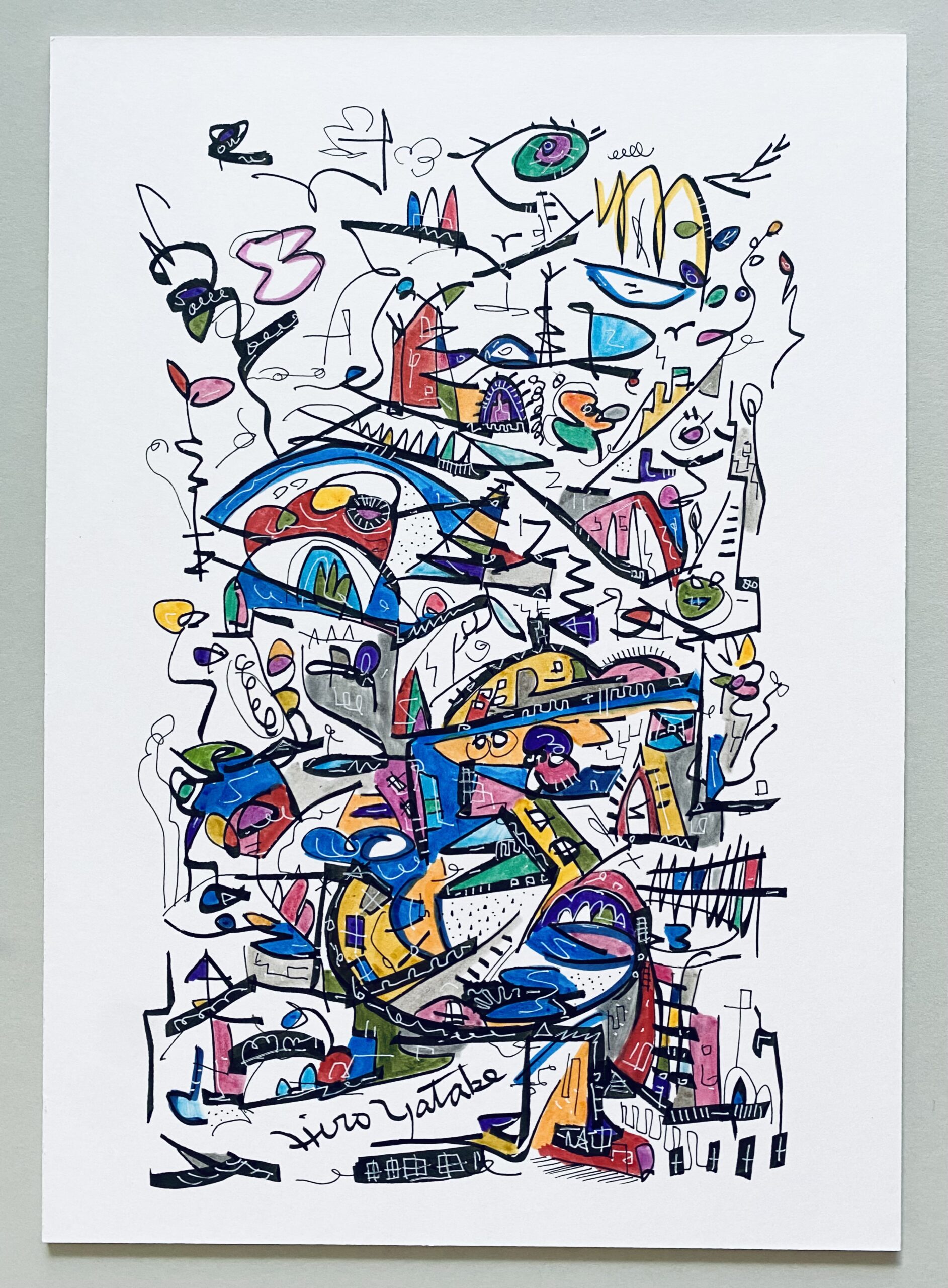 2008年 浮かんだイメージを付箋にボールペンでスケッチ。2012年になりそれをまとめたものを知人に見せたところサイズや画材をかえて絵画として発表することを勧められ、2013年、公募展にA4サイズのカードボードにペン・パステルで描いた作品を出品。その後アクリル絵具での創作をスタート。