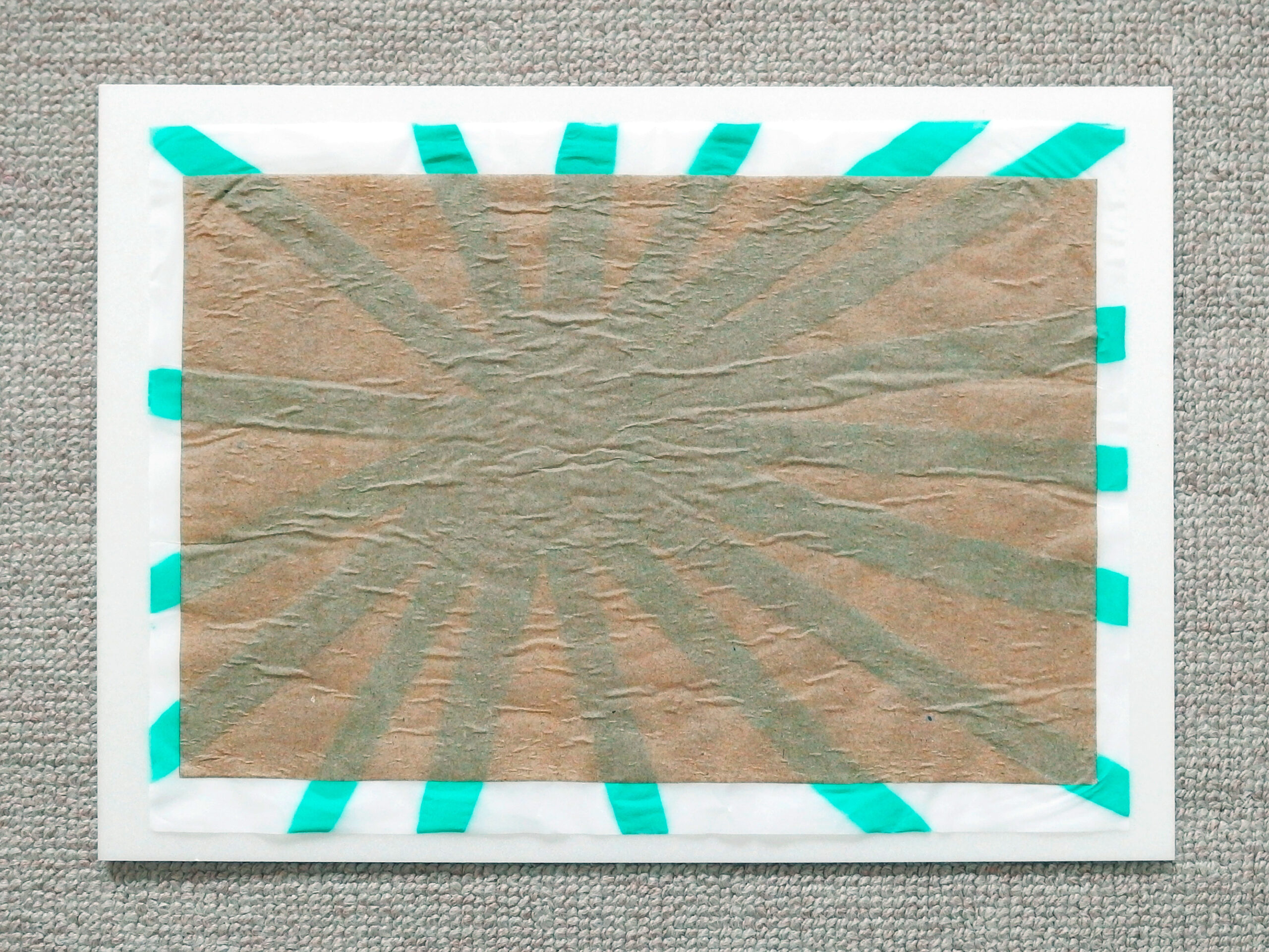 天然素材の和紙に膠を使うのが「日本画」の常識ですが、あえて人工素材を使っています。
