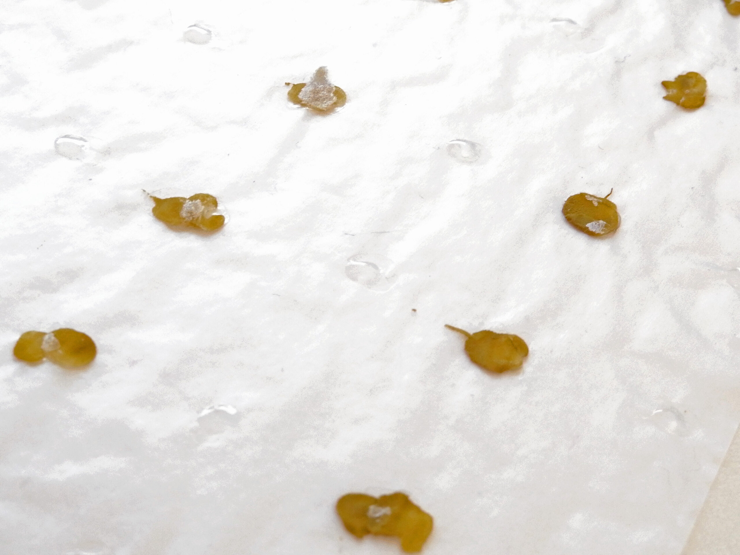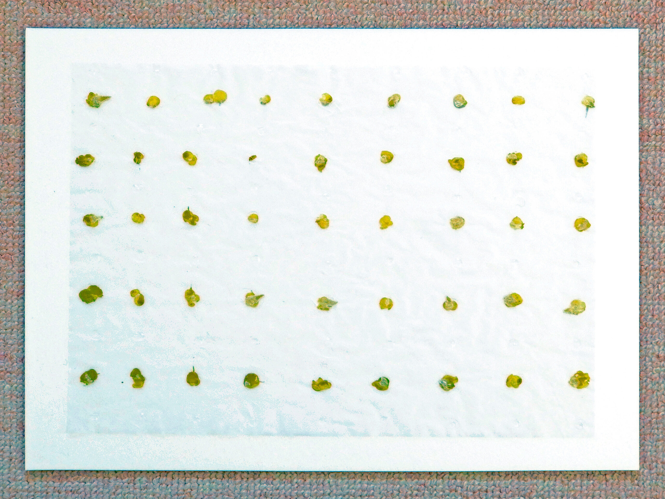 スチレンペーパーという光沢のある真っ白な素材に、岩絵の具自体の美しさが際立ちます。この組み合わせを発見し、気に入って使い続けています。