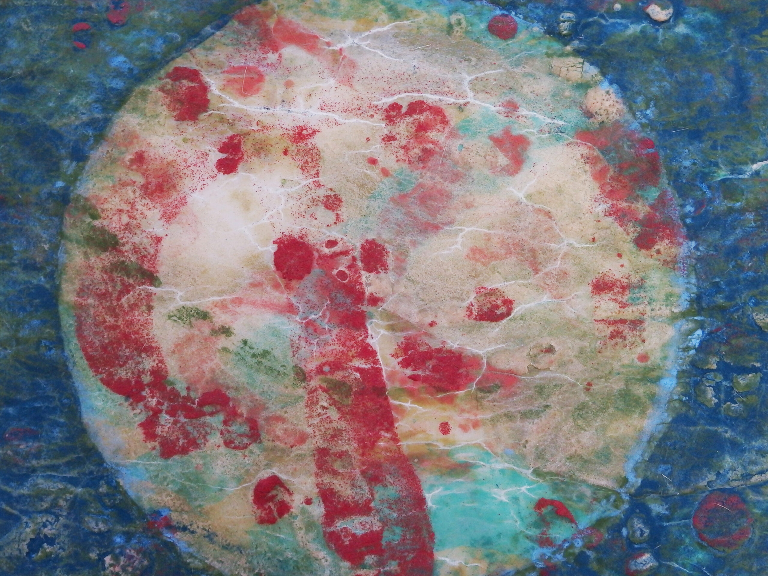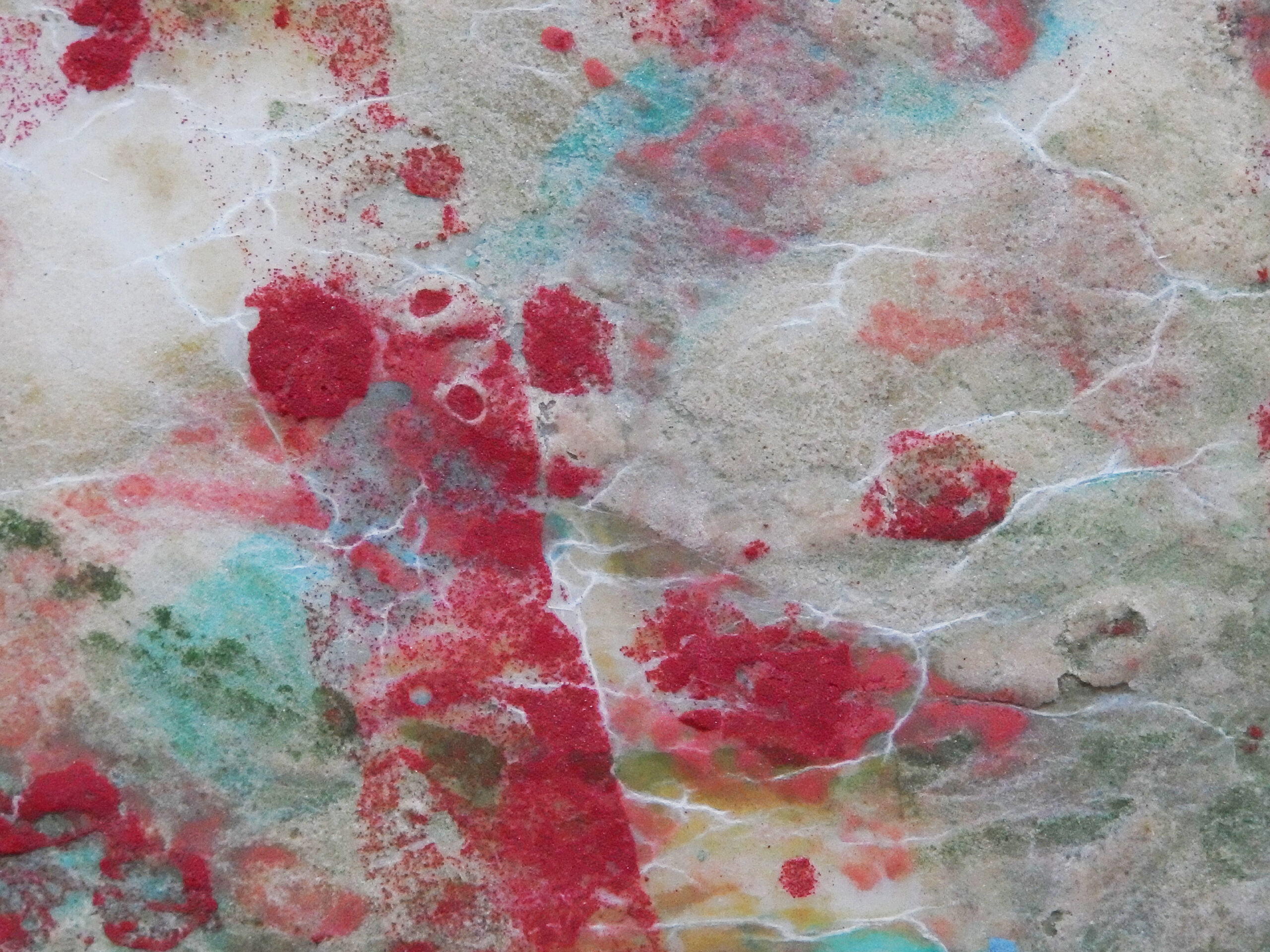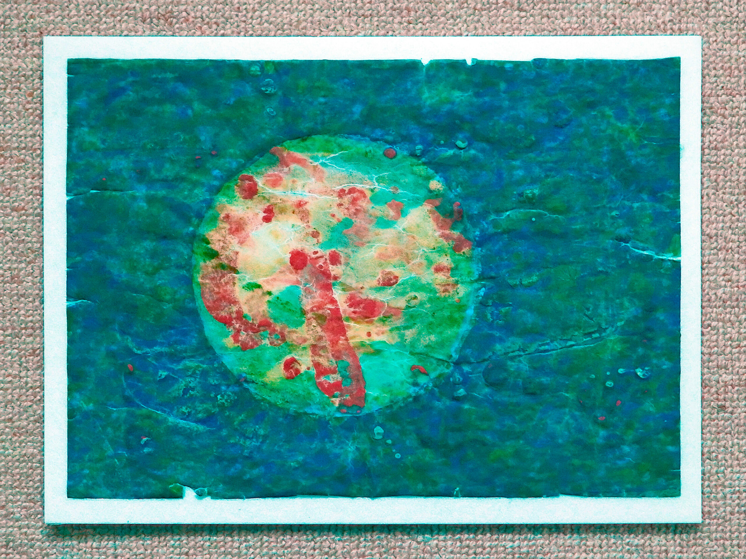 スチレンペーパーという光沢のある真っ白な素材に、岩絵の具自体の美しさが際立ちます。この組み合わせを発見し、気に入って使い続けています。