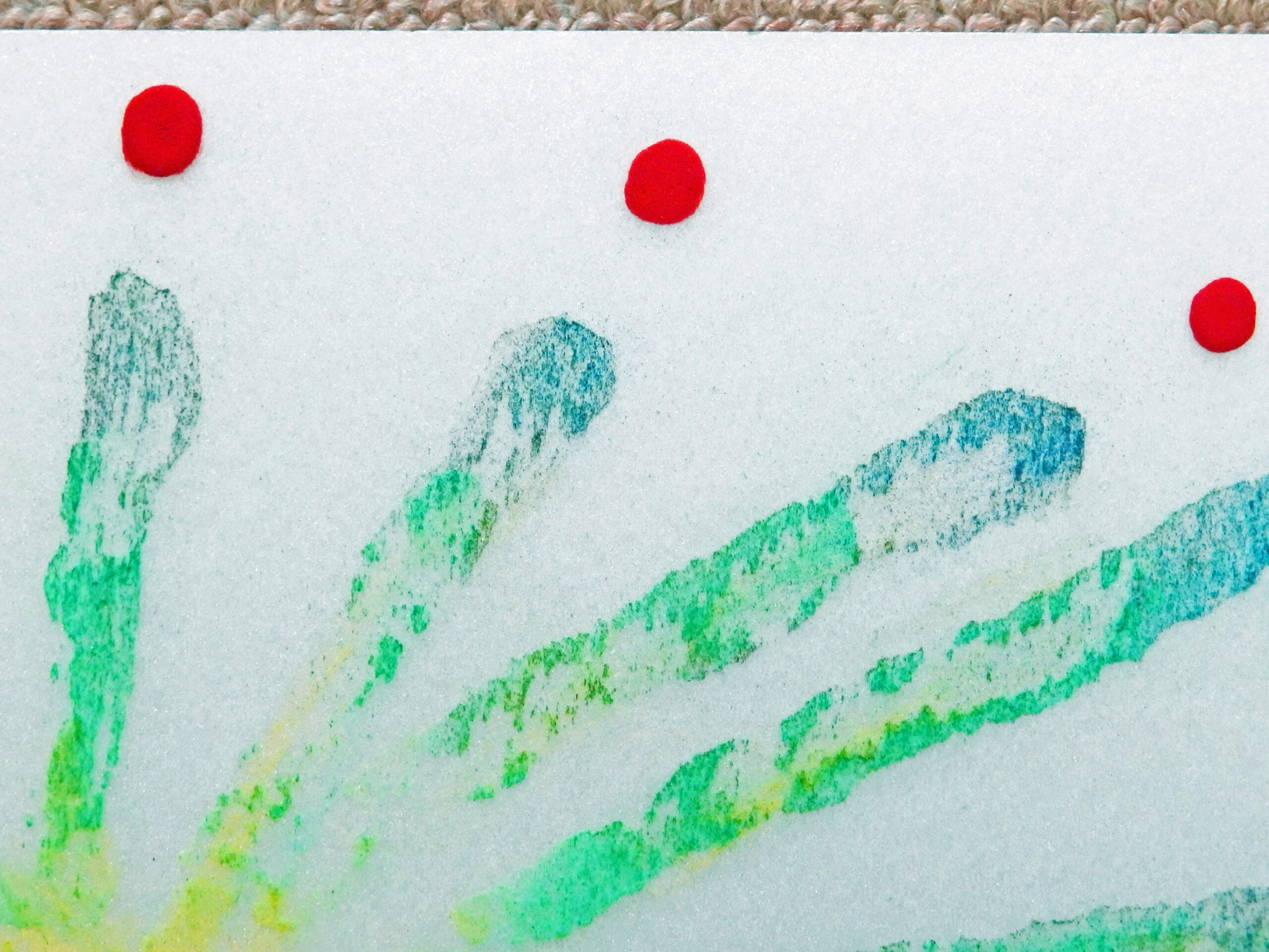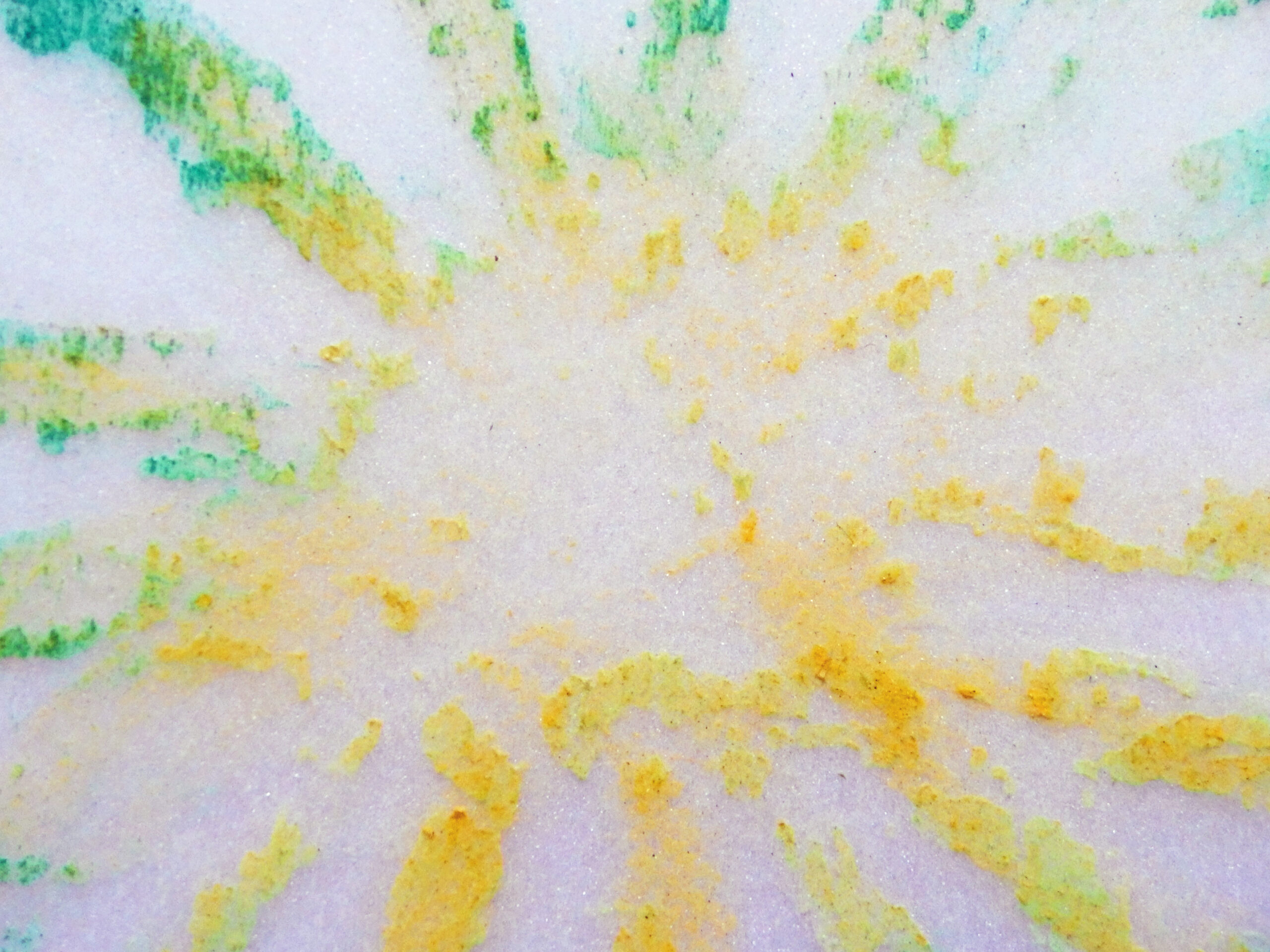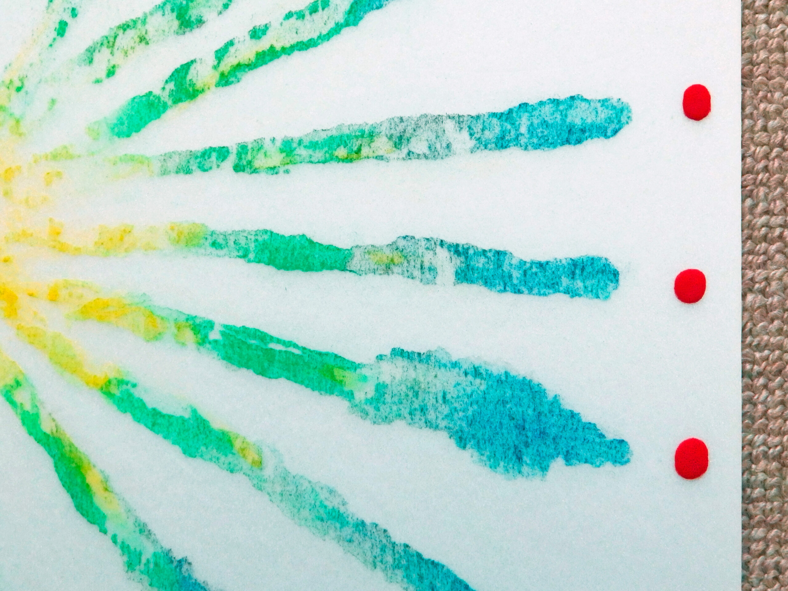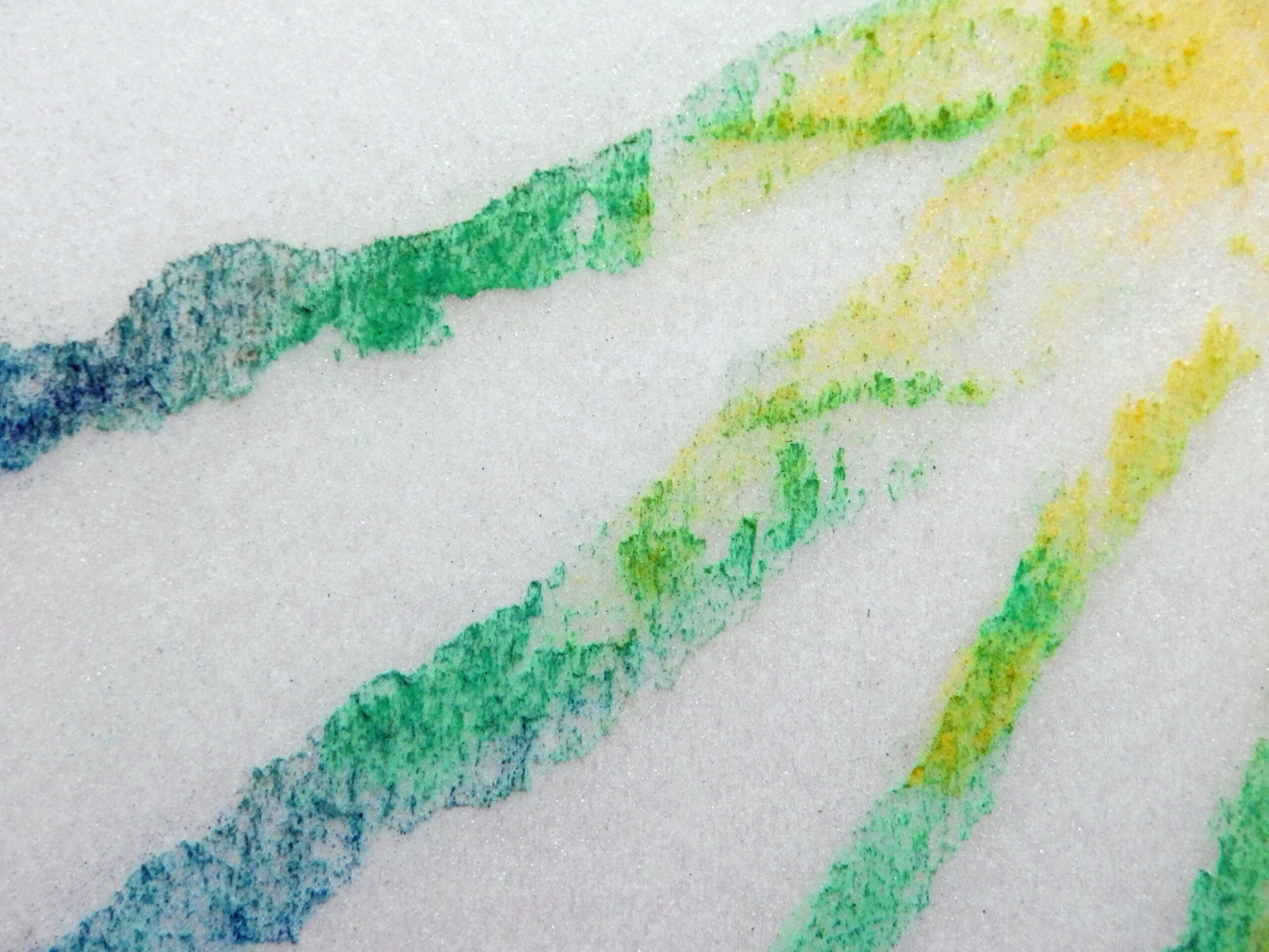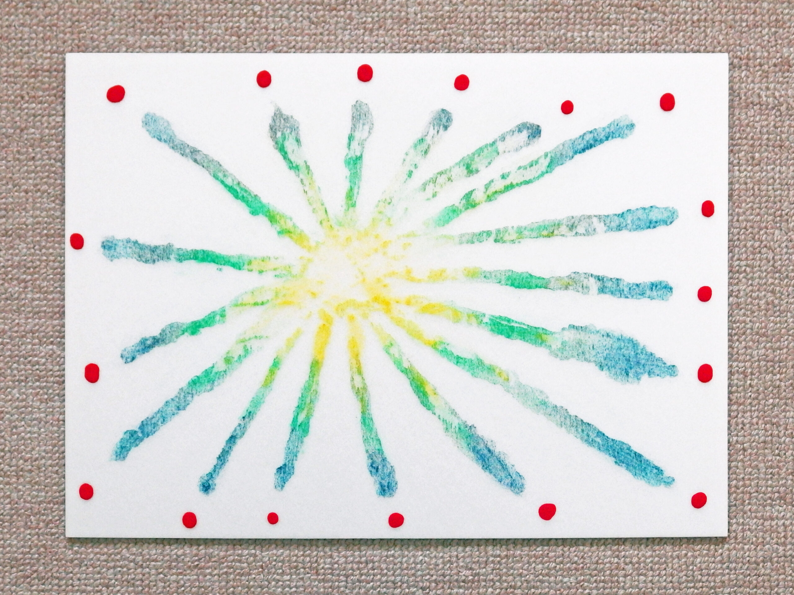 スチレンペーパーという光沢のある真っ白な素材に、岩絵の具自体の美しさが際立ちます。この組み合わせを発見し、気に入って使い続けています。