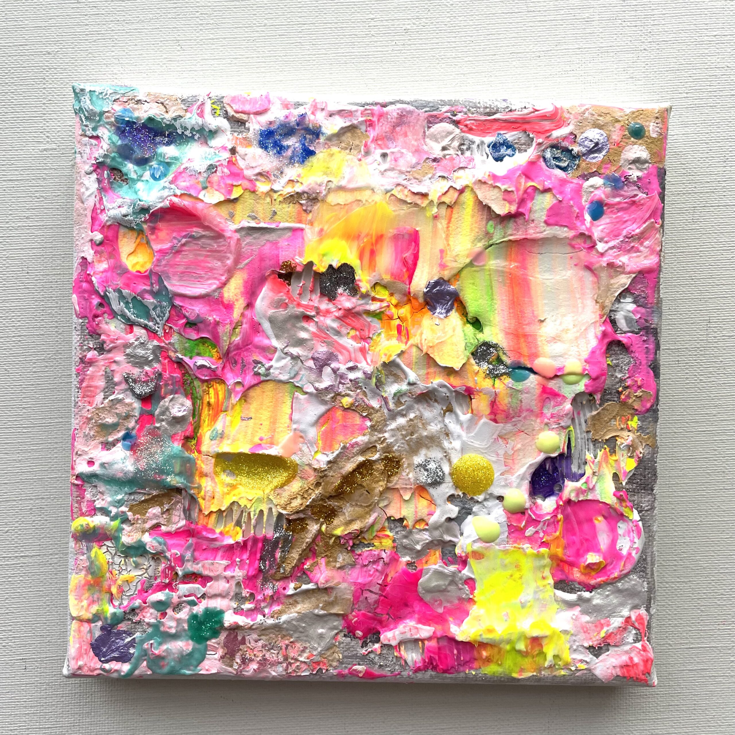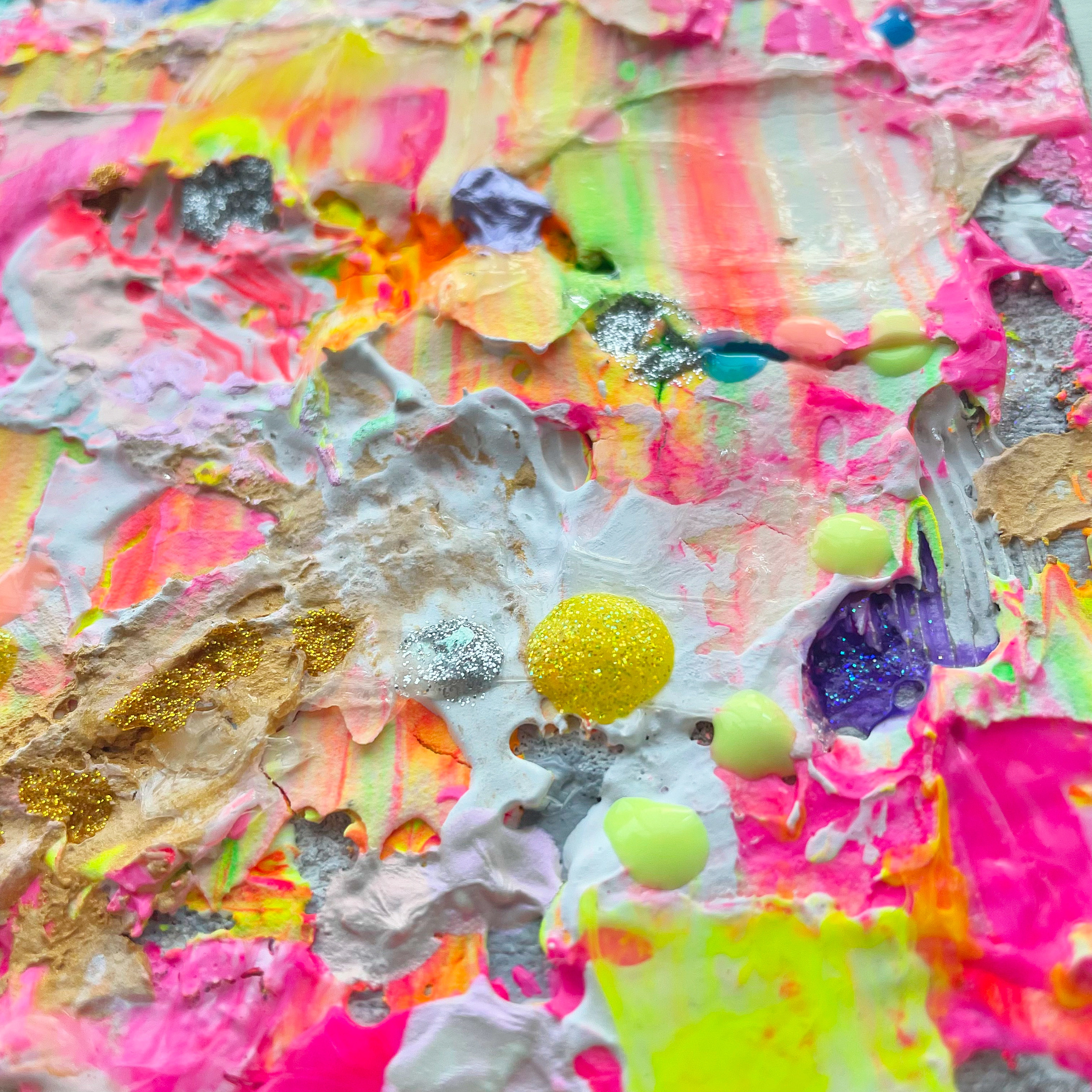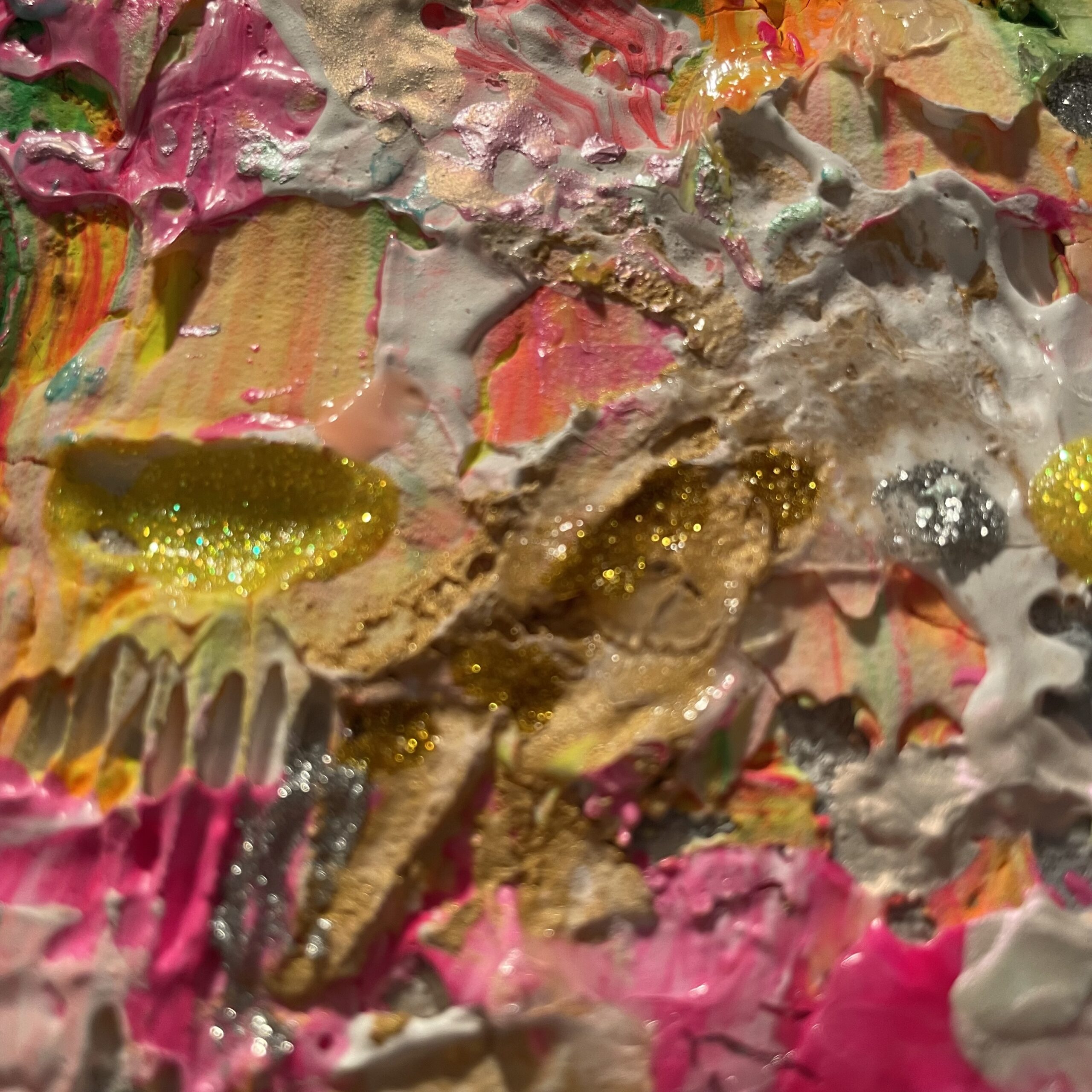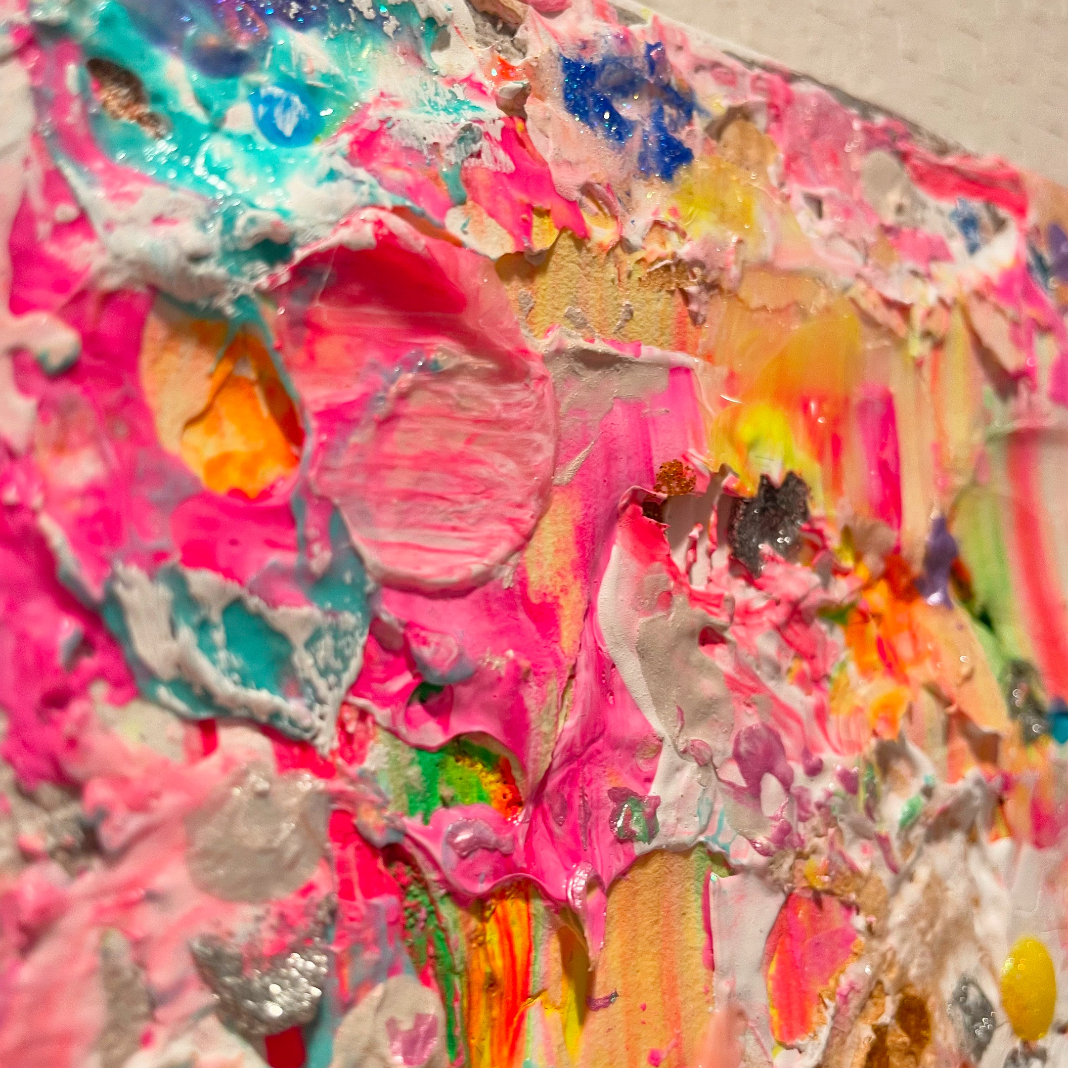 抽象画ですのでお好きなように想像して下さい。自然光と電気光では見え方も違い、テクスチャーがおもしろく、ずーっと観ていても飽きません。
