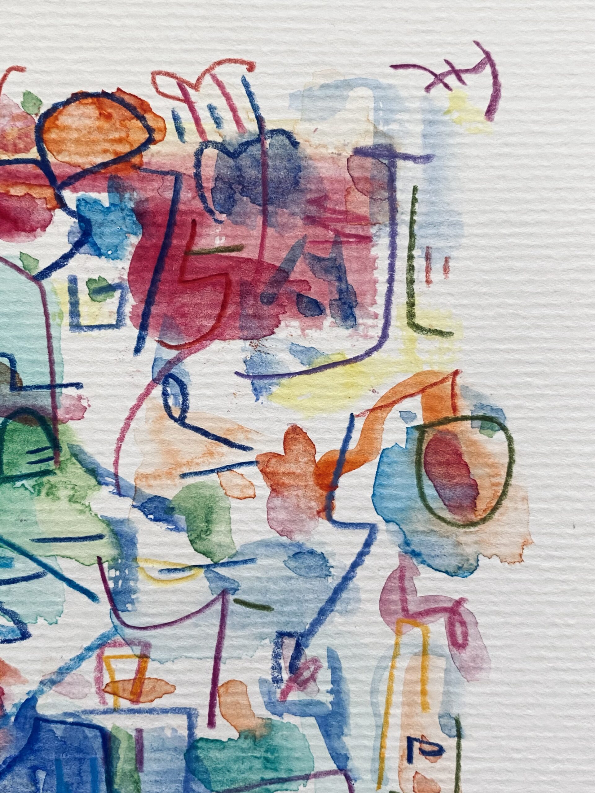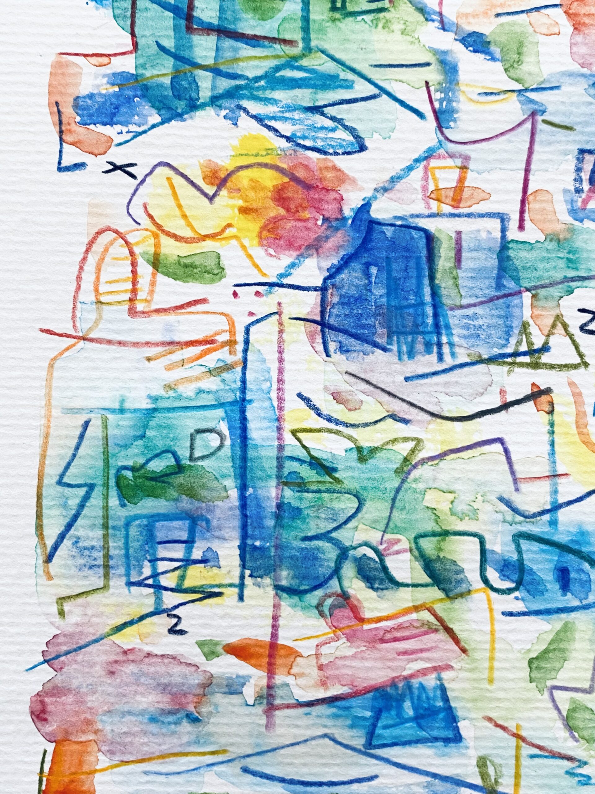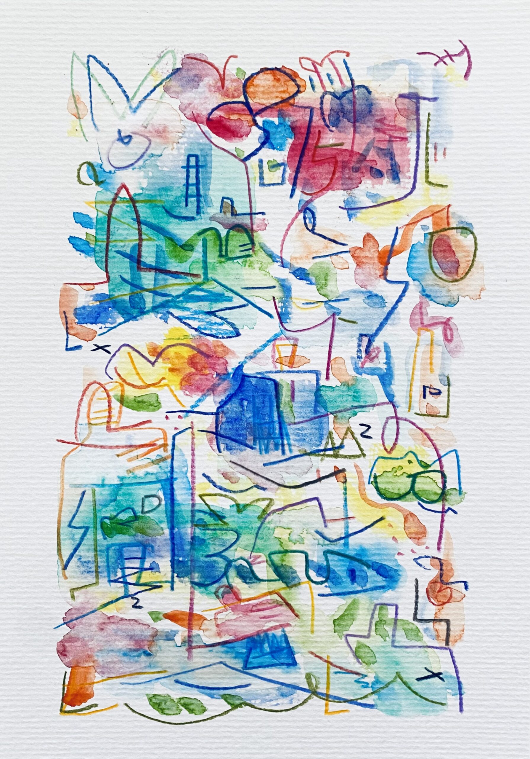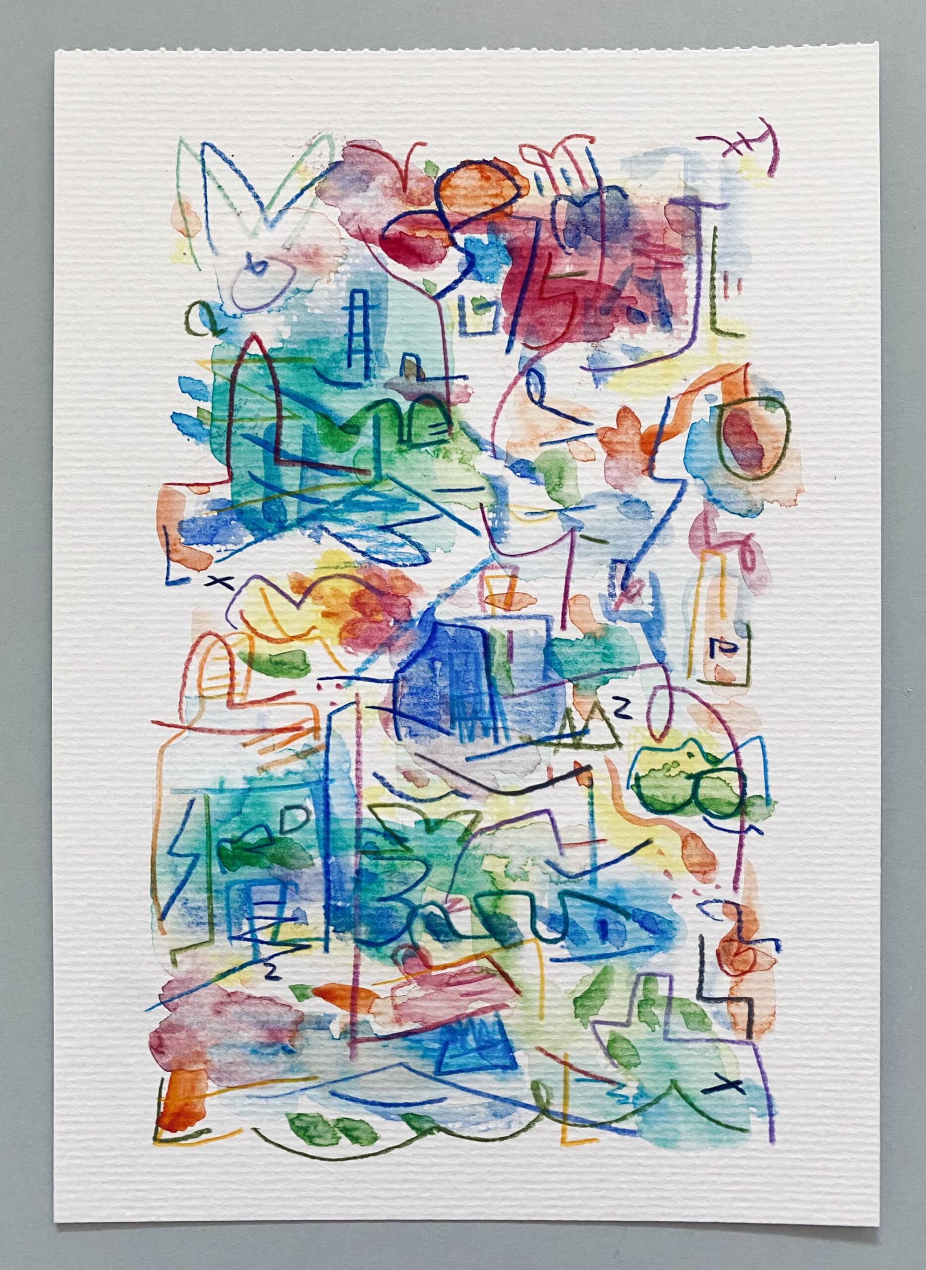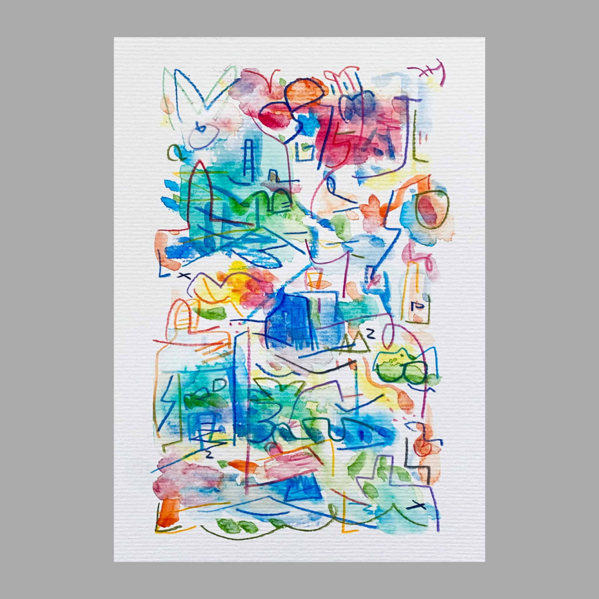 シリーズ作品を除き、タイトルは創作のはじめにあったものではなく、描き終えた時点で観る側となった私が名付けた「仮のタイトル」です。参考にするのも、答え合わせのように楽しむのも、あるいはまったく無視するのも自由です。抽象表現の色や形に意味を見出す手がかりは、あなたの記憶や経験のなかにしかありません。最終的な作品は観るかたの中で完成すべきものだと考えています。思い思いに想像の翼を羽ばたかせ、作品に新しい解釈を加えていただくことを望みます。