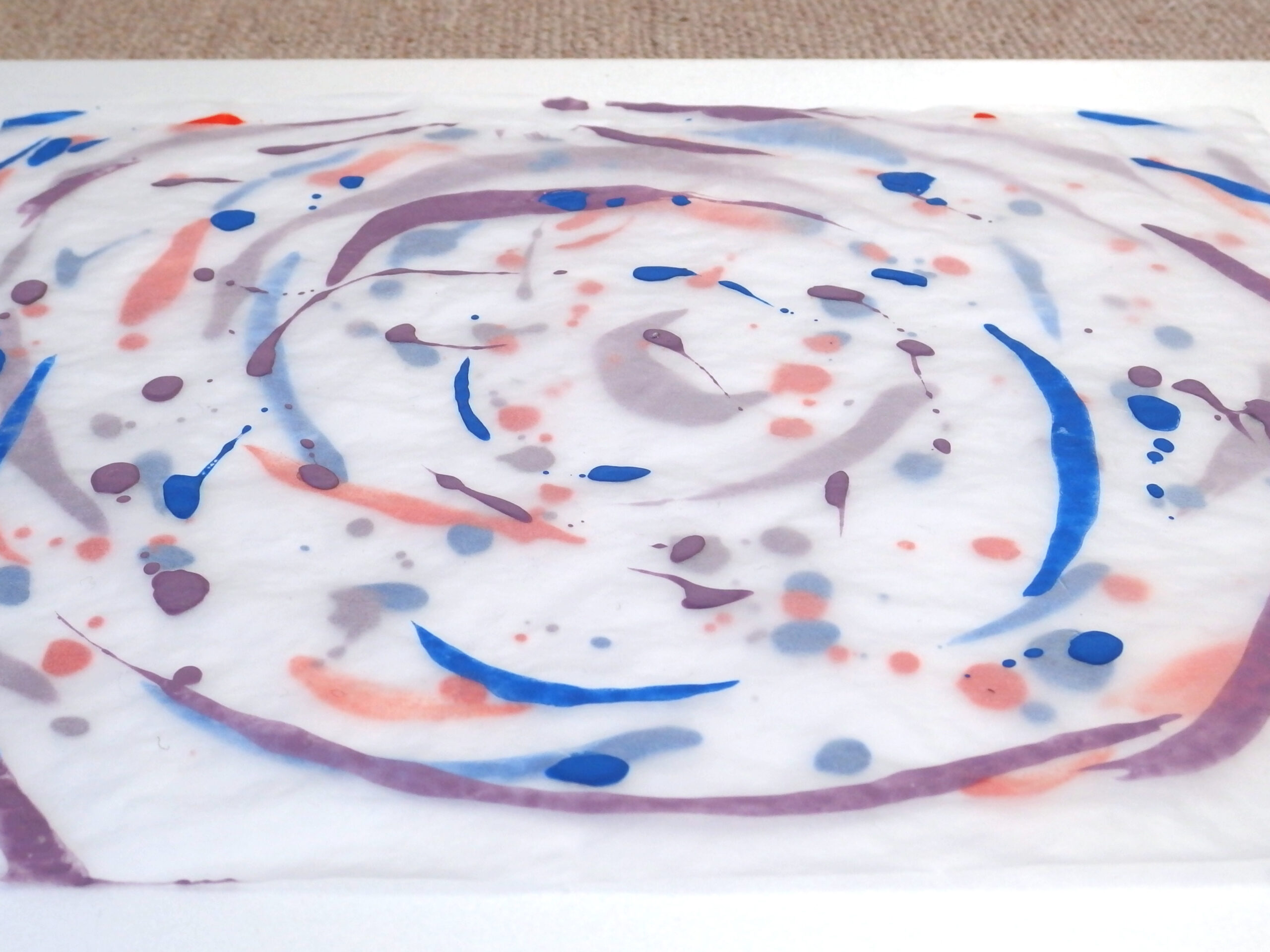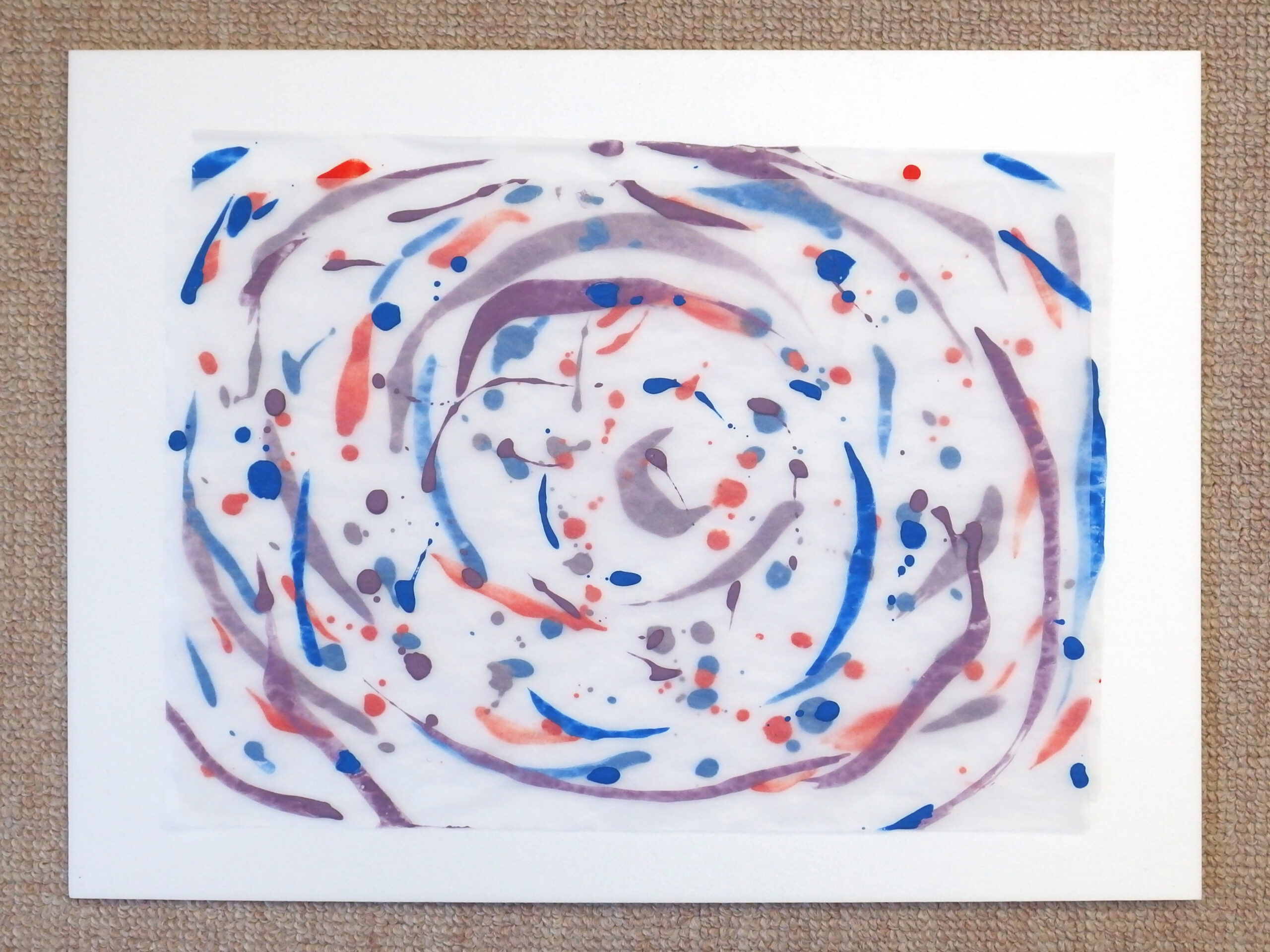 スチレンペーパーという光沢のある真っ白な素材に、岩絵の具自体の美しさが際立ちます。この組み合わせを発見し、気に入って使い続けています。