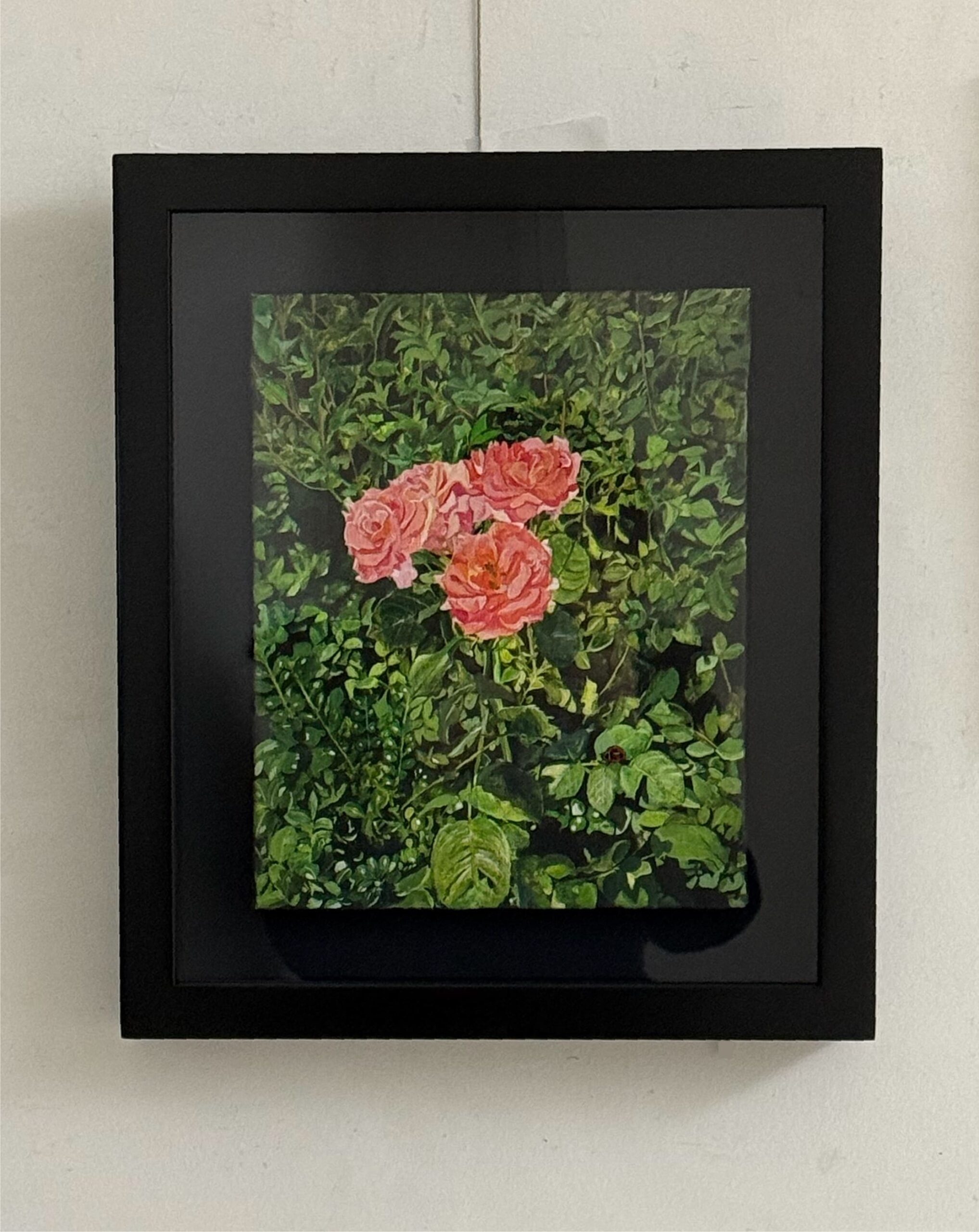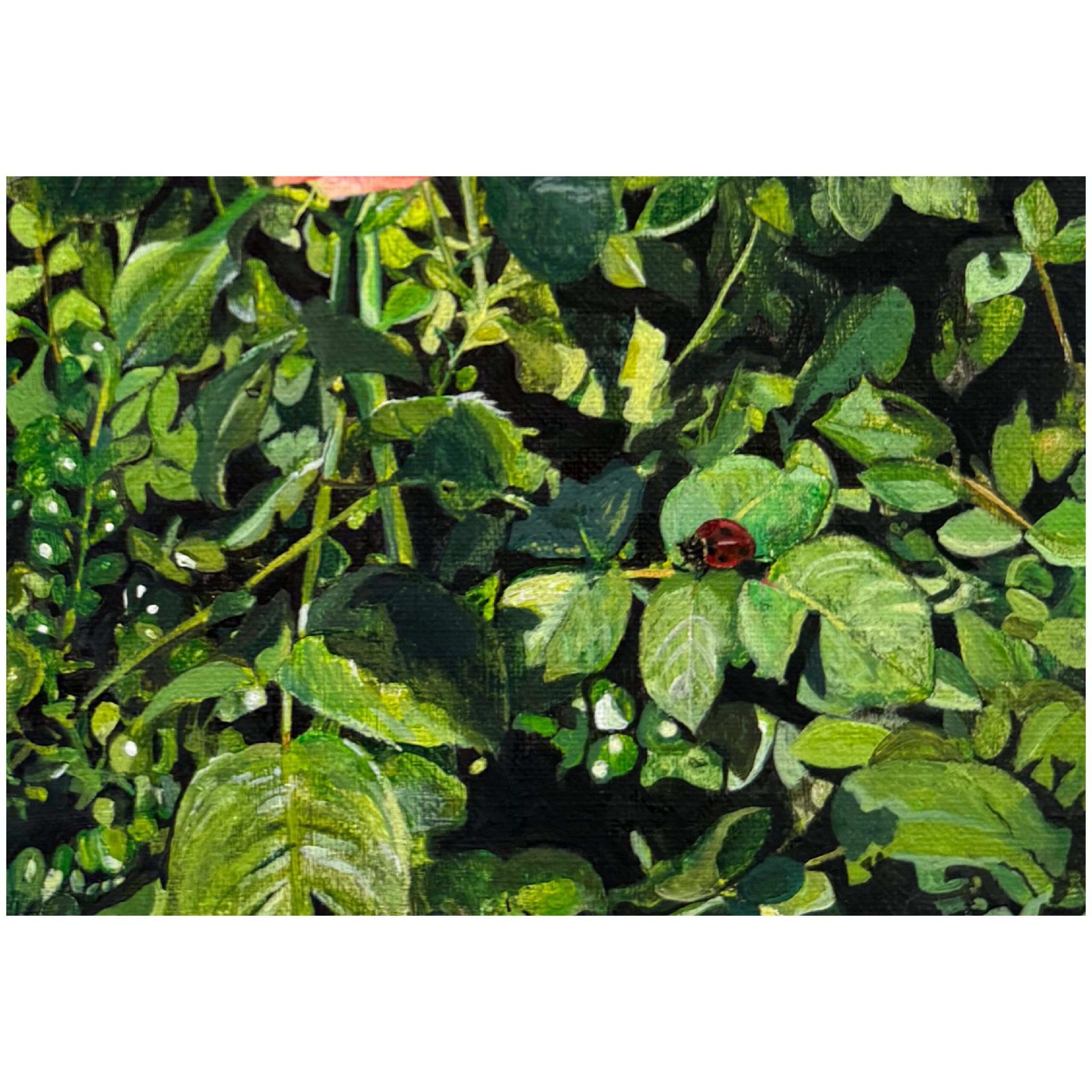 薔薇の花と てんとう虫を描きました。