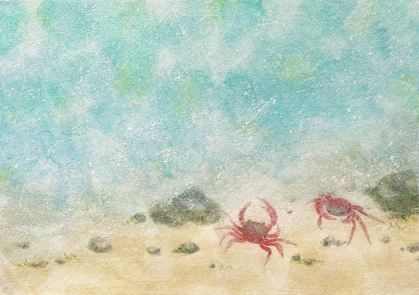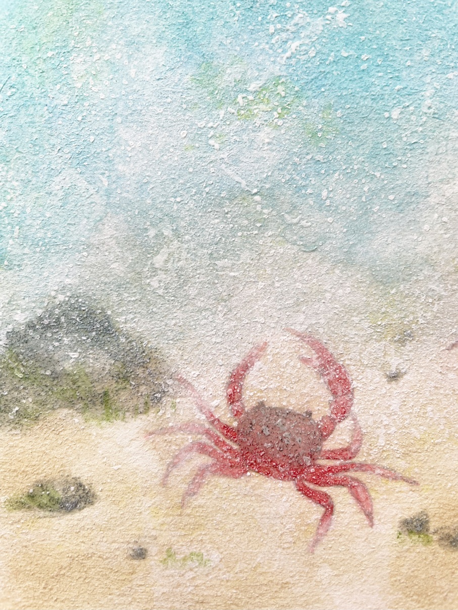 涼やかな水の音を聞きながら、穏やかに過ごす時間をイメージしました。小さいカニさん可愛いですね。