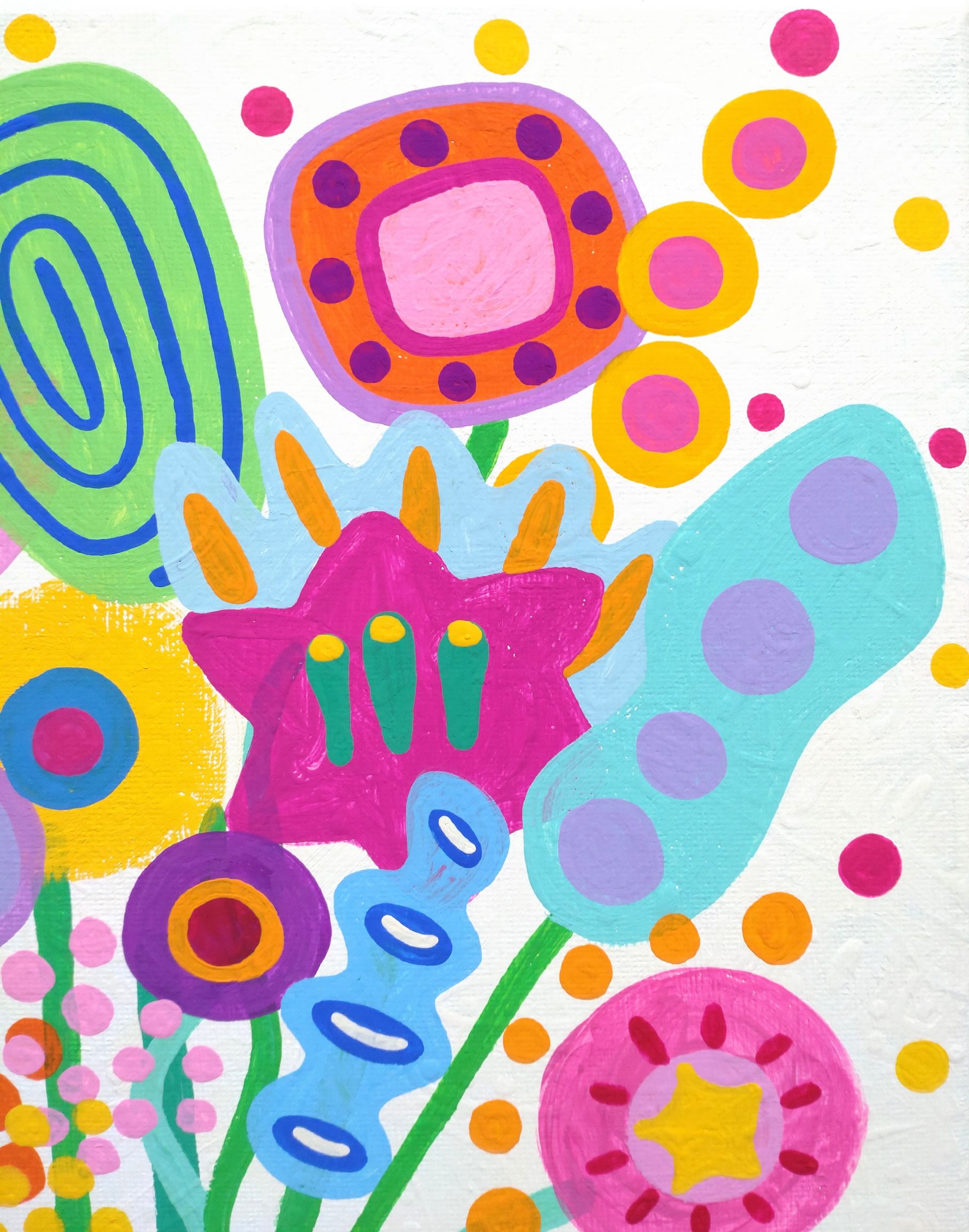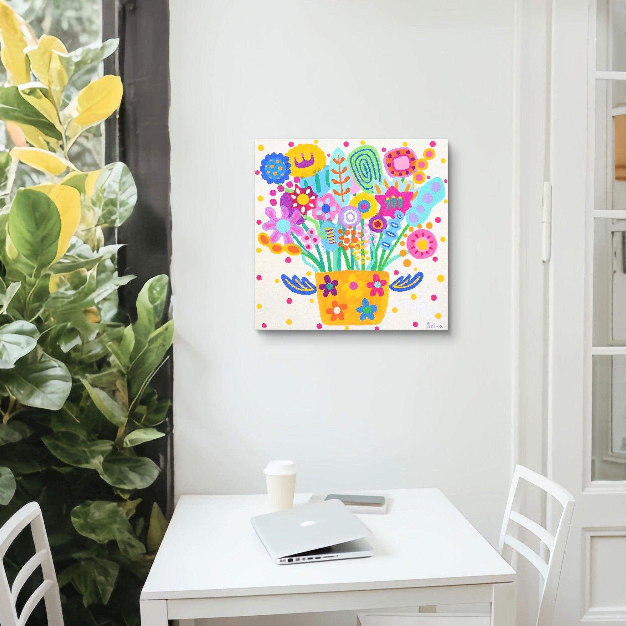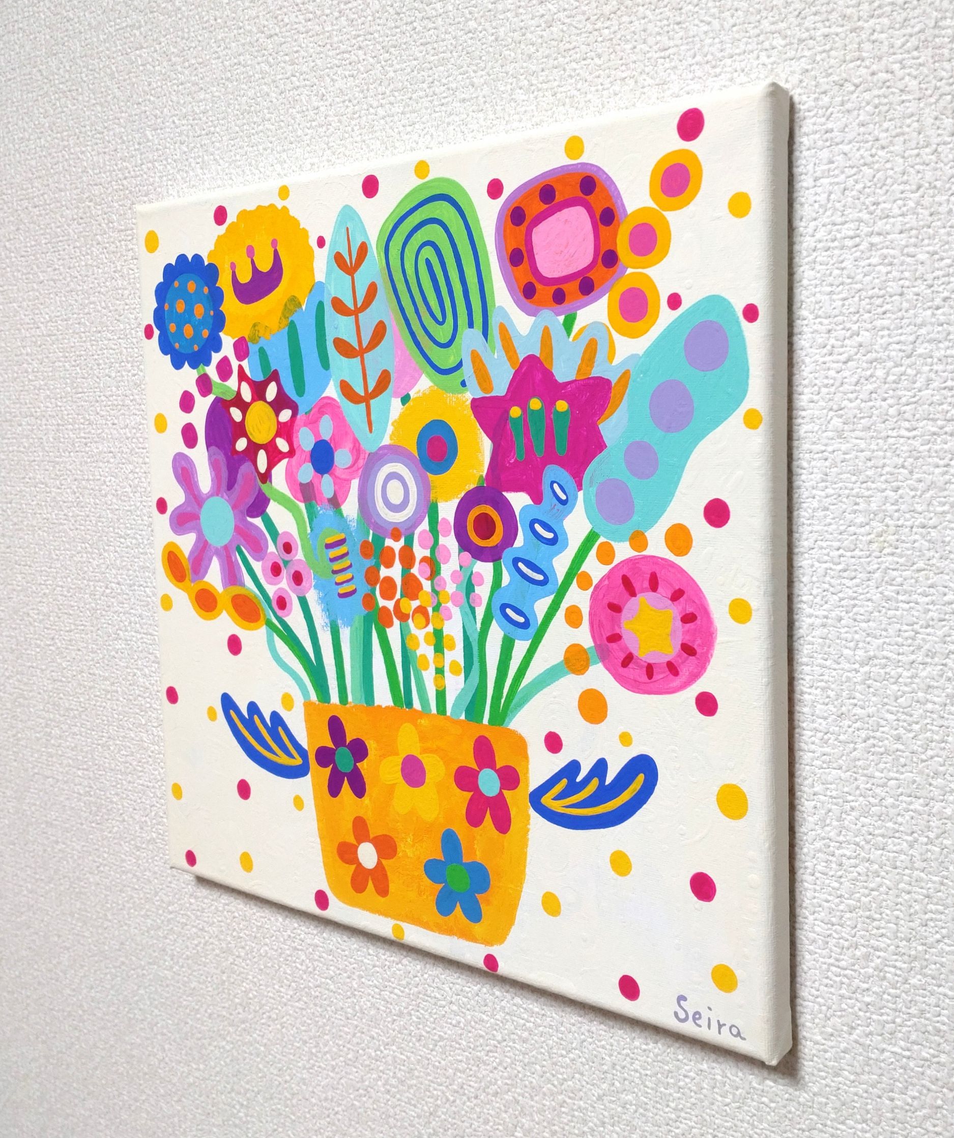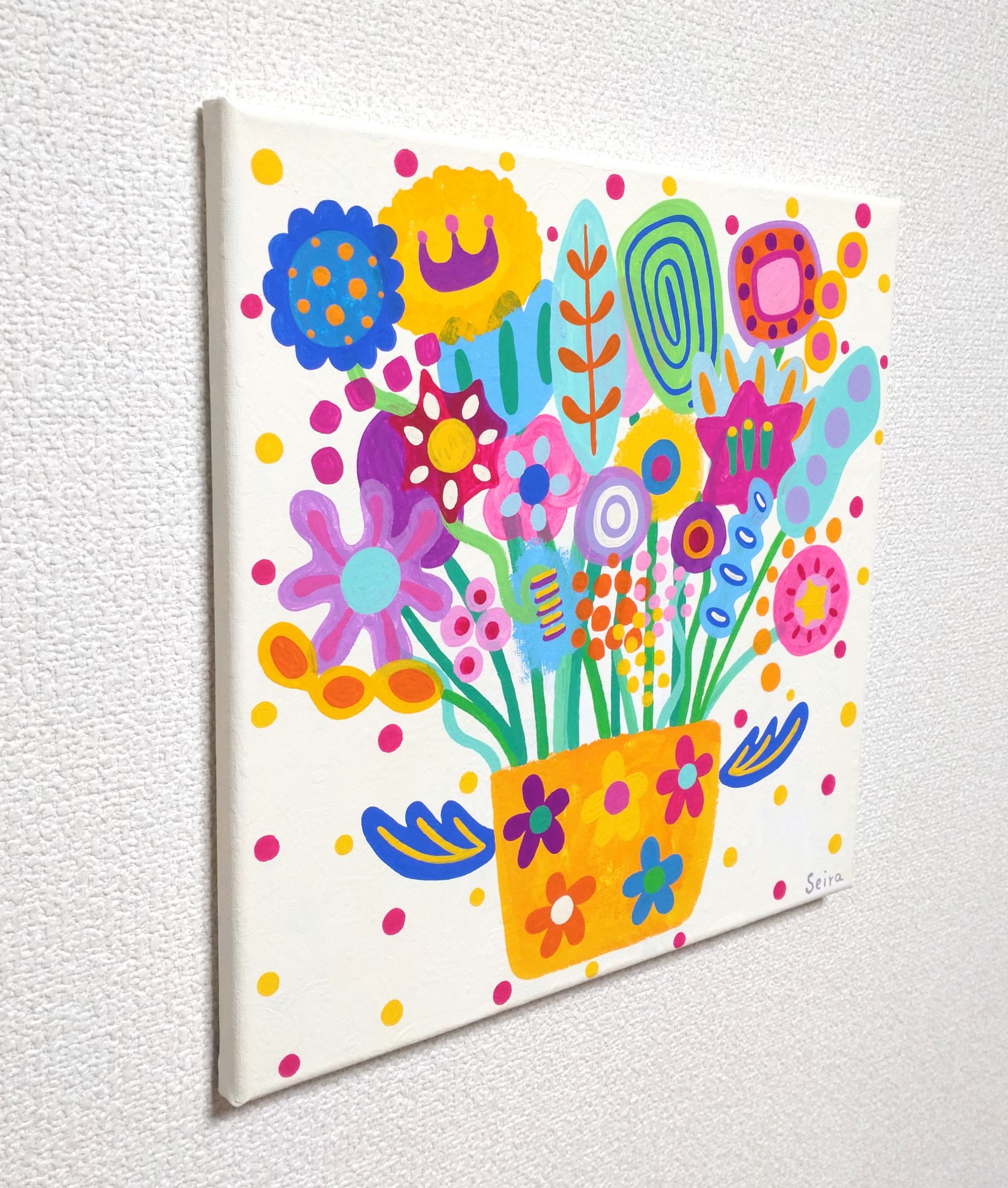 カラフルな作品をお探しの方、お花の絵をお探しの方、お部屋のアクセントになる作品をお探しの方、ギフトアートをお探しの方におススメです。