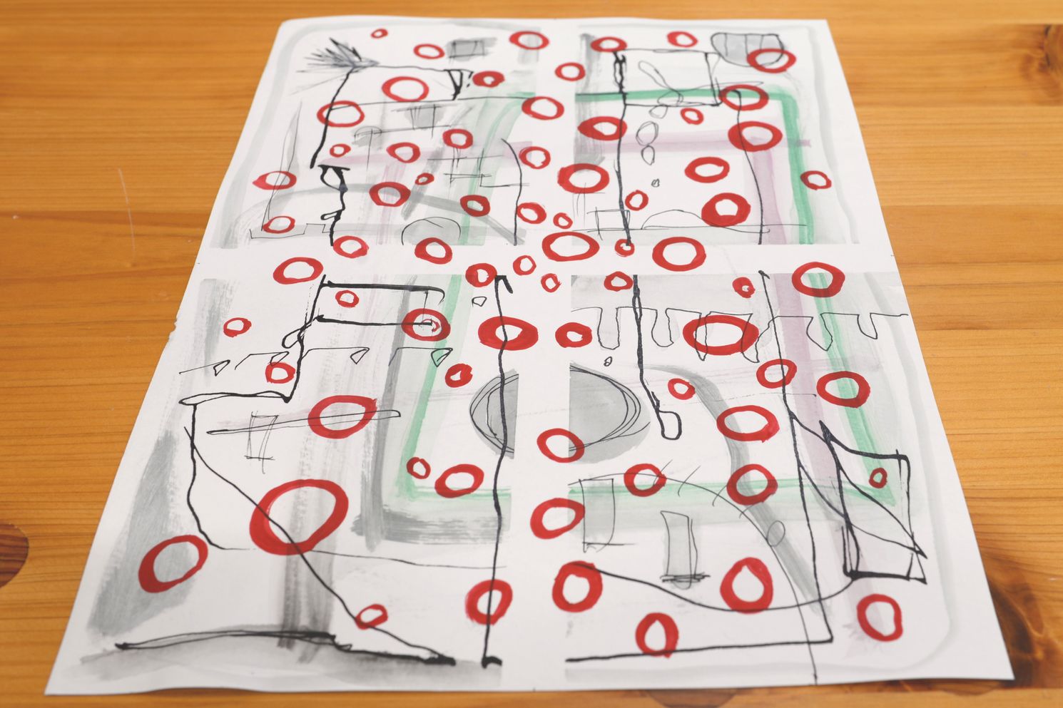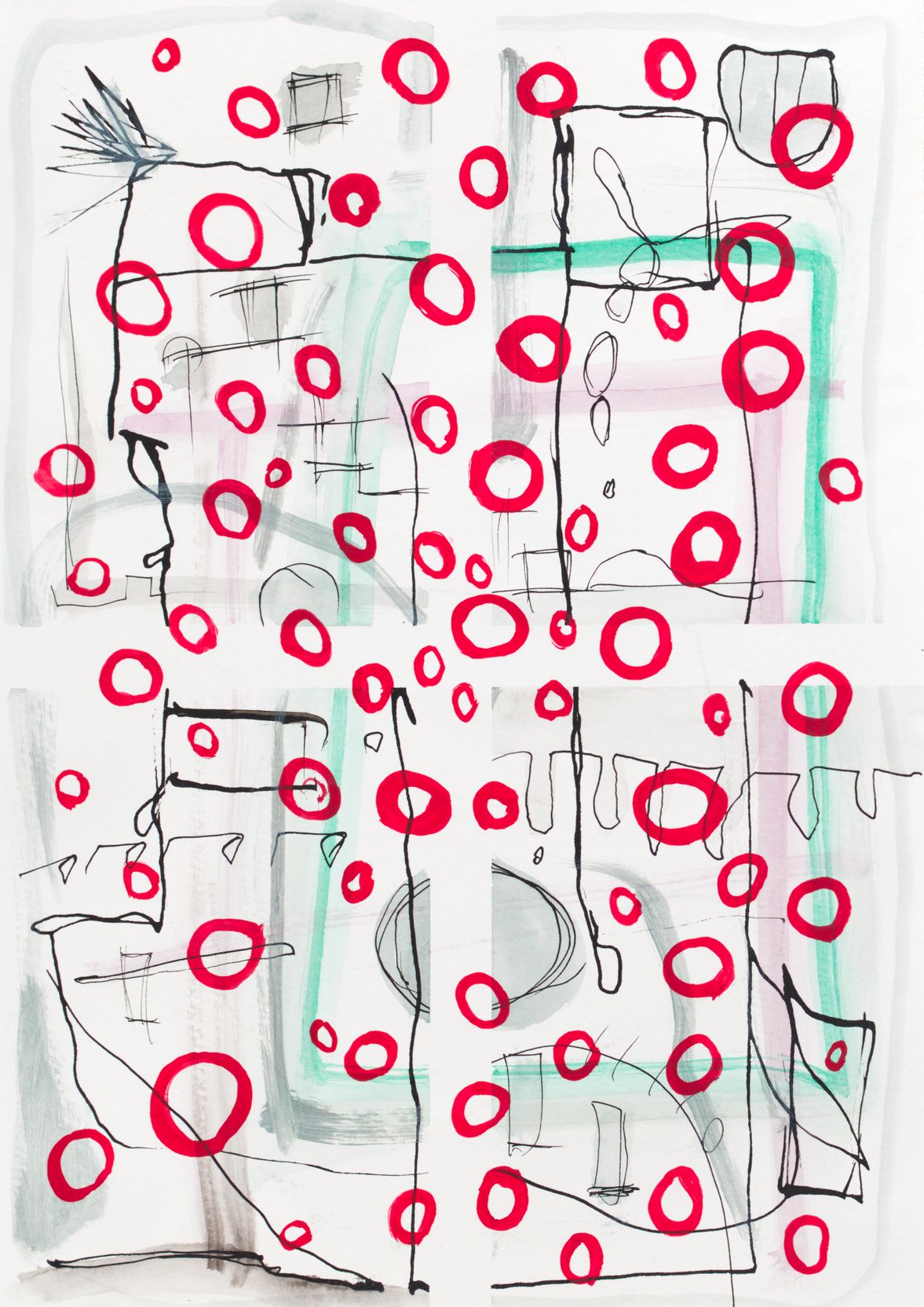 画用紙にアクリル絵の具(筆やペンを使用)で描いた、surreal(超現実的)シリーズです。