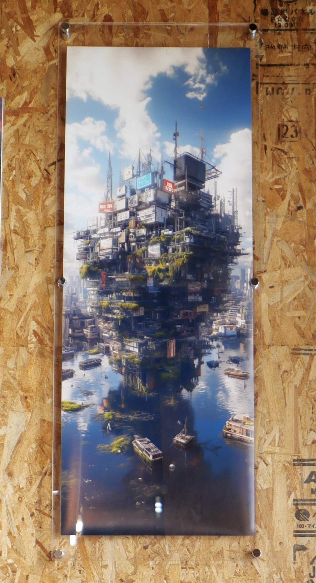 生成AIサービスMidjourneyをツールとして利用して作成された作品。2025年、兵庫県の廃墟カフェRUINSへ本作品を含め期間展示した際のメインアート。変形サイズで迫力のある表現を、アクリル額の透明感と共に。