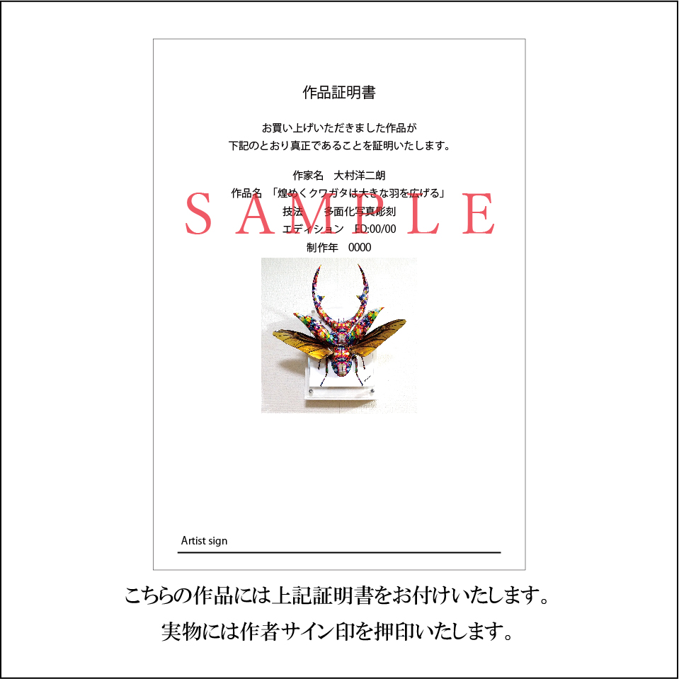 こちらの作品には作品証明書を付け添えております。