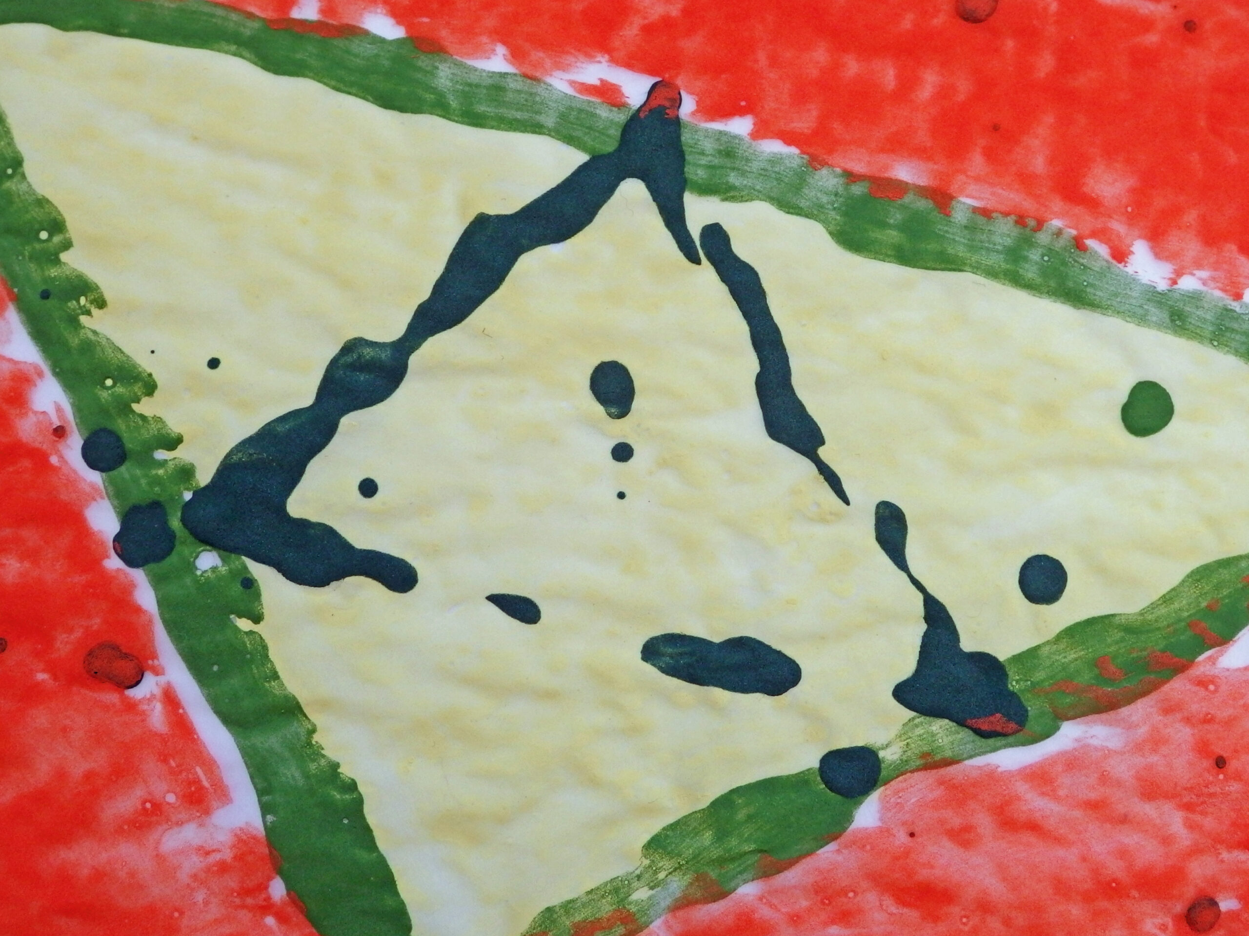 スチレンペーパーという光沢のある真っ白な素材に、岩絵の具自体の美しさが際立ちます。この組み合わせを発見し、気に入って使い続けています。
