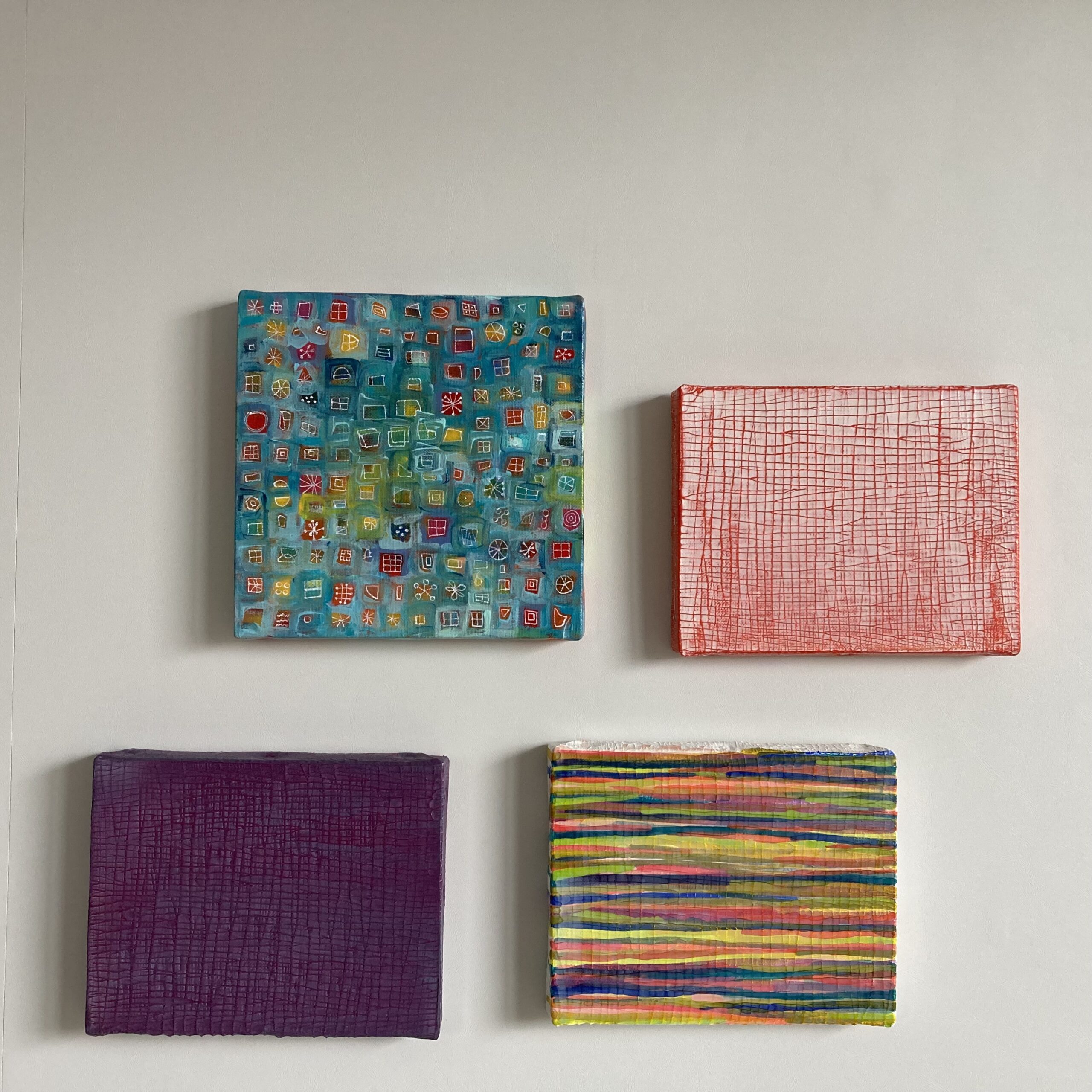 オイルパステル、日本画絵具なども使用するミクストメディア作品もあります。