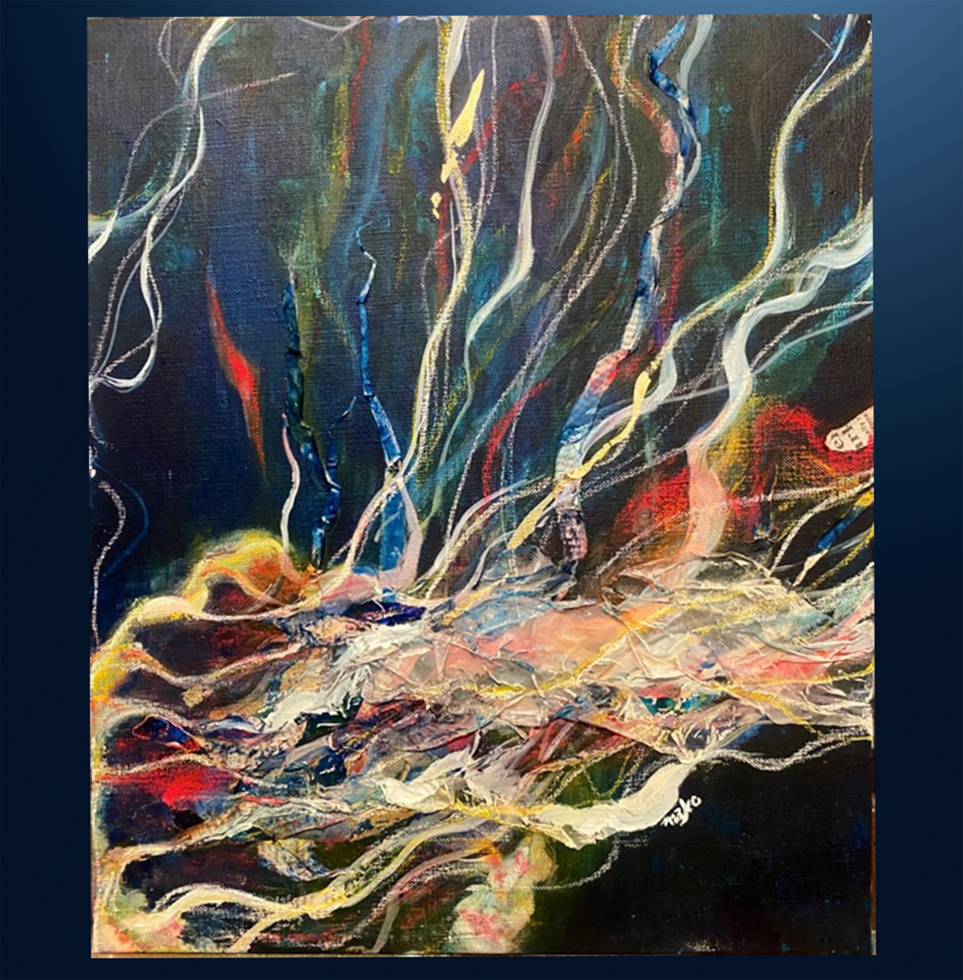 穏やかな色彩と流れるラインが、見る人をゆったりとした水中の世界へ誘います。