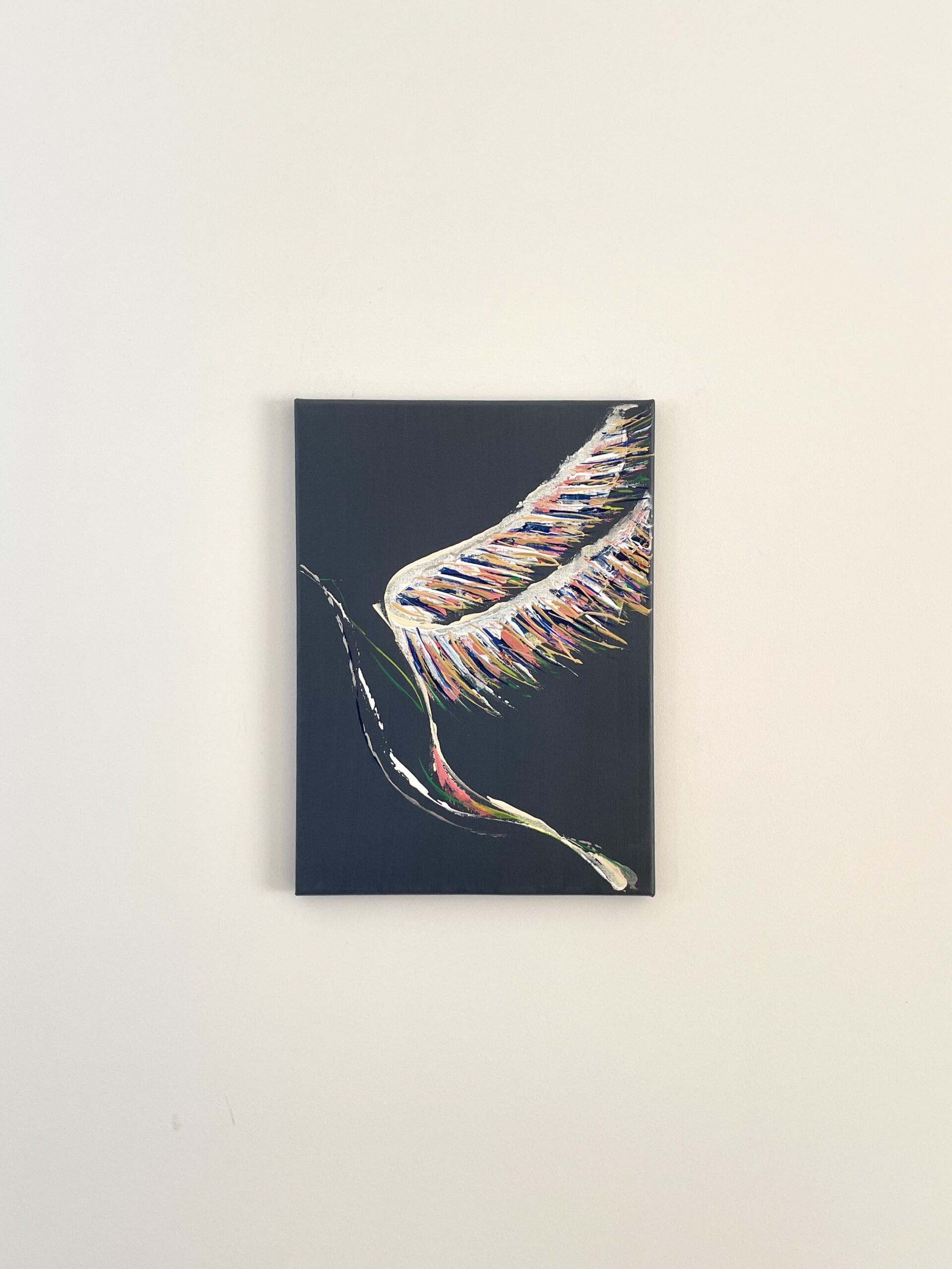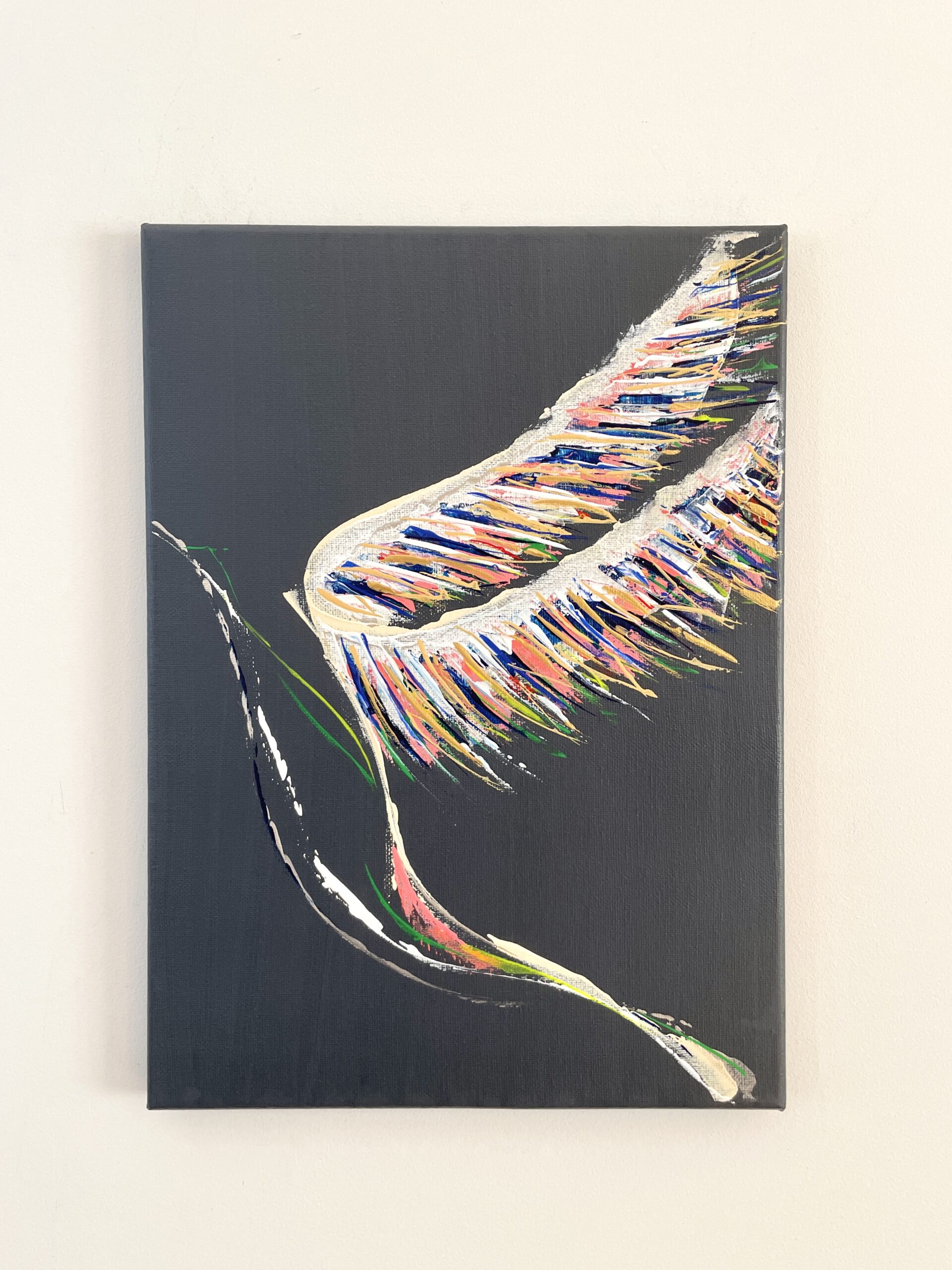 妻に「絵でも描いたら」と言われたことがきっかけで2022年にぽつりぽつりと絵を描き始め、以降完全独学にて作品を作り続ける。