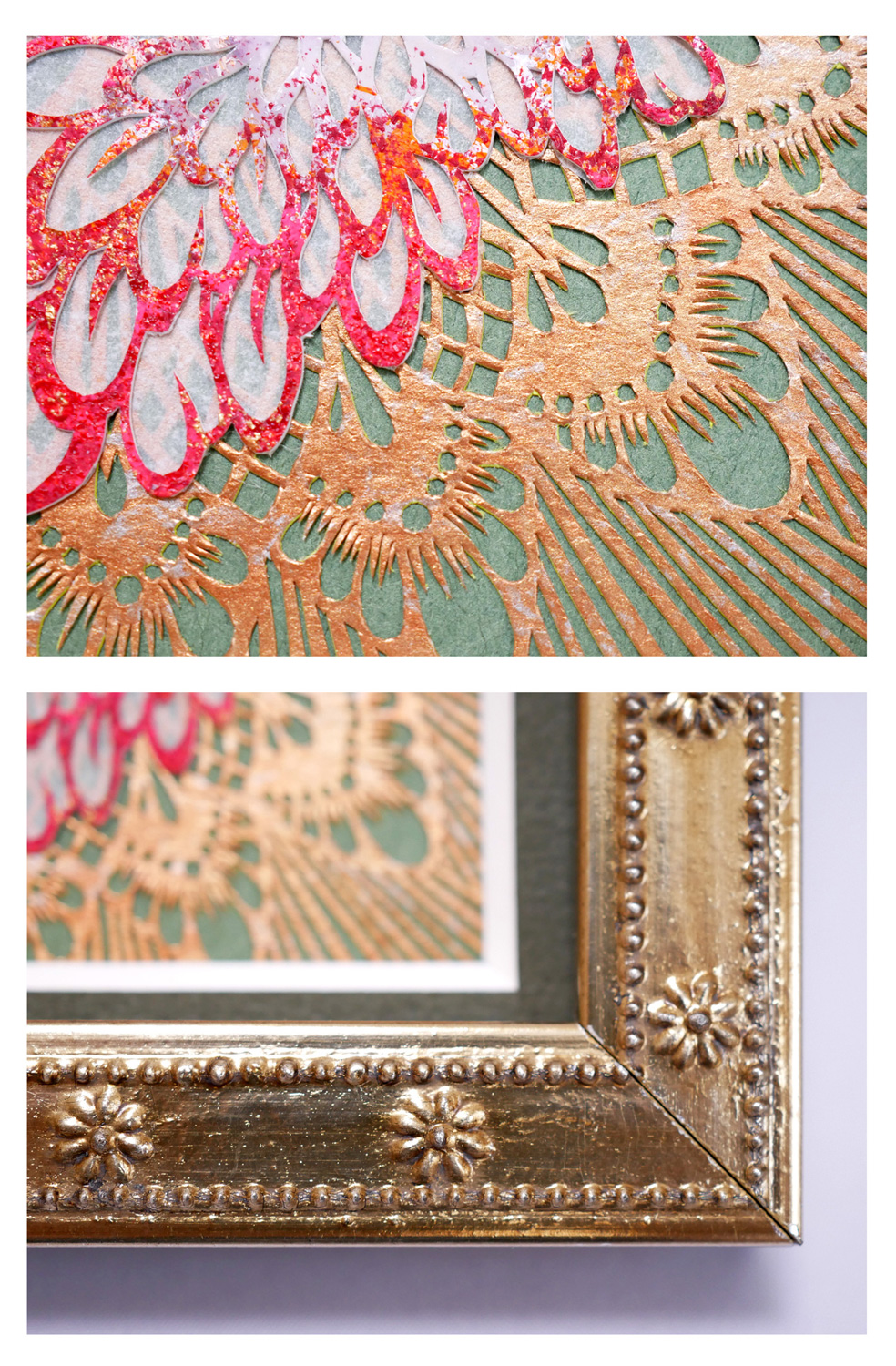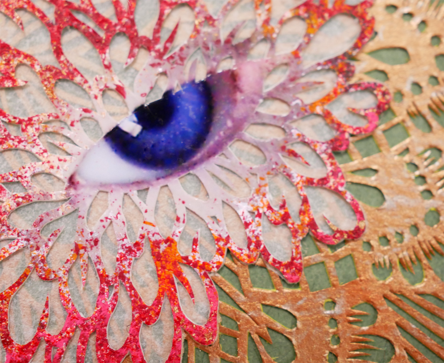 背景の曼荼羅模様も手描きの模様を切り抜いてあります。