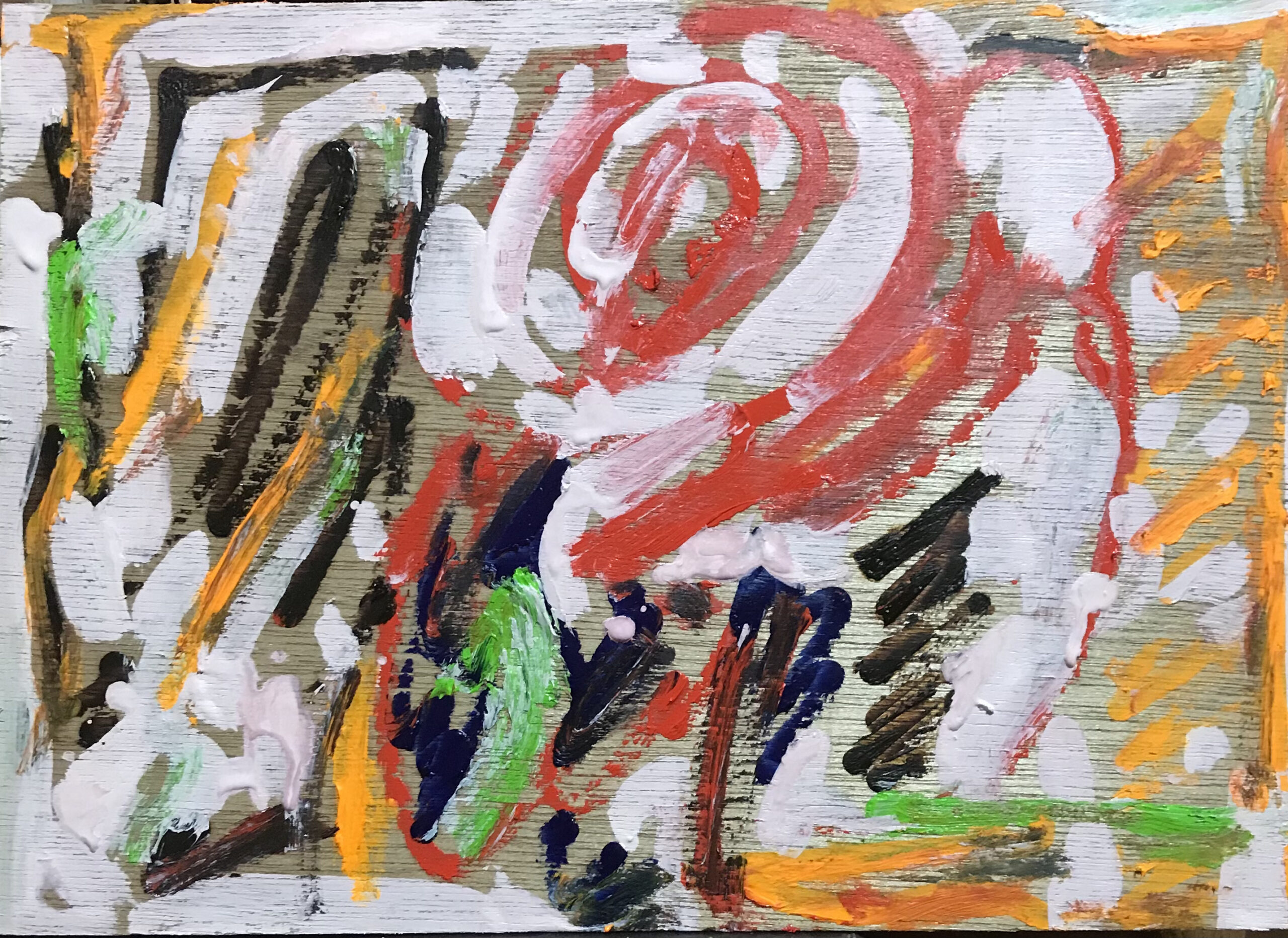 写真パネルの裏あてに油絵具アクリル絵の具にて製作。