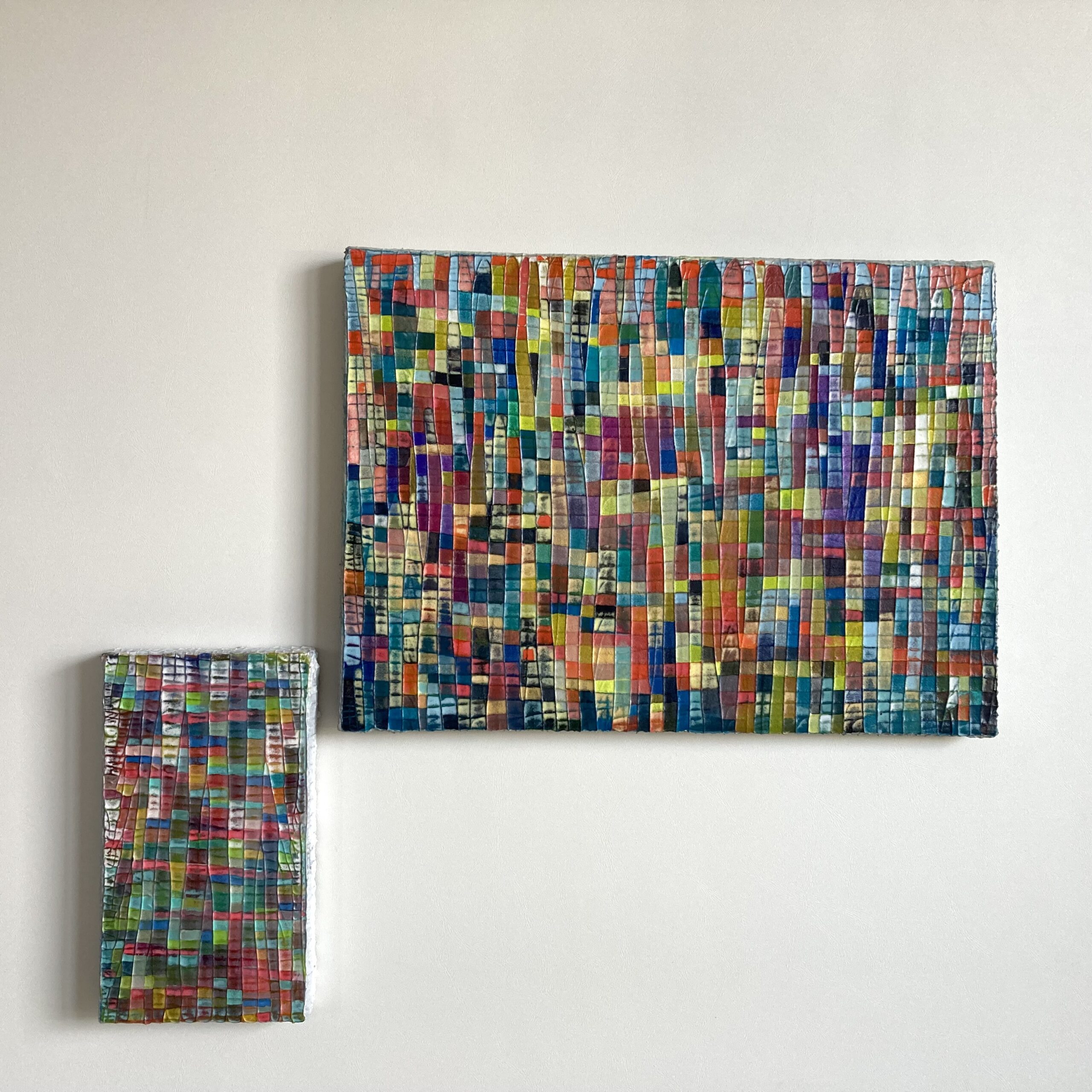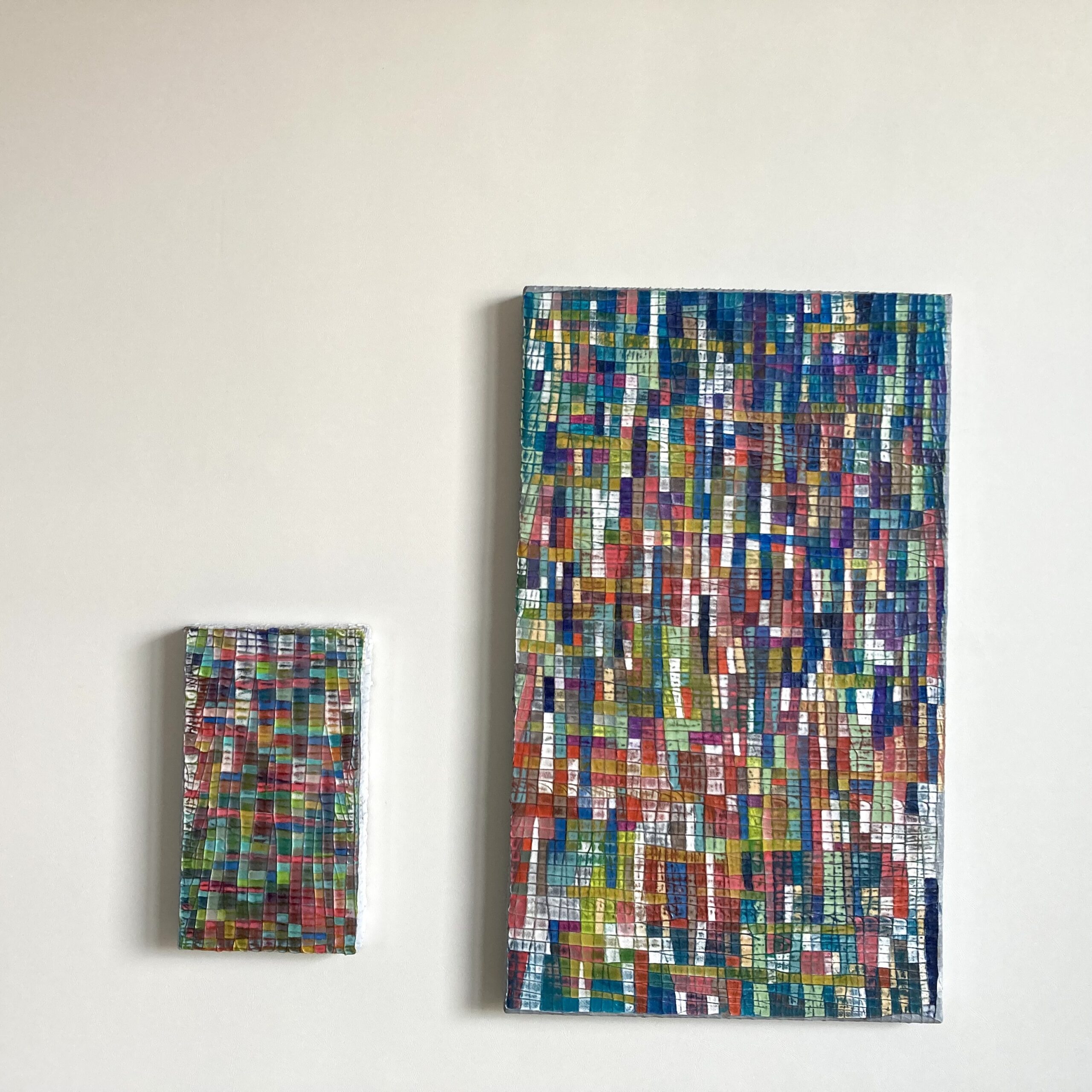 オイルパステル、日本画絵具なども使用するミクストメディア作品もあります。