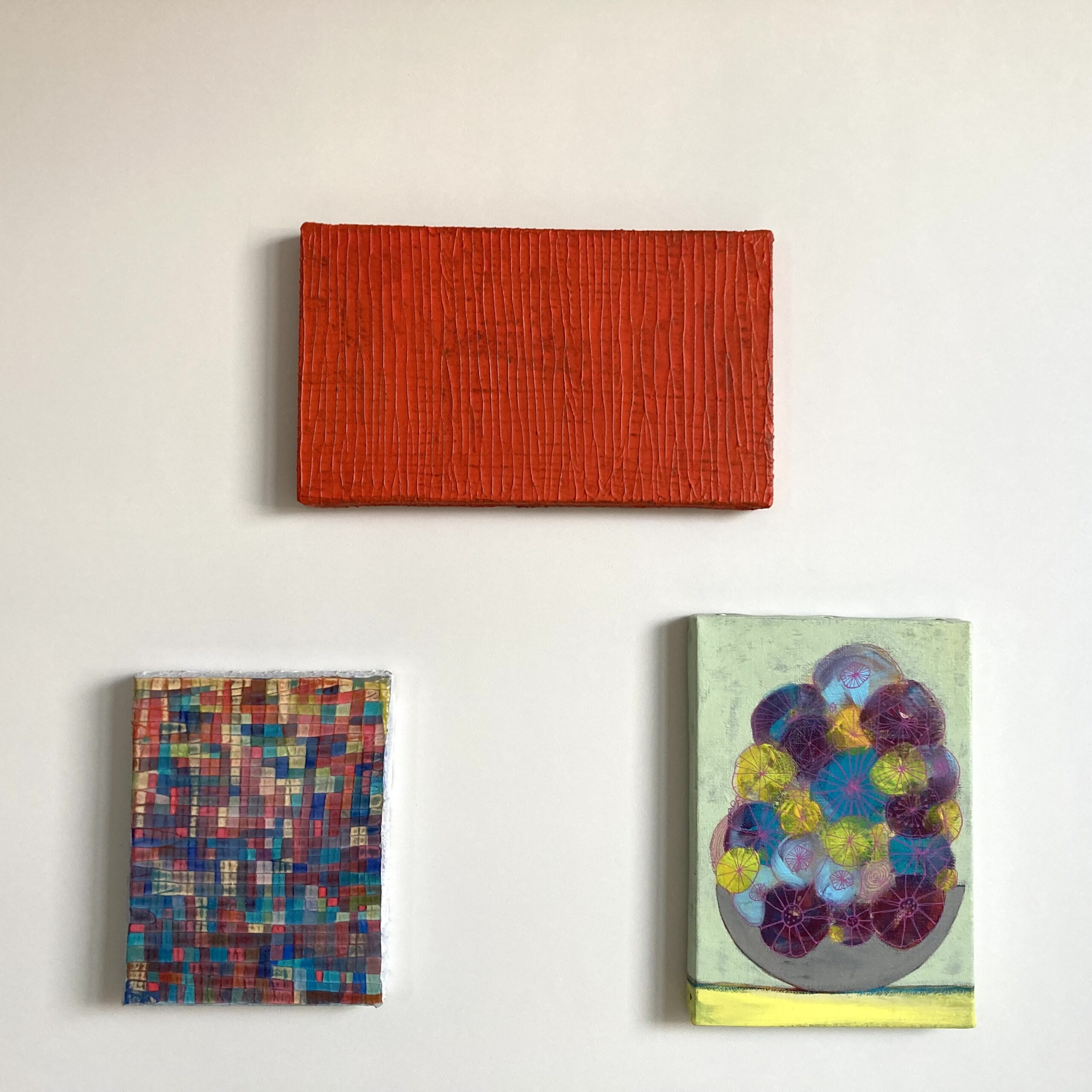 オイルパステル、日本画絵具なども使用するミクストメディア作品もあります。