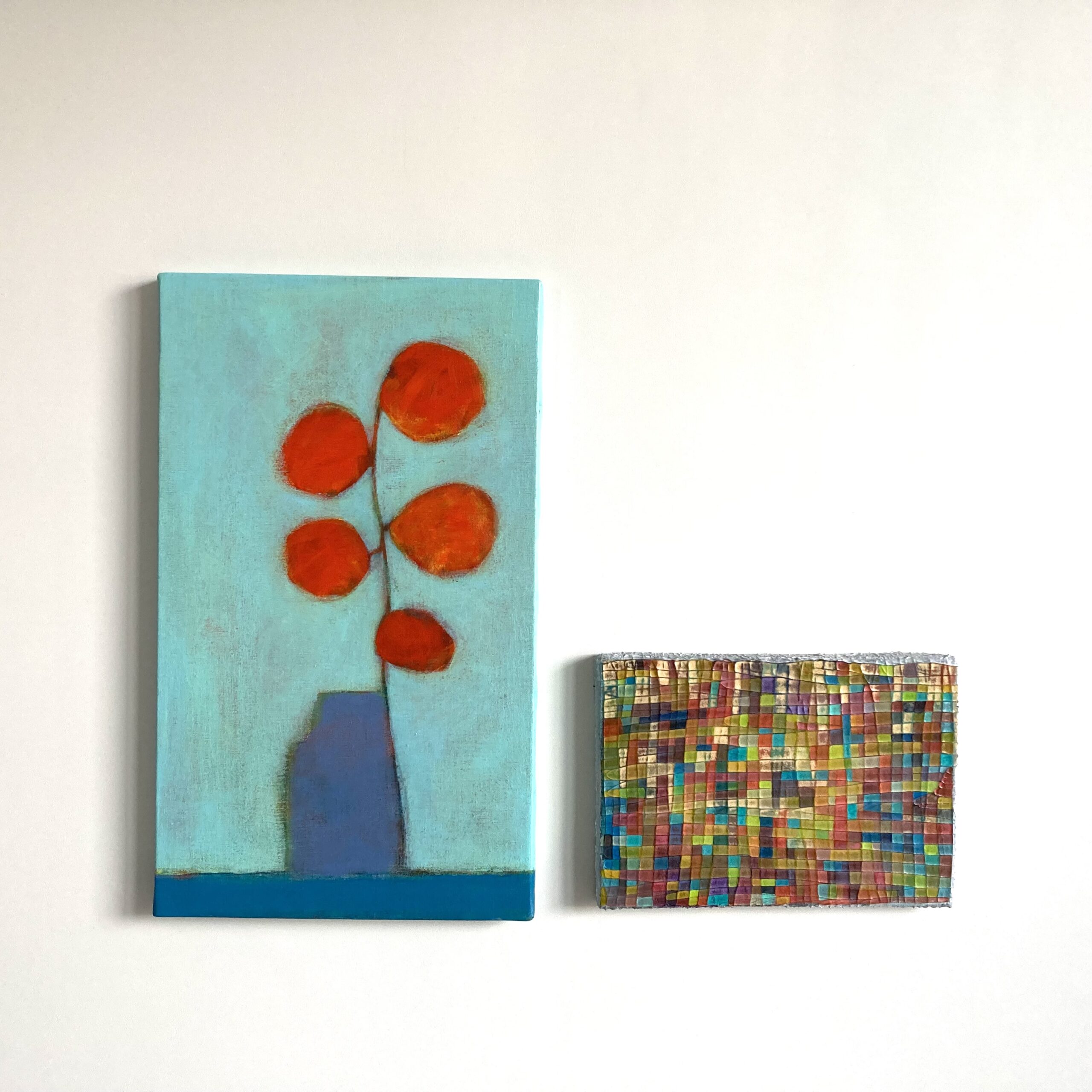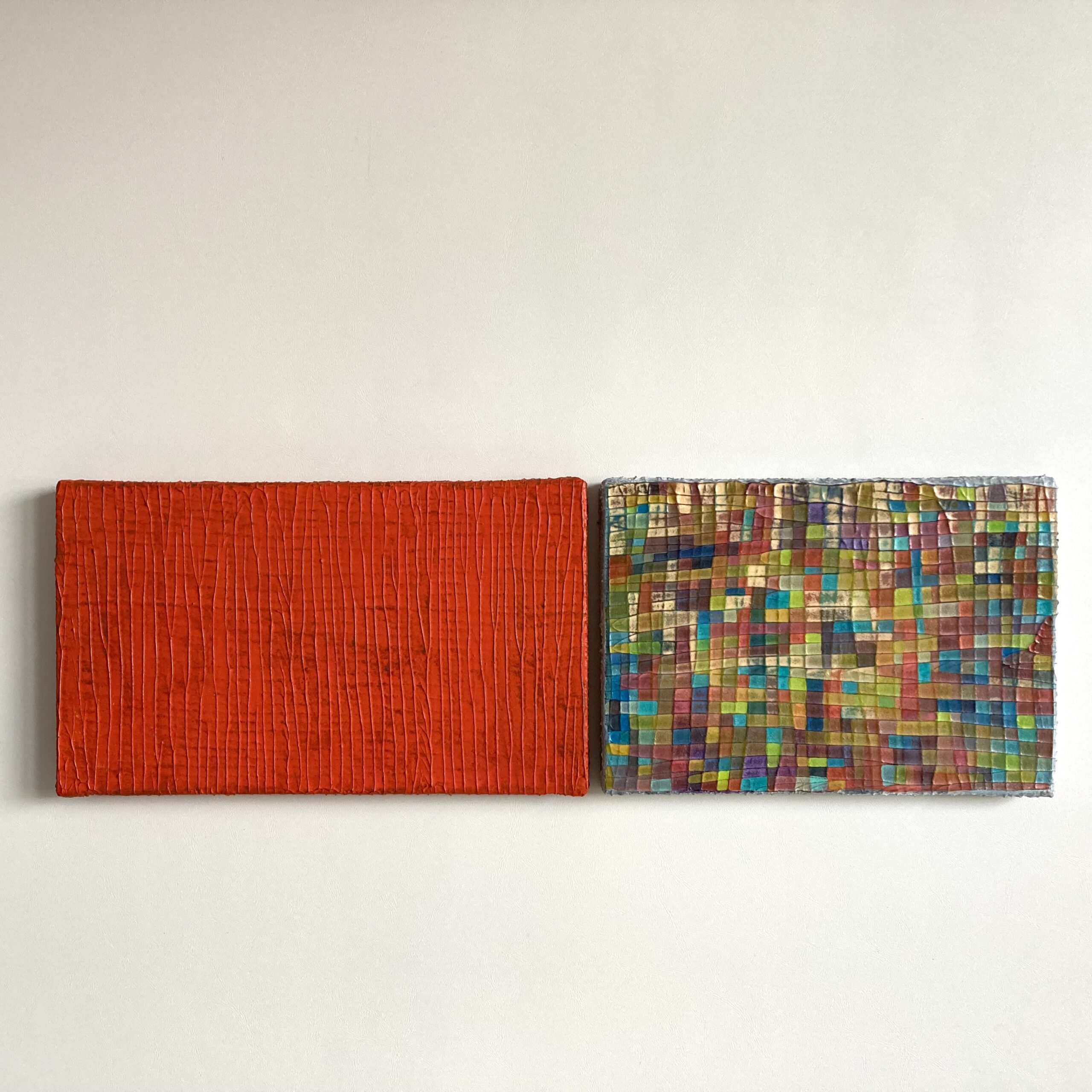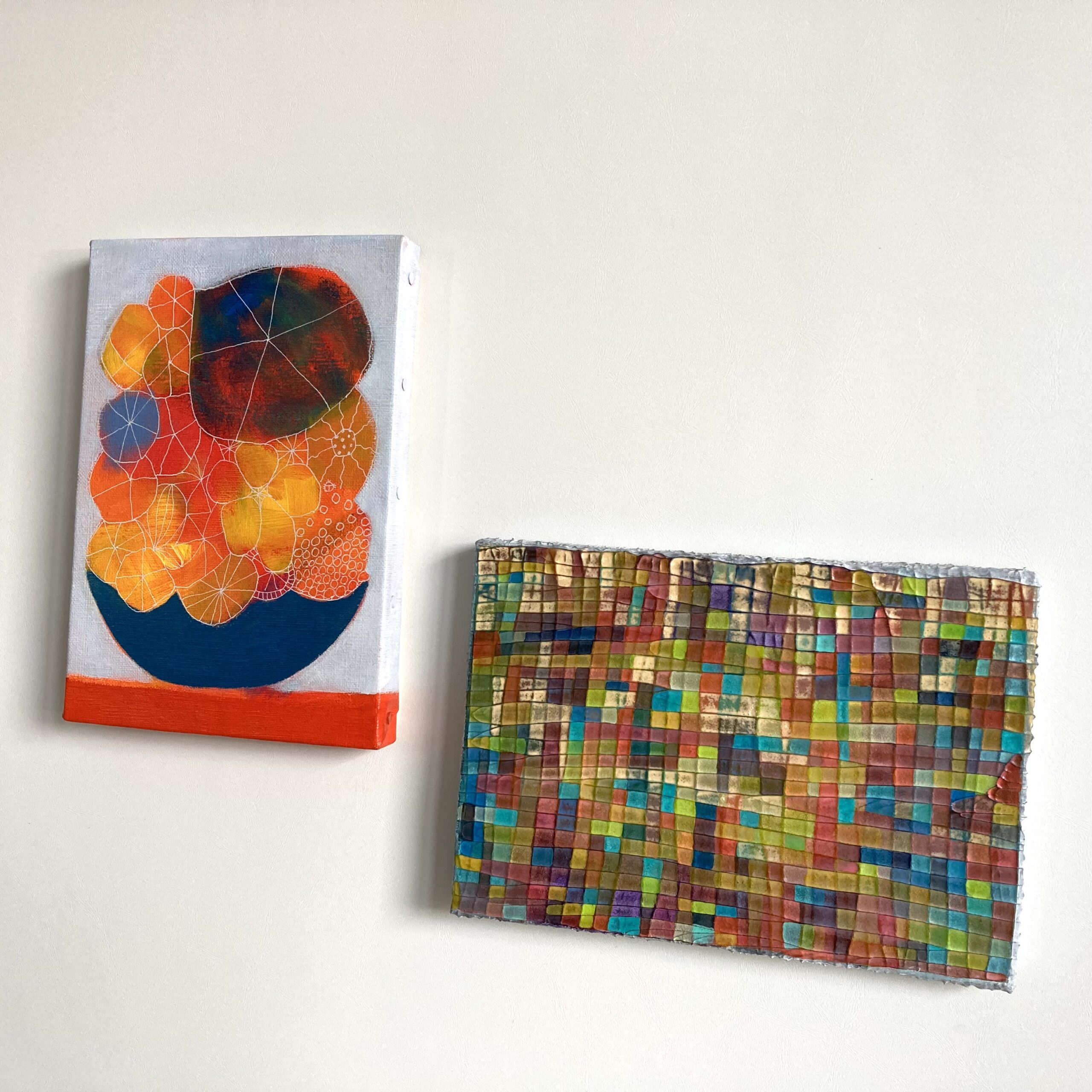 オイルパステル、日本画絵具なども使用するミクストメディア作品もあります。