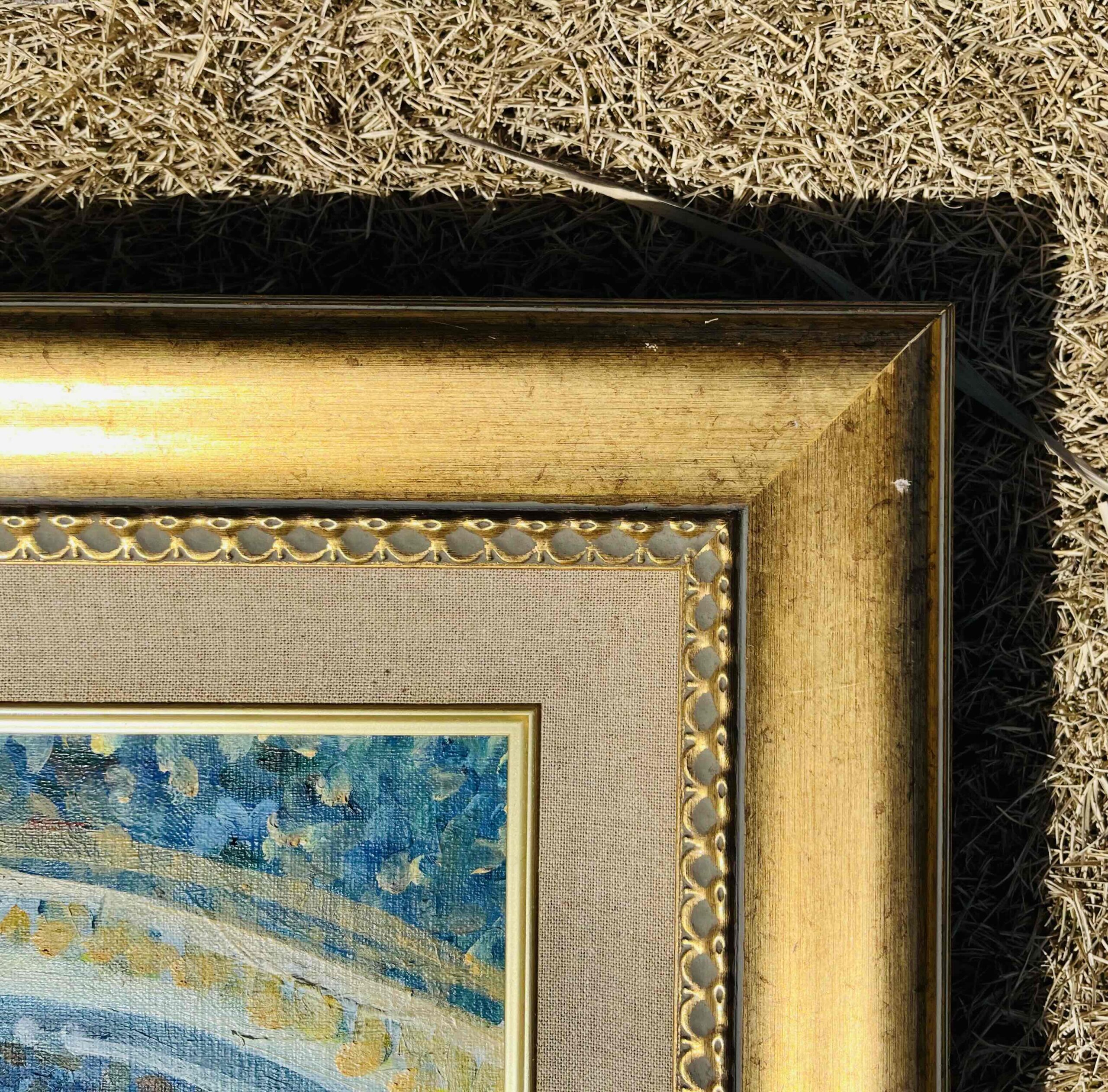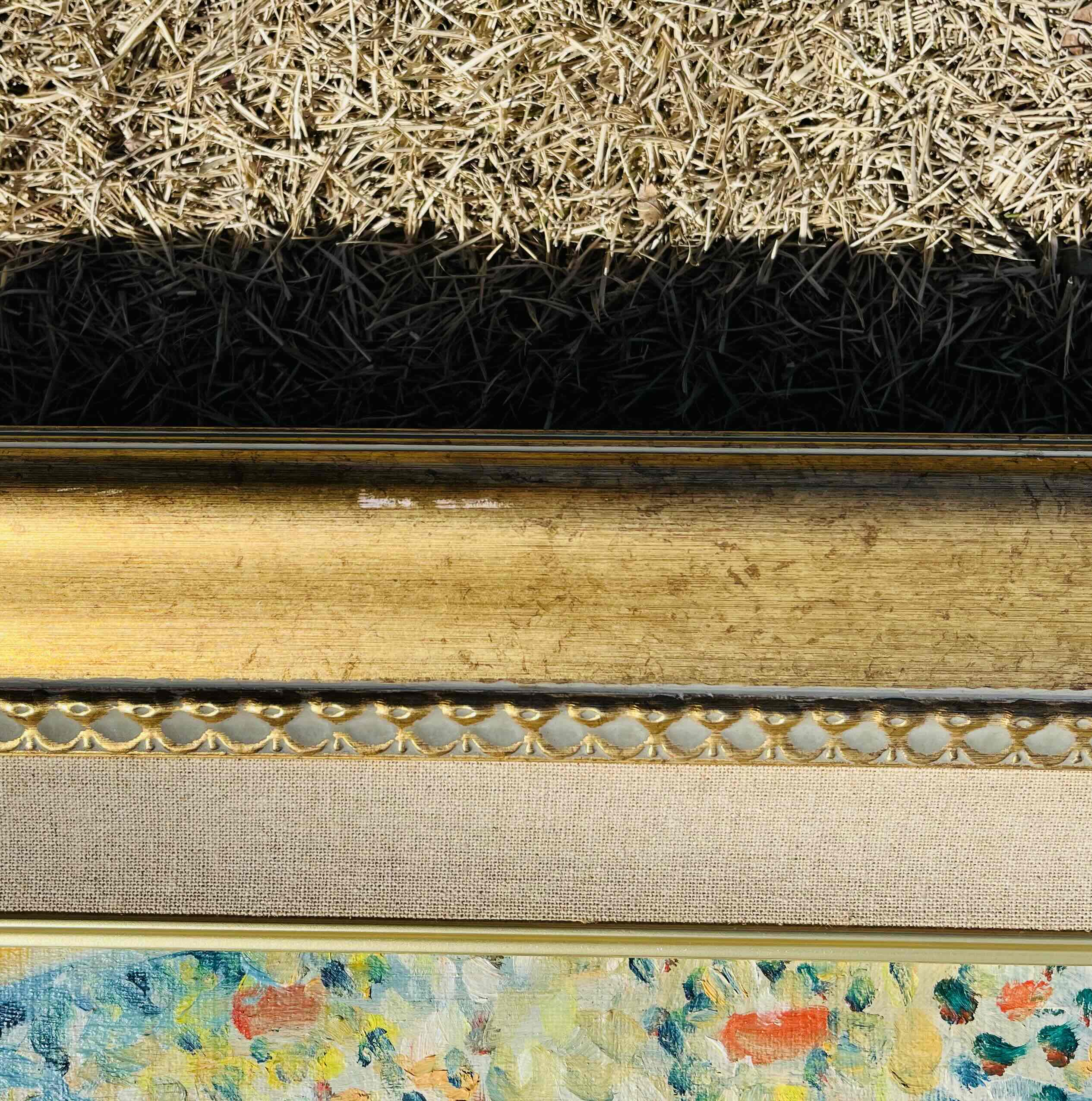 この絵画には中古の金縁の額縁が付きます。(額縁上部表面に若干の傷があります。お写真参照)