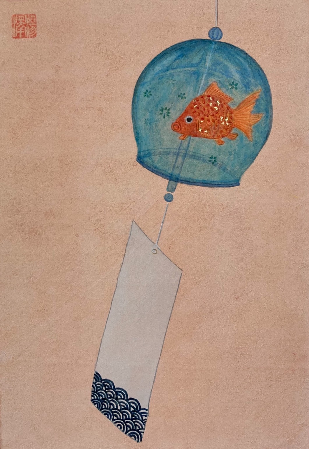 夏の風物詩、風鈴を描きました。風に揺られて奏でる音を感じて頂ければ幸いです。