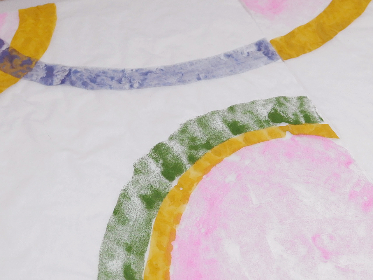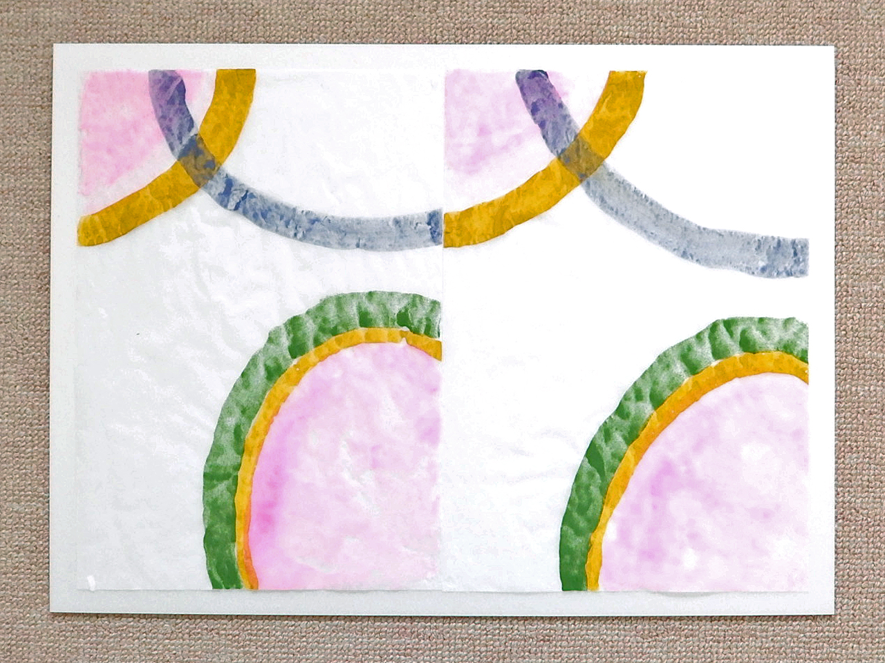 スチレンペーパーという光沢のある真っ白な素材に、岩絵の具自体の美しさが際立ちます。この組み合わせを発見し、気に入って使い続けています。