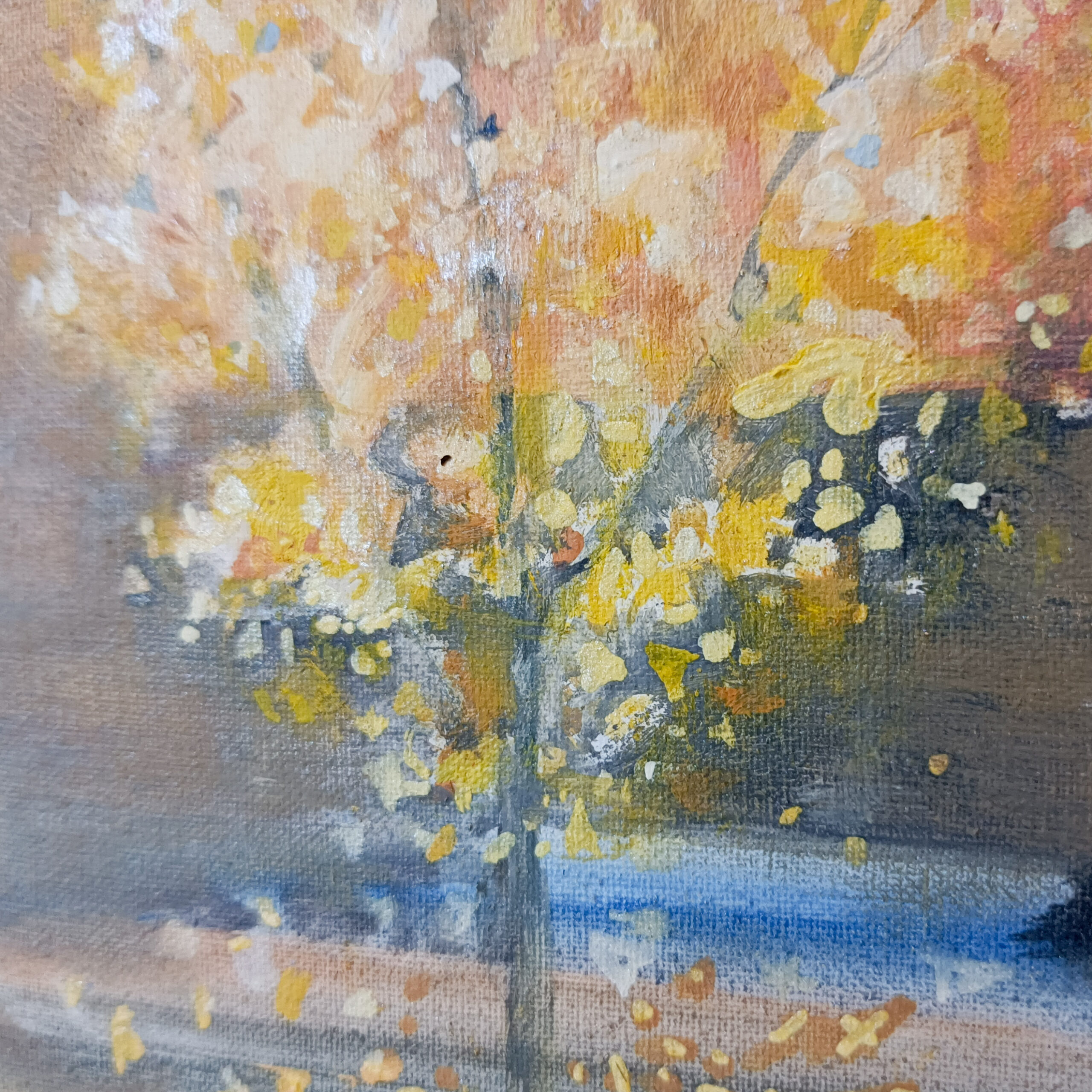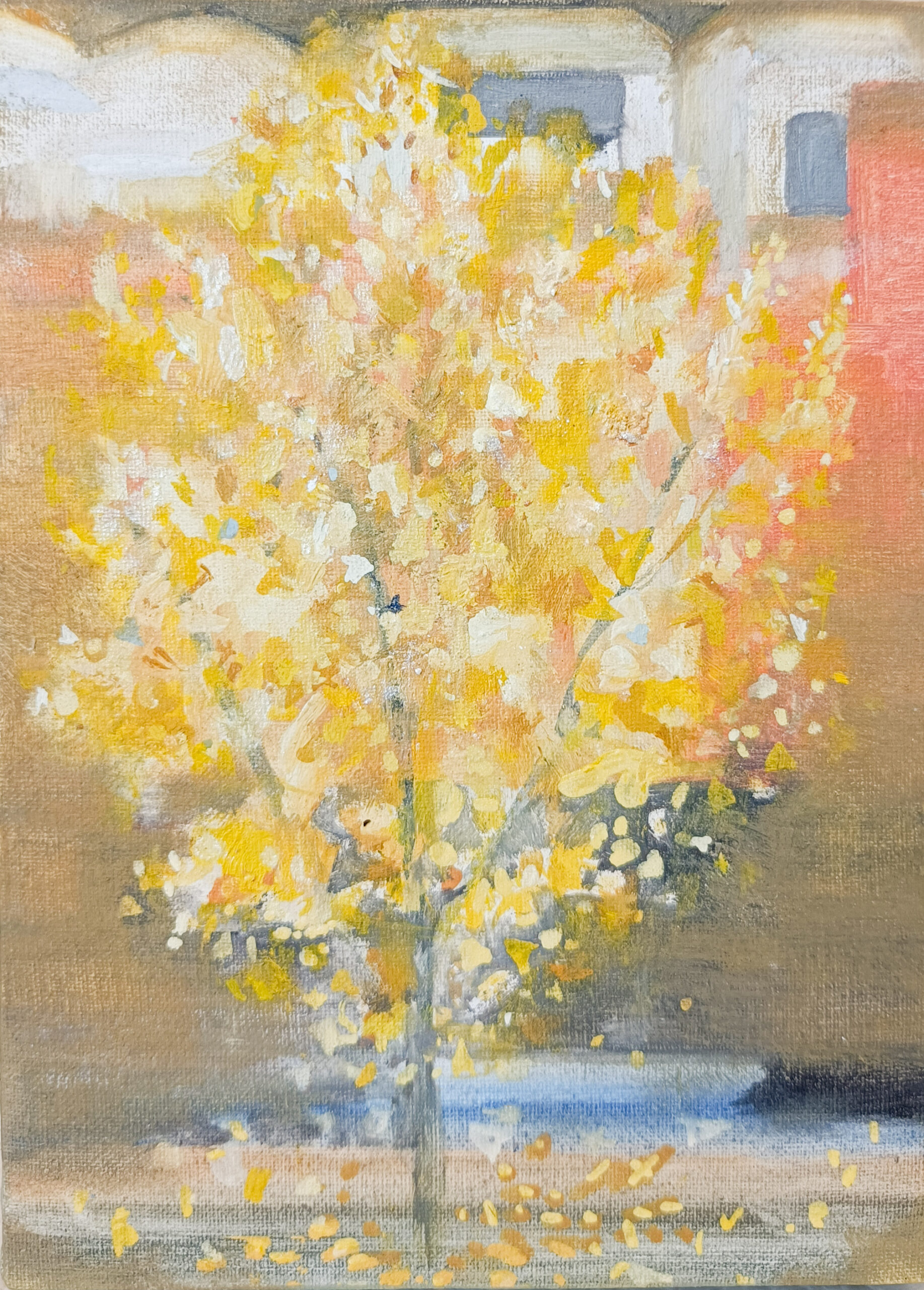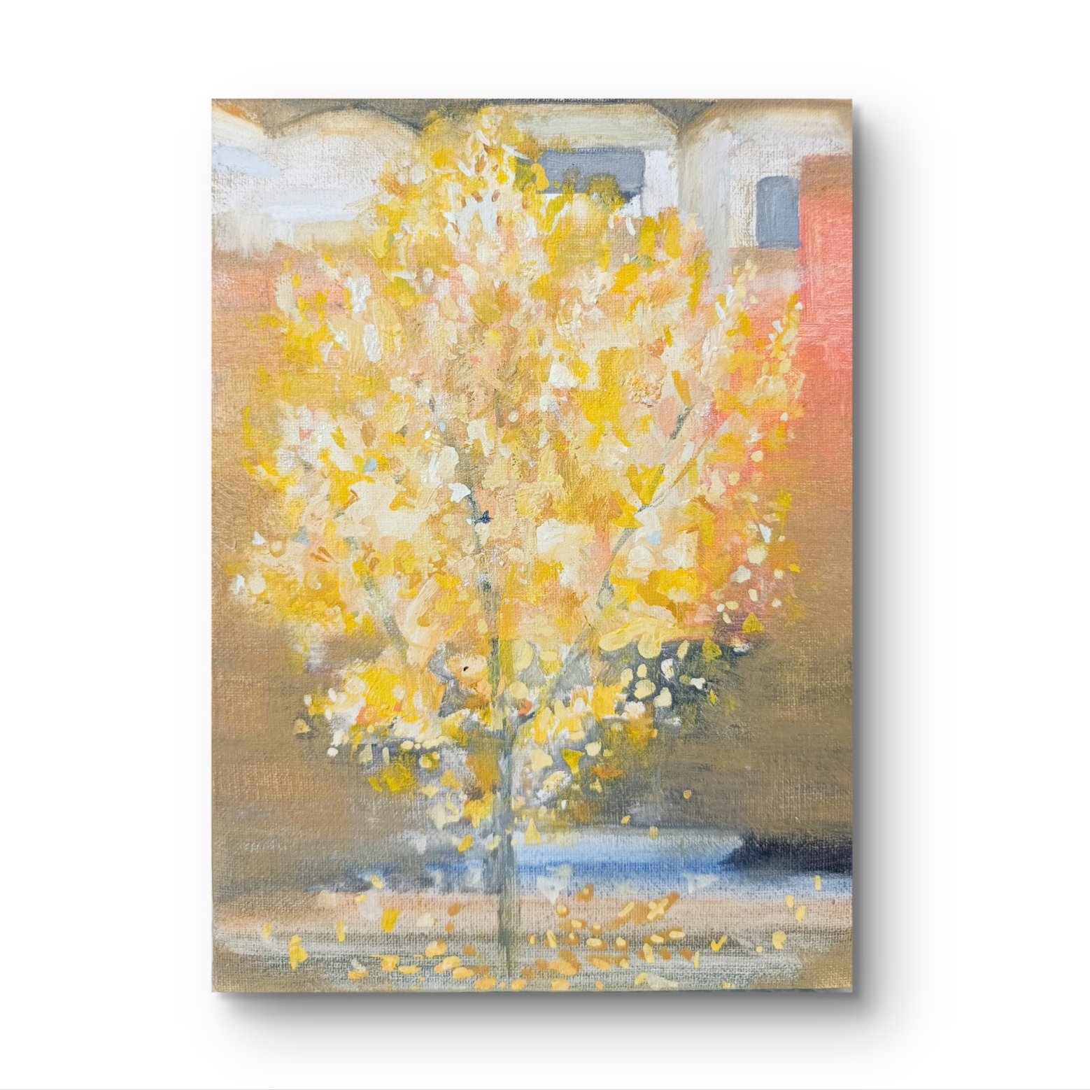 イチョウの木を描きました。静けさを感じる晩秋にピッタリの一枚です。