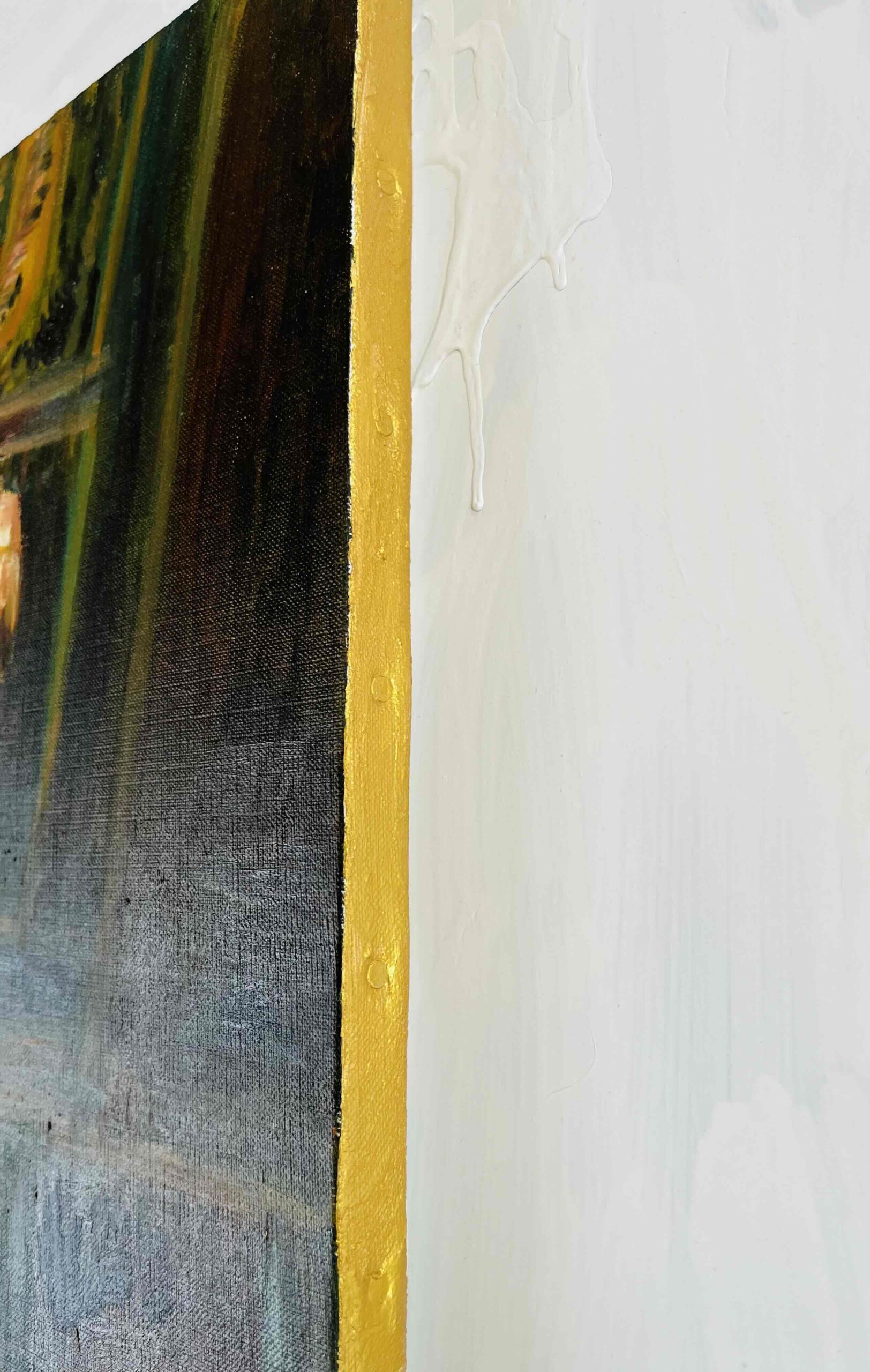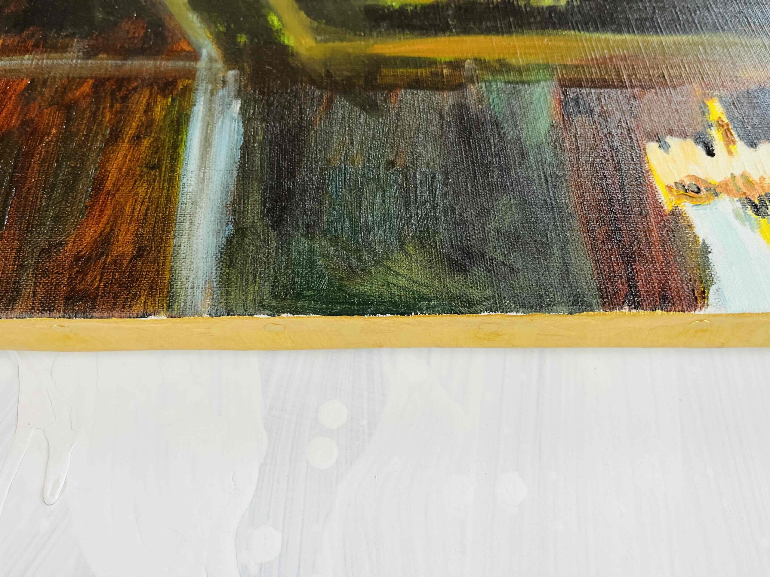 絵画の側面にはシャイニングゴールドに塗装してあります。
