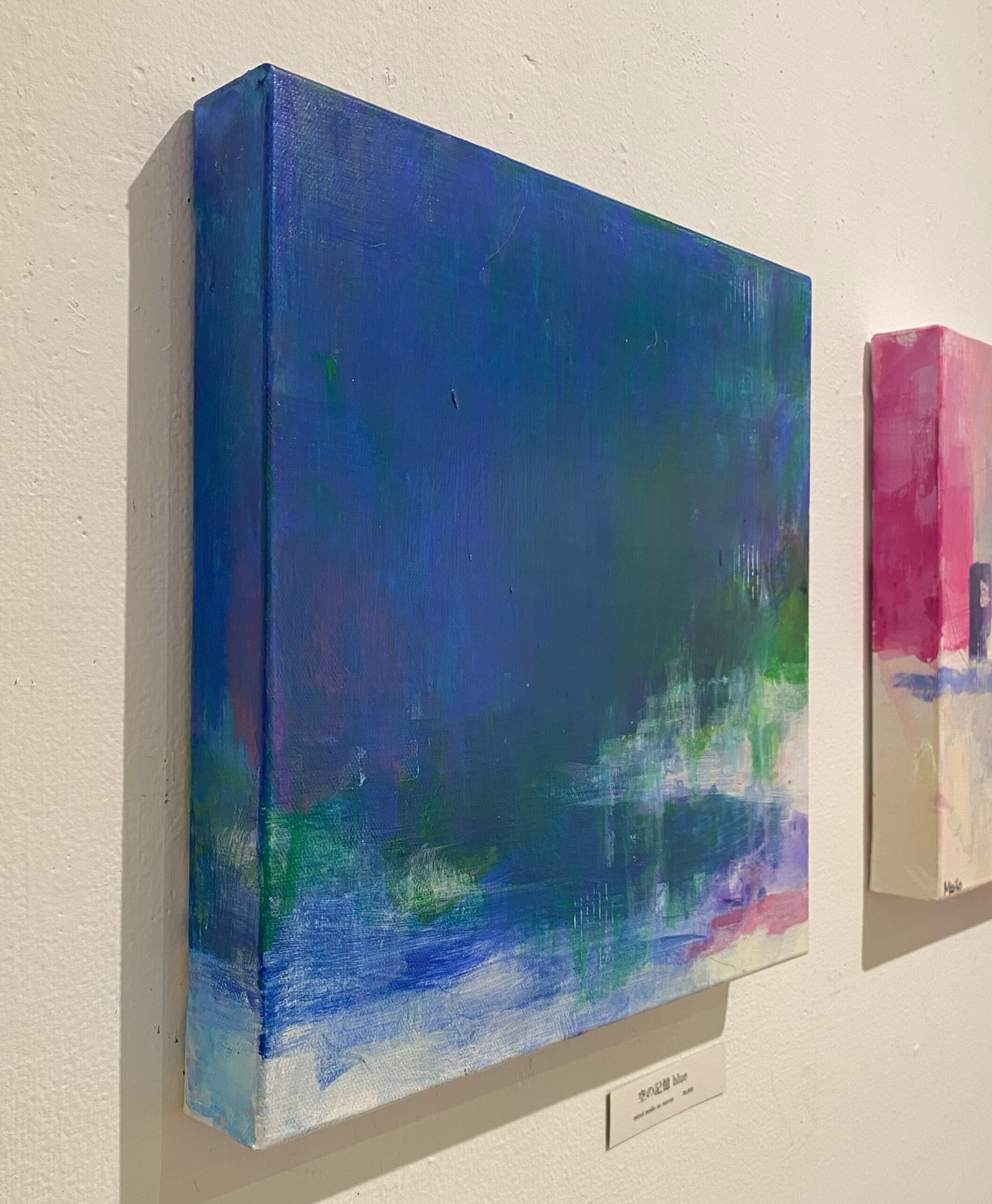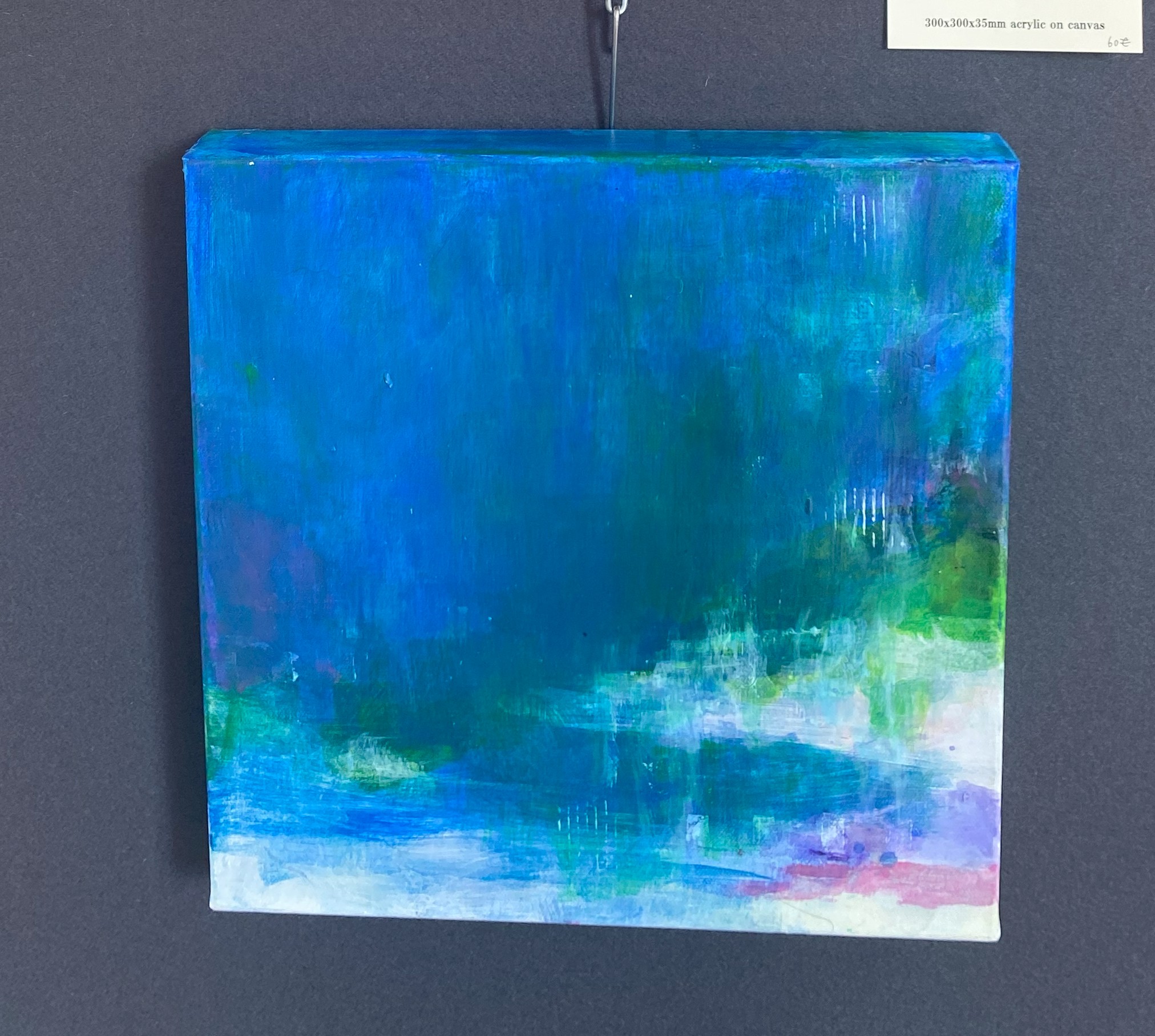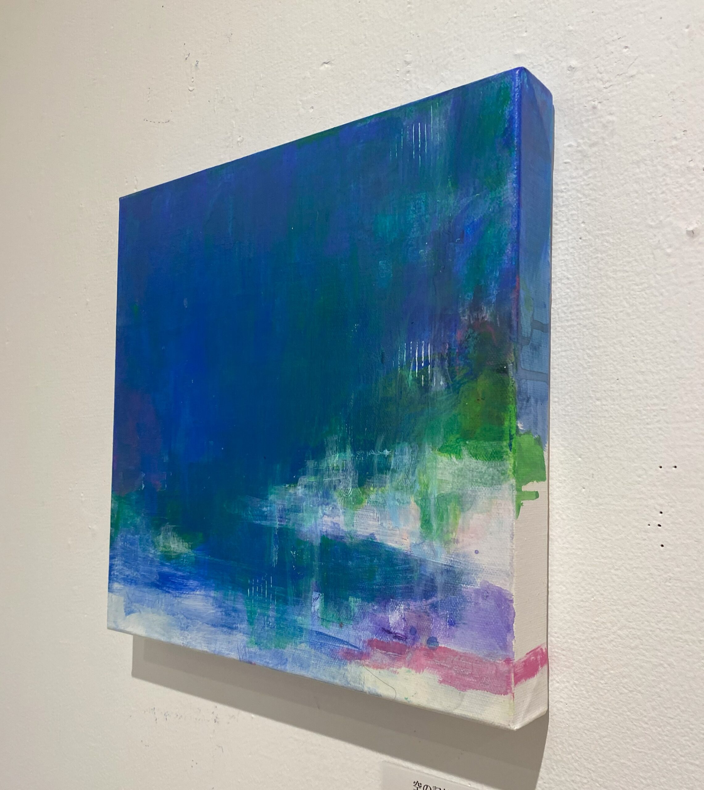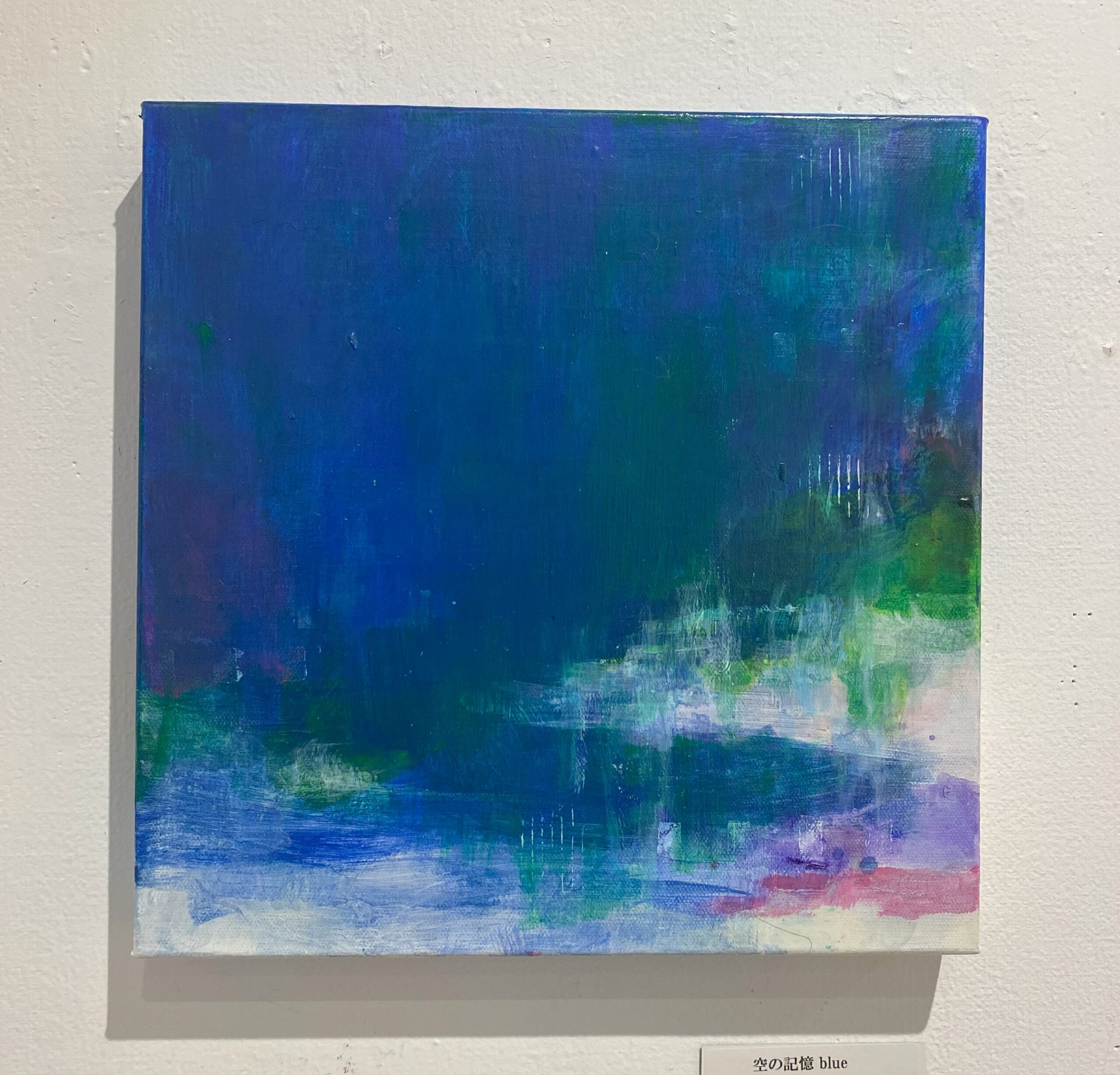 深いブルーの中に、記憶のかけらのような色彩が静かに浮かび上がる抽象作品です。空を見上げたときに感じる、懐かしさや安らぎ、そして言葉にならない感情の揺らぎを表現しました。