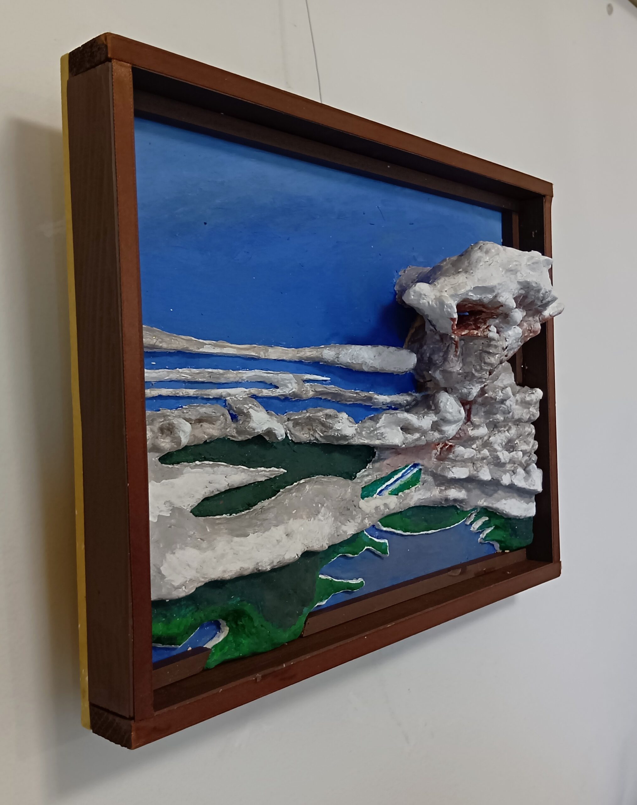 木工や石膏彫刻の立体絵画を製作してきました。現在クレイアーチストのフェルメールさんと協力して、樹脂粘土の立体絵画の制作、普及活動をしています。活動では、展示会や飲食店でクレイ絵画の展示、絵画公募展(2023年は20点の入選や入賞)、ギャラリーへの参加。また立体絵画講座、どこでも展示などボランティアで行っています (希望要請は「作品について問い合わせる」欄からご連絡下さい)。