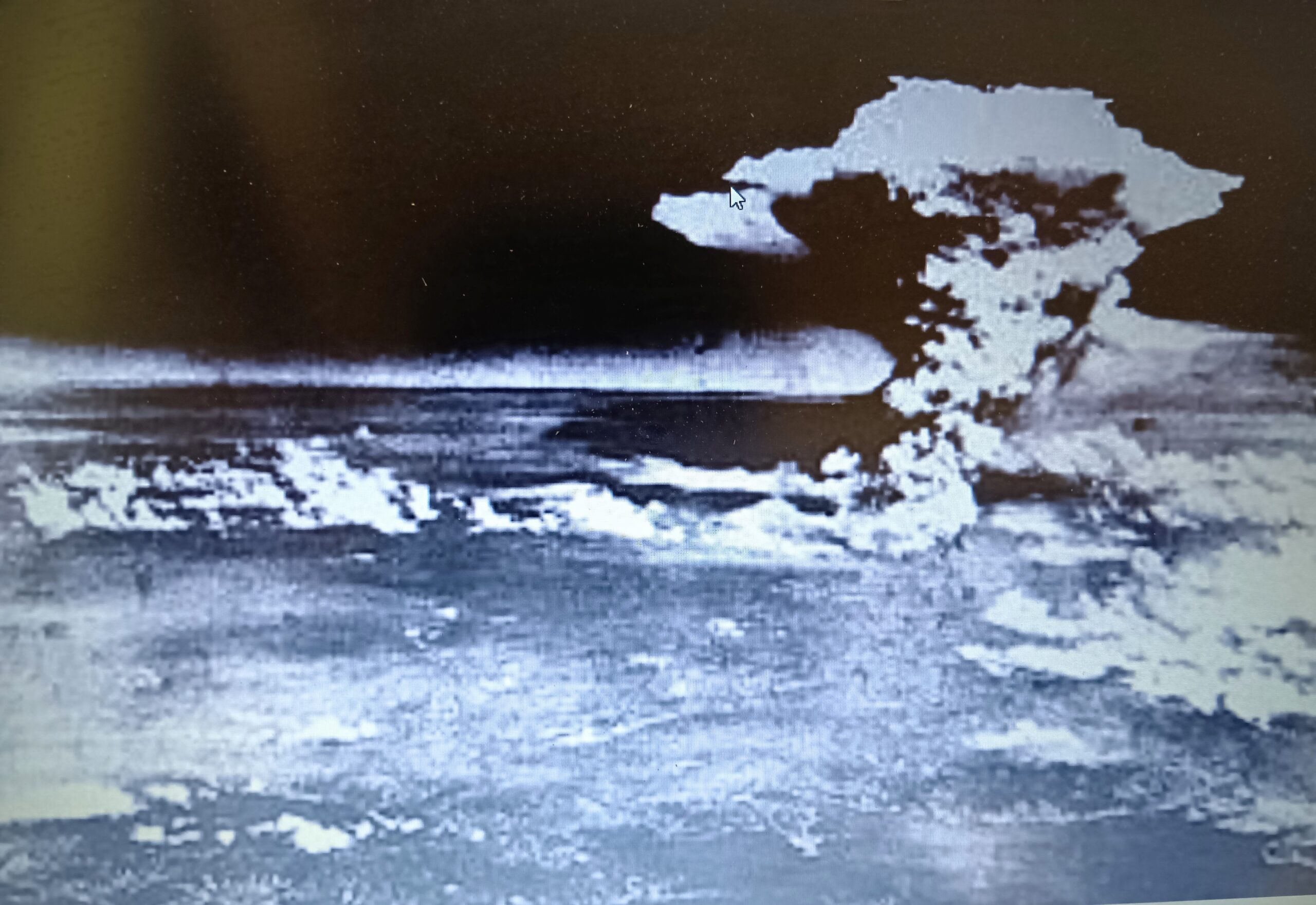原爆は上空600mで炸裂し、数十万気圧の衝撃波が全てを吹き飛ばした時のキノコ雲。多くの死者と被爆者が苦しみ犠牲となり、数カ月後に死者は16万人。