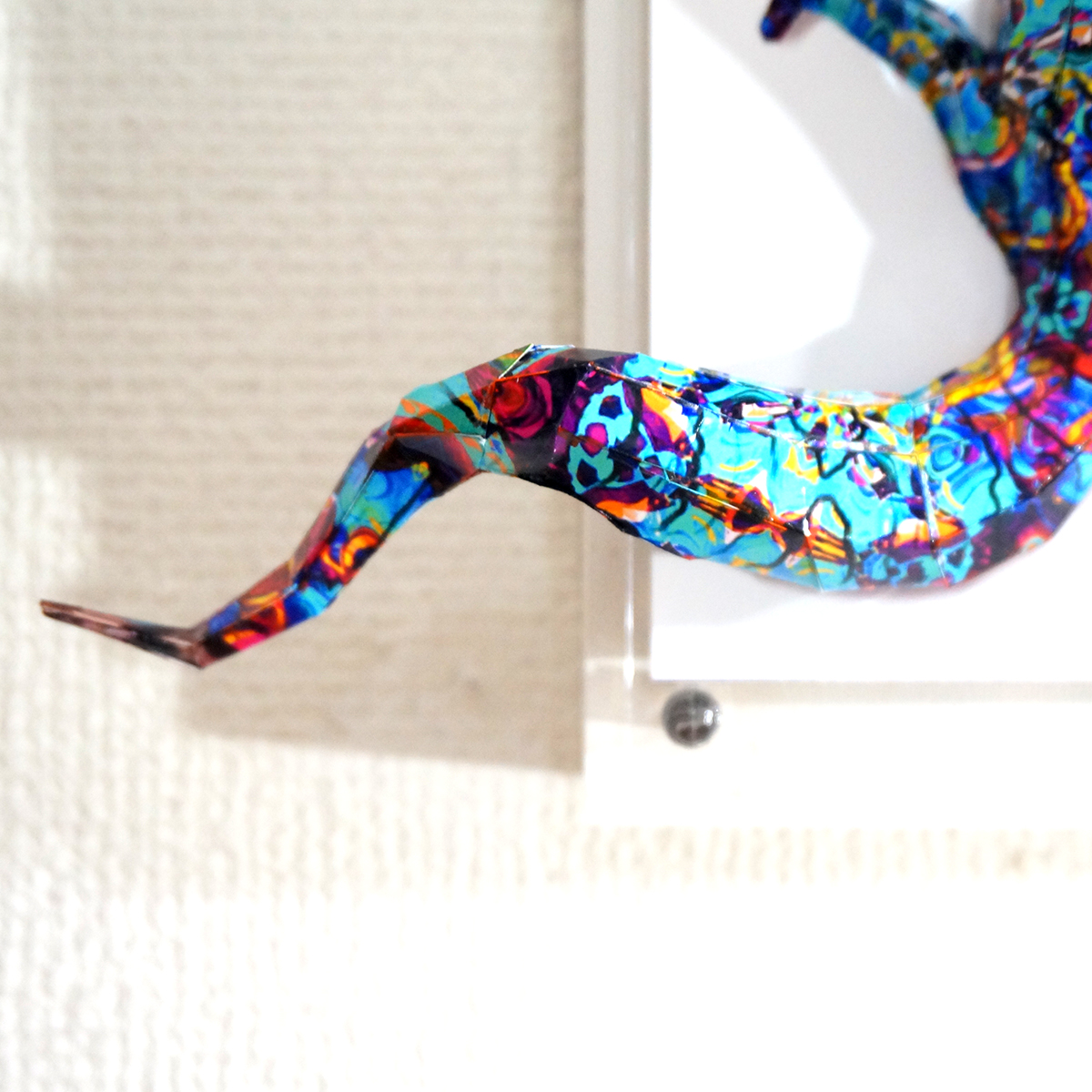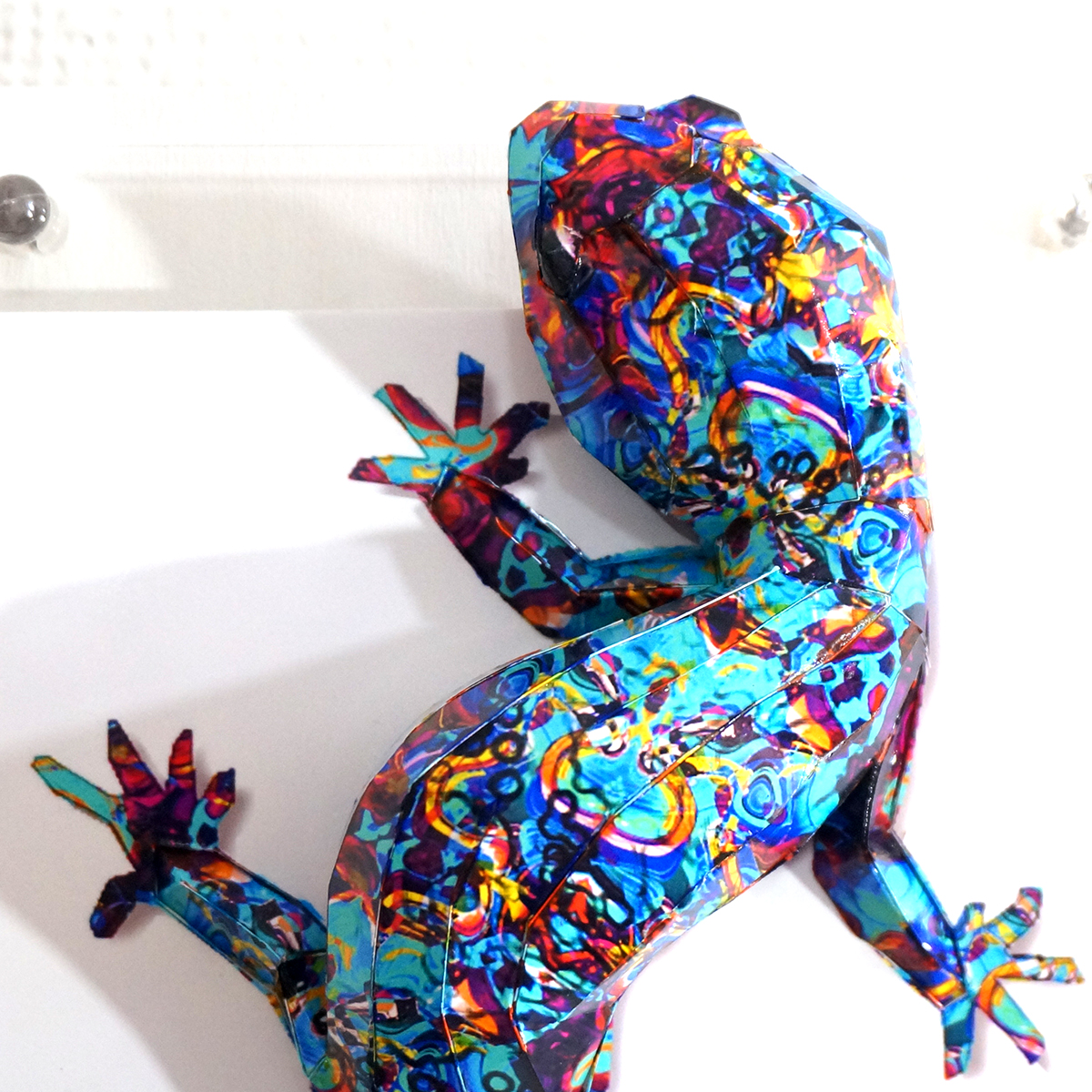 トカゲのコラージュ画像を作成しペーパークラフト技術を用いて立体的に表現した作品です。